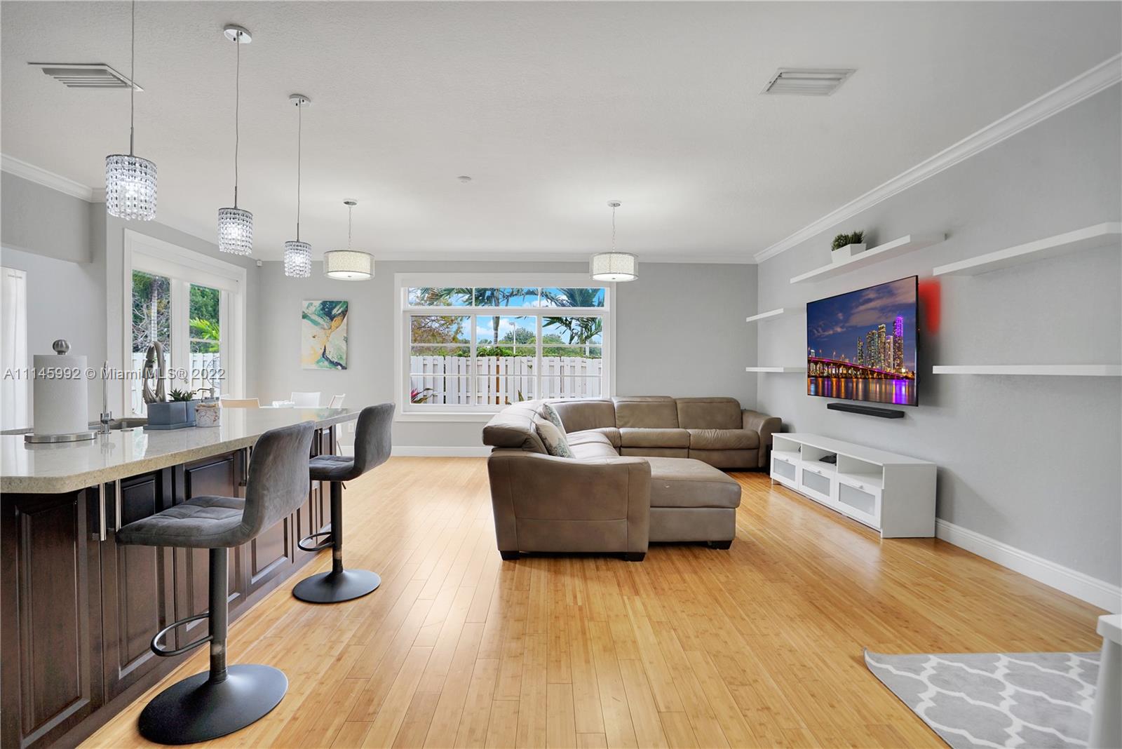 Stunning home located in Huntington. This amazing 4 bedrooms and 2.5 bath home has been tastefully renovated with beautiful bamboo flooring, a large gourmet kitchen with a sink island, built-in closets in every room, custom lighting fixtures with a large chandelier centering the custom stairs. Newer roof installed in 2018, impact windows throughout, and electric window shades.