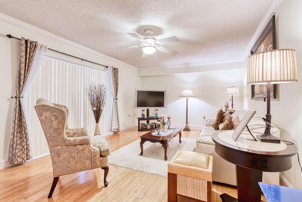 This magnificent immaculate 2 bdrm, 2 bath Townhouse located in the highly desirable community of Village of Sandalwood Lakes is waiting for its new owner!! This beautifully maintained courtyard home offers spacious living area, open kitchen w/an island, dining area, & living rm w/hardwood floors. Sliding doors throughout living & kitchen areas offer an abundance of light and lead to an open private, fenced outdoor patio which is perfect for BBQs & entertaining, as well as hurricane accordion shutters throughout. Village of Sandalwood Lakes has wonderful amenities - Olympic size pools, tennis, racquetball, basketball courts, exercise/walking trails, 2 club houses, picnic & play areas. Centrally located near shopping, dining, airport & Ball Park of the Palm Beaches. This won't last!!