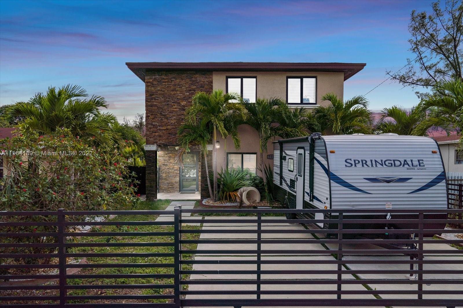 Brand New Construction-Contemporary designed 2 floor home located East of Hialeah , Minutes from Miami Airport, High Vaulted Ceilings, 5 Bedrooms & 4.5 Baths , three bedrooms upstairs en-suite with walk-in closet and two in main floor with one bathroom. Open concept kitchen with isle and Family room , finishes are decidedly modern such as kitchen with stainless-steel appliances , granite countertops , flat-panel smooth wood cabinetry and glass tile backsplashes. Amazing pool and garden , Two AC and External fixtures.