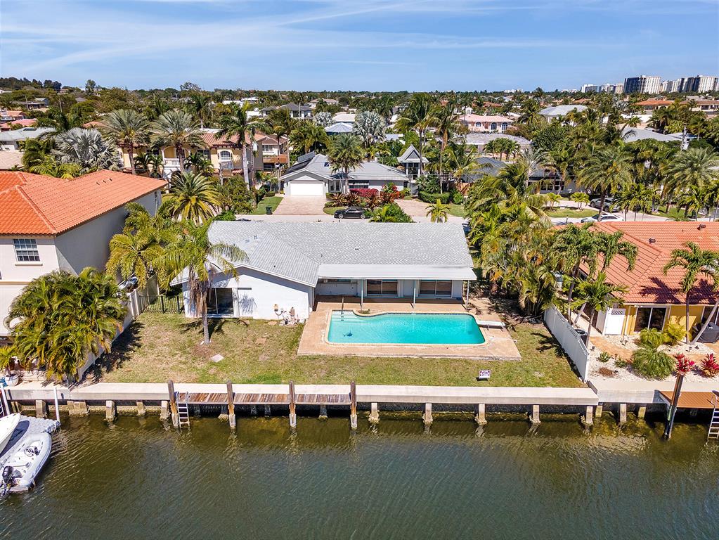 bring your up to 80' boat. Deep water channel 100' wide, there is room for a bigger dock, direct access to intercoastal and Ocean thru the inlet. the home is a 3 bedroom 2 bath, double garage with a pool. Home needs major work. new roof in 2018, quiet tree lined street with no HOA