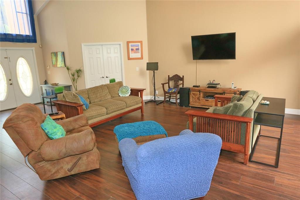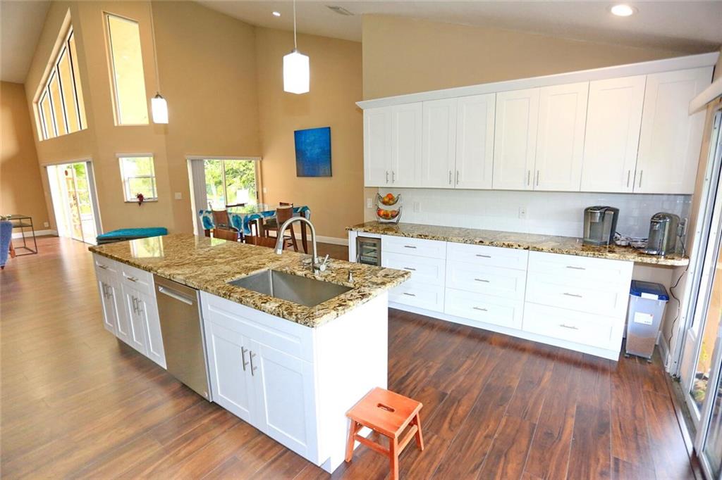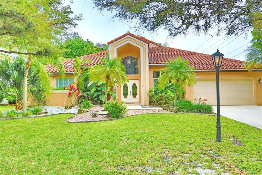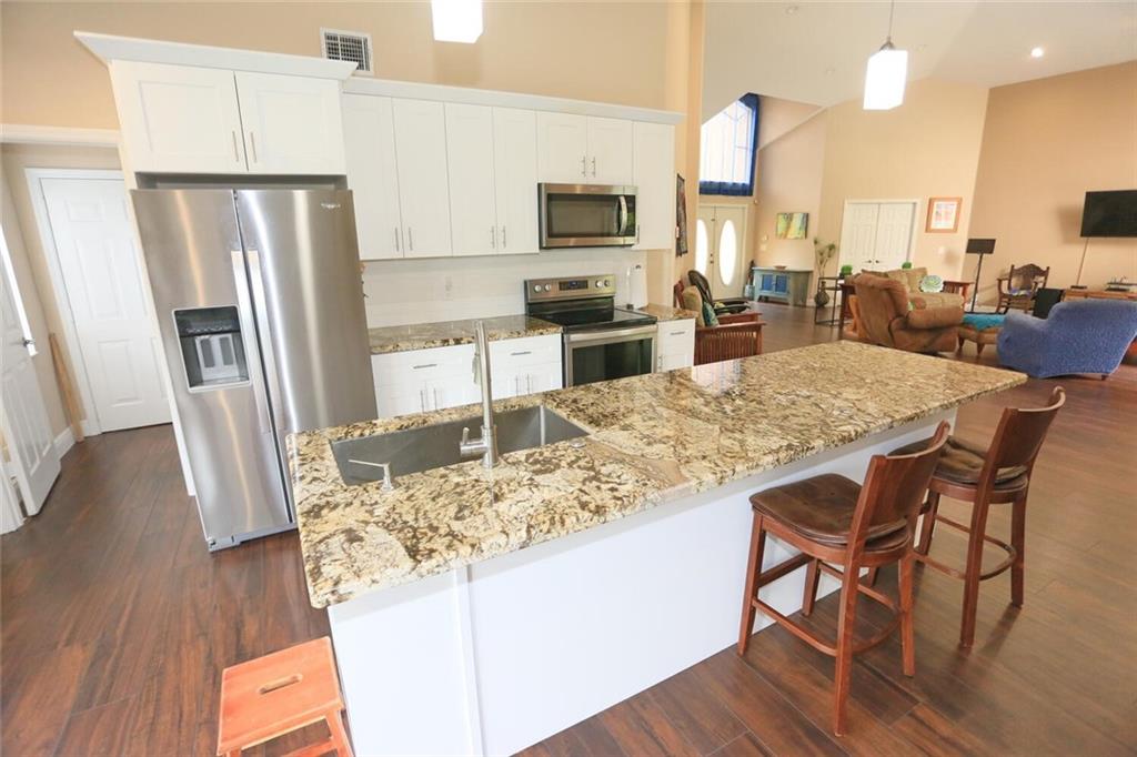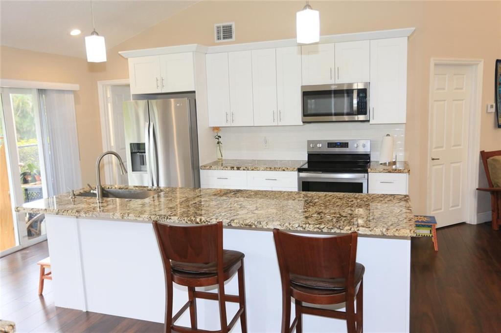 Looking for open concept living? A main room incorporates the living, dining, family room and kitchen with voluminous ceilings and magnificent acoustics. A half bath near front entry-convenient for guests. Fully modern kitchen with beautiful granite counters, stainless steel appliances and ample cabinets. Sliding glass doors from kitchen lead out to an enclosed patio overlooking a canal, with birds and fish. Sliding doors from living areas lead to patio with a fully-heated, in-ground pool. Large fenced yard with fruit bearing trees. Nature preserve behind home along canal. Spacious master en suite with 2 large closets and sliding doors to patio. Large shower and oversized tub in master. Split floor plan, poolside bath. New 5 ton AC 2020. Pool heater 2020. Knock down ceilings.