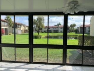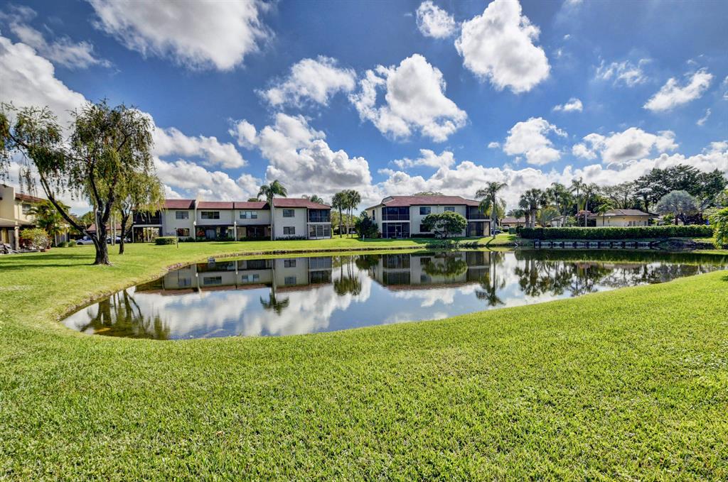 More for your money? This truly delightful 1,540 livable sq. ft. 2 BR/2.5/BA , 2 level TOWNHOUSE offers a gleaming EASTERN LAKE VIEW, Dining/living area sliding glass door leads out to your glass window ENCLOSED covered PATIO, Updated Granite Kitchen. S/S Appliances, Built in Wine Cooler, Washer & Dryer, White Cabinets, breakfast area, w/sliding glass door leads you out to your own private brick paver out door garden/atrium area, entry hallway to 1/2 bath/ powder room w/ separate spacious storage closet, Staircase to upstairs Master bedroom & 2nd bedroom features plenty of sunlight and CLOSET spaces, 55+ Community as per HOA, No Pets, Fairways of Boca Lago has 2 Community Pools, Lovely Golf/Tennis Community WITHOUT Mandatory Membership, but available, close to shopping, main highways