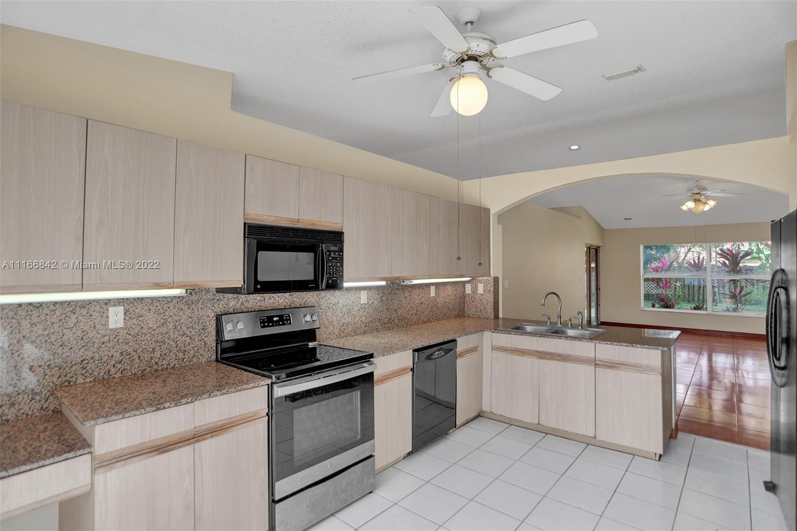 LOCATION! location, location. Rarely available, large one story in coveted Savannah in very desired Sunrise, close to EVERYTHING! Three large bedrooms & two full baths on a 1,990 sq.ft split floorplan w/ volume ceilings. Home is bright, airy & open, tiled throughout, beautiful open custom kitchen, full granite counters, custom made wood cabinets, master bath features walk-in shower & soaking tub. Beautifully covered porch, huge patio & lush landscape. Coconut, mango & banana trees among others. Space for large pool. 2 Car Garage & driveway parking for multiple vehicles. Very well-maintained community, Great neighborhood & top rated schools. Minutes from Sawgrass expressway & Mall. Close to transportation, business district, culture, shopping & restaurants. This is the one!!!