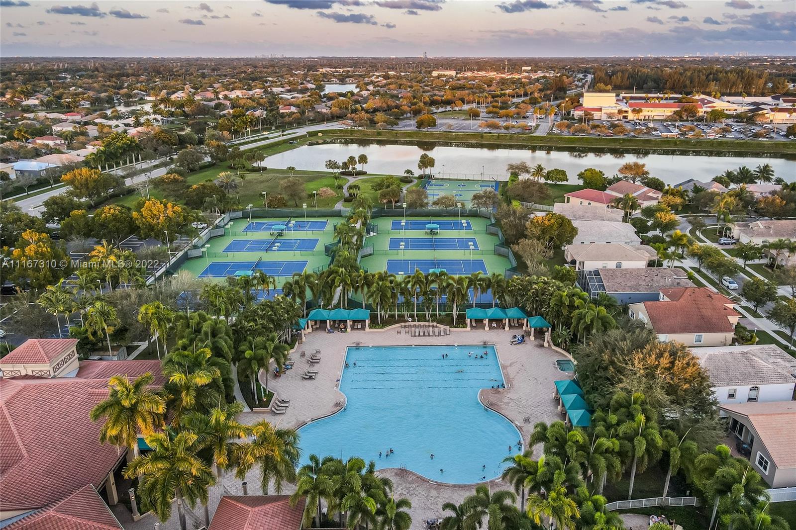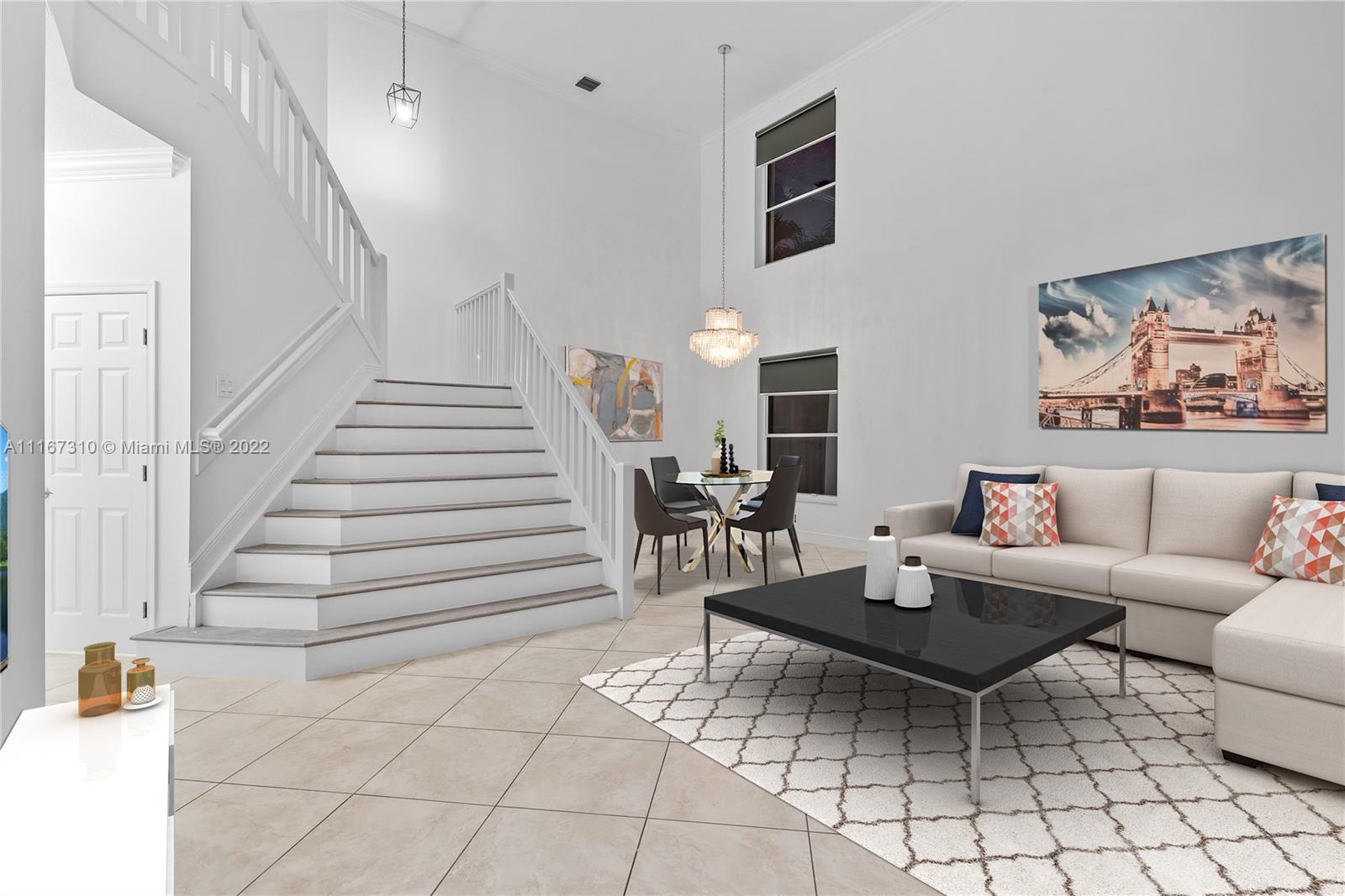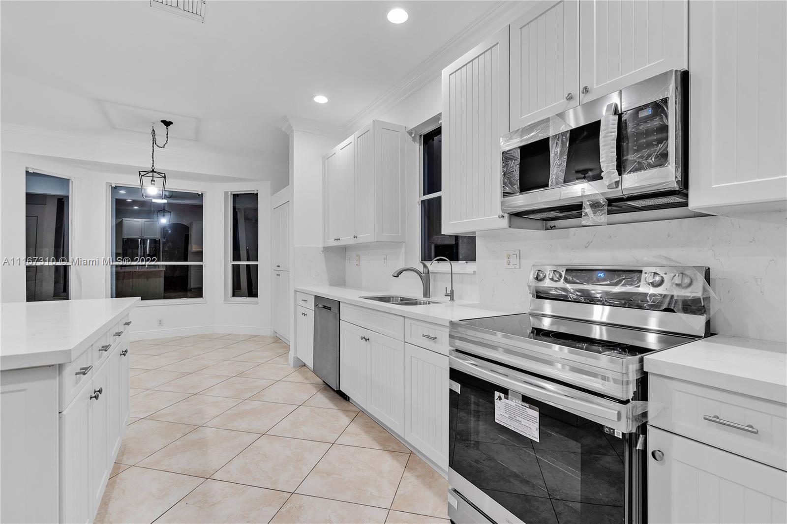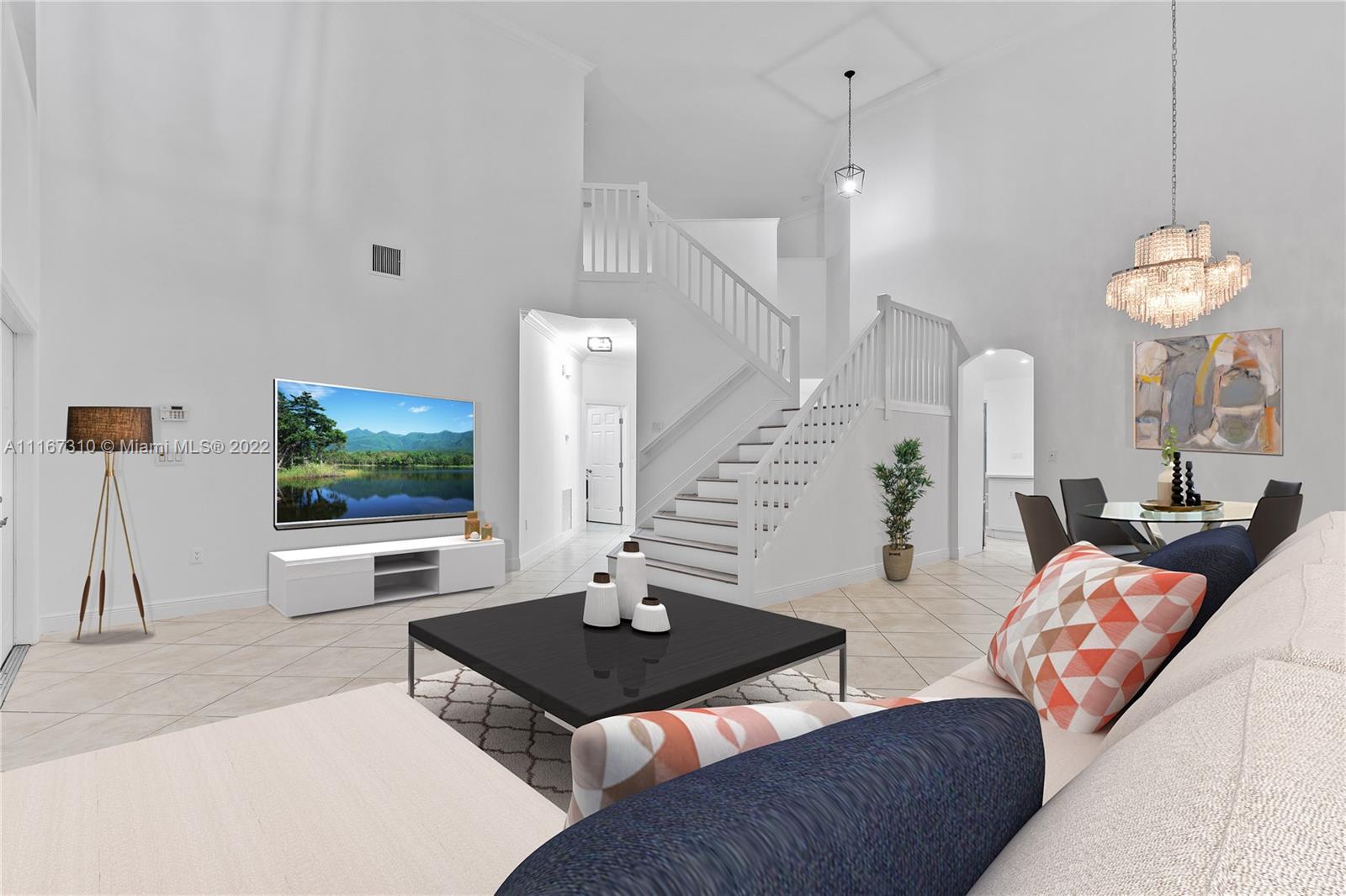 Beautiful updated home with a modern theme ready to move in featuring 4 bedrooms, 3 1/2 baths, and a 3 car garage on a quiet street in Pembroke Falls. This bright sunlit home features vaulted ceilings with an open living/dining area, a renovated kitchen with quartz countertops, and new SS appliances. Brand new light fixtures, porcelain tile floors and updated bathrooms. Home features large master suite with his and her walk-in closets. Step outside to your own private oasis featuring a heated pool and beautiful palm trees. Located at Pembroke Falls, a gated community, with amenities such as: Club house, large heated pool, tennis courts, basketball courts, and a park. A+ school district. Close to shopping centers, restaurants and more.