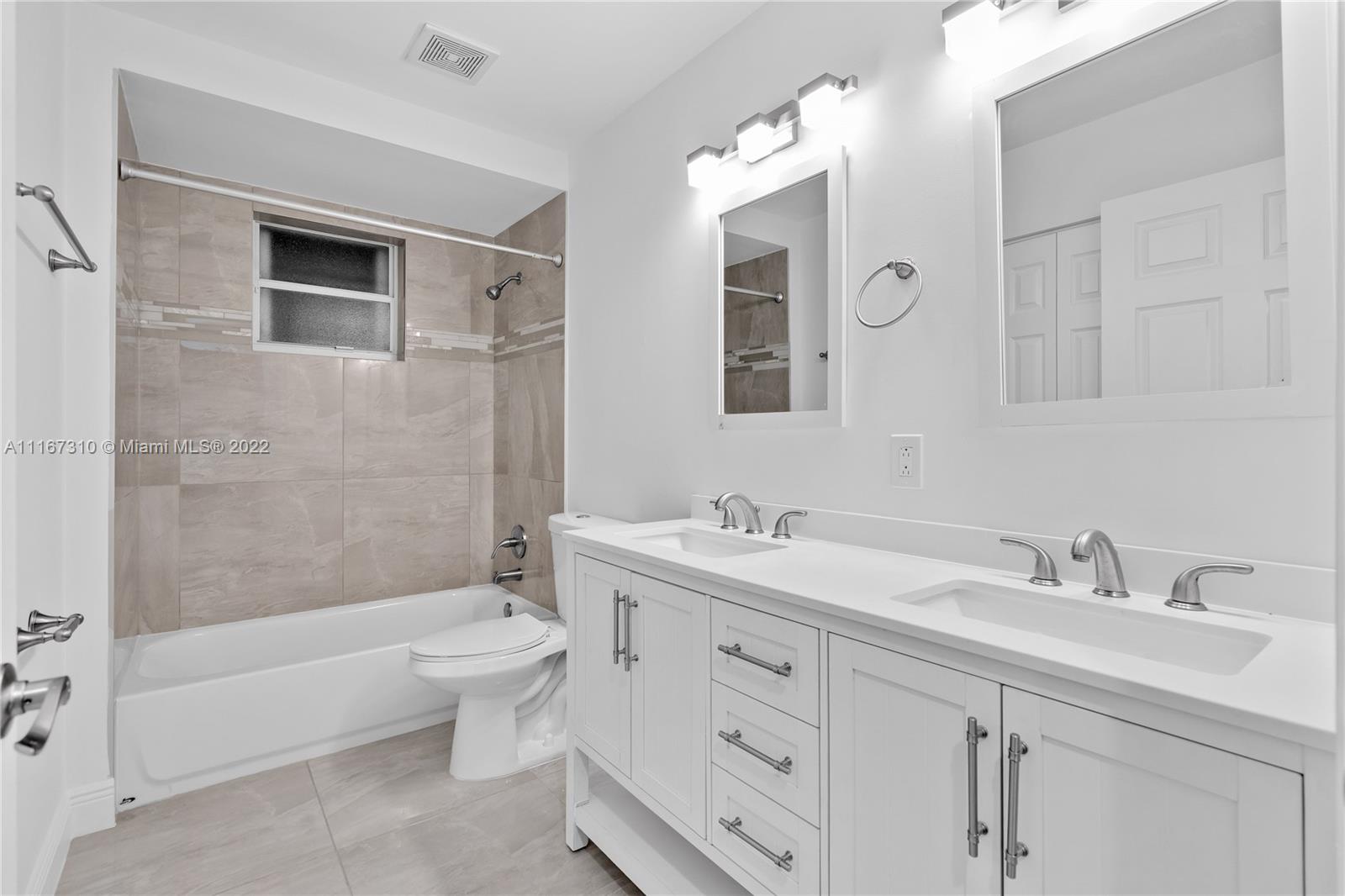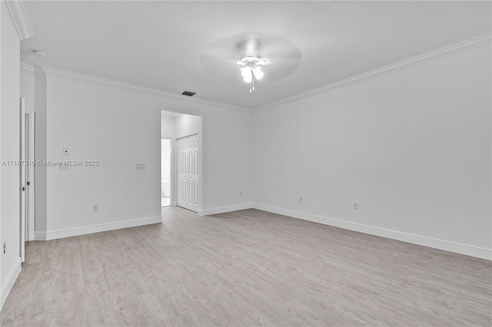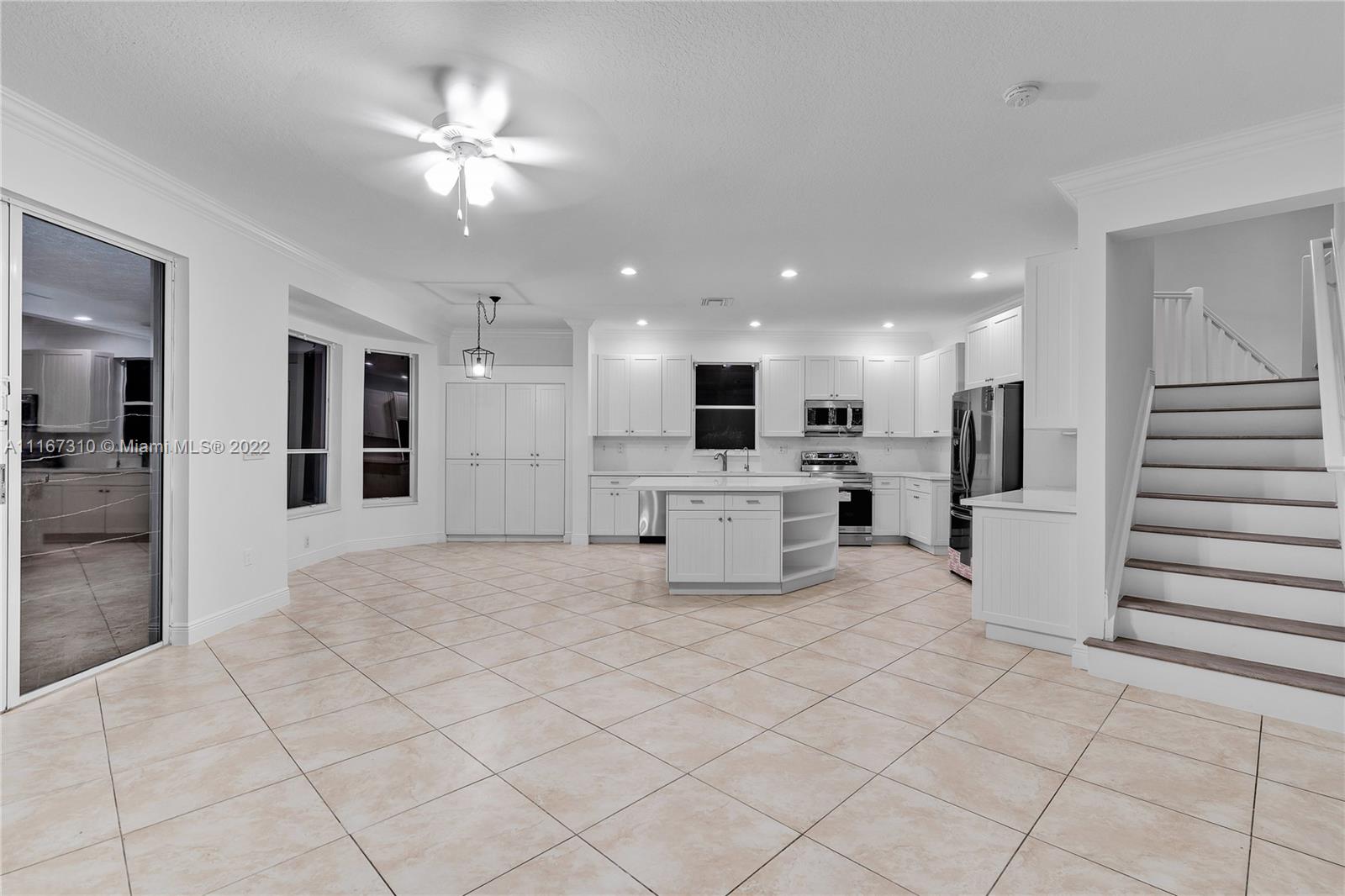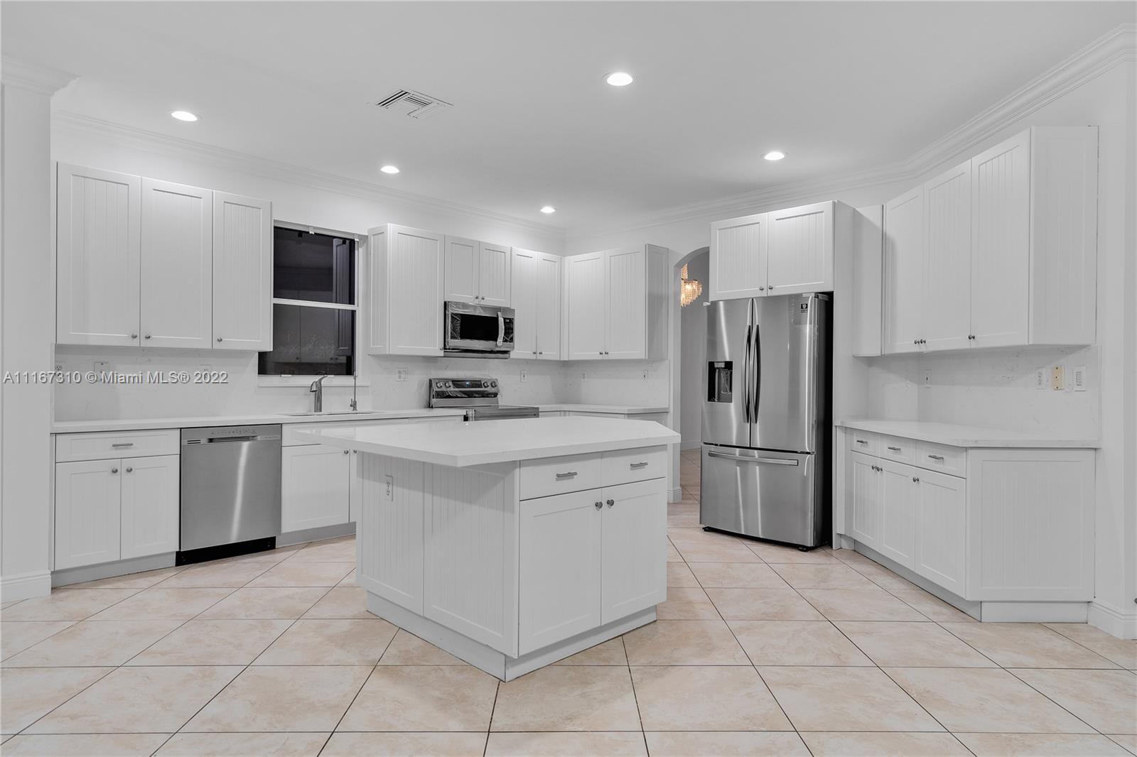 Beautiful updated home with a modern theme ready to move in featuring 4 bedrooms, 3 1/2 baths, and a 3 car garage on a quiet street in Pembroke Falls. This bright sunlit home features vaulted ceilings with an open living/dining area, a renovated kitchen with quartz countertops, and new SS appliances. Brand new light fixtures, porcelain tile floors and updated bathrooms. Home features large master suite with his and her walk-in closets. Step outside to your own private oasis featuring a heated pool and beautiful palm trees. Located at Pembroke Falls, a gated community, with amenities such as: Club house, large heated pool, tennis courts, basketball courts, and a park. A+ school district. Close to shopping centers, restaurants and more.