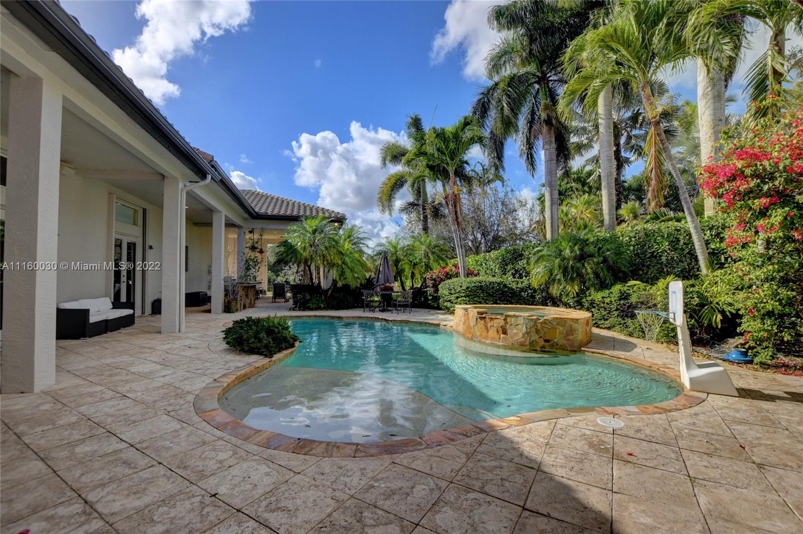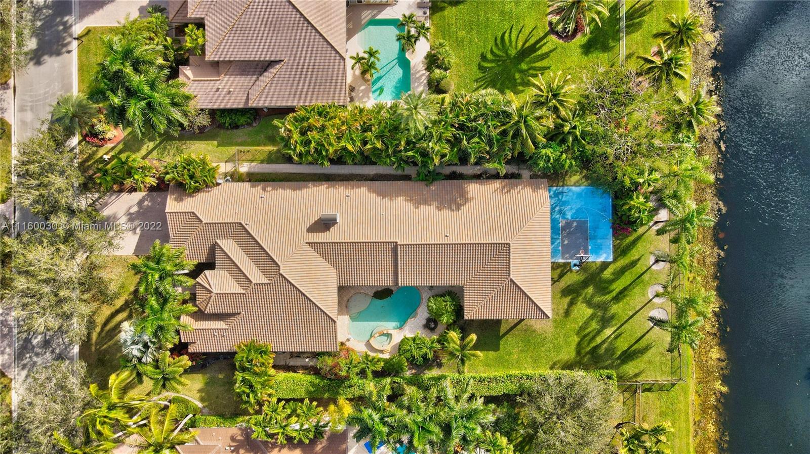 One-of-a-kind 1-story, waterfront home w/NEW ROOF in desirable Long Lake Estates. Approx. 5,100 sf under air plus 1,500 sf outdoor living area w/built-in summer kitchen. Impact glass & Accordions. 5th & 6th bedrooms converted to movie theater. Oversized Game room, separate large convertible Play Room & custom Office. Wood-burning fireplace & See-thru Aquarium .16-camera surveillance system, Surround sound system. Salt-system pool w/raised jacuzzi, private basketball court. 2 large bedrooms at back of house have impact glass French doors, oversized bathrooms & huge closets. Master bath has large multi-jet steam shower. Custom closets. Fenced yard w/separate dog run. New gutters (2020), new W/D (2019), new dishwasher (2022) All A/C units have been replaced. Jet-skiing permitted in canal.