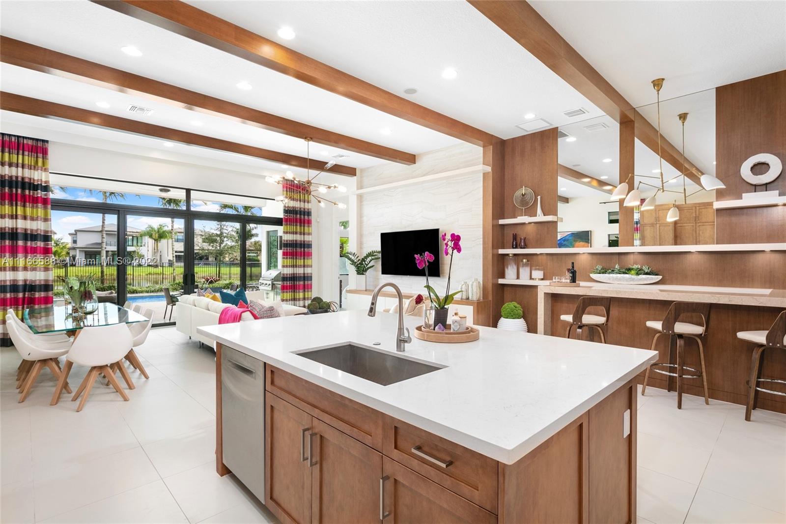 Step inside this fully furnished turnkey Vienna Grand model featuring a flow through design with 12’ ft ceilings leading out to your tranquil covered outdoor patio. Feel the eastern breeze as you relax in your tropical paradise. In this 4 bedroom home you get to enjoy the commodity of having your Master Bedroom suite downstairs with captivating pool and lake views. Including a second-floor private en-suite bedroom with a full bath, loft/media room and a private balcony. Located in the highly sought-after Boca Bridges community, luxury living is redefined offering a 27,000 sqft clubhouse complex that includes a restaurant with full service pool bar, game room, fitness center, tennis courts, pickleball, pools and more!