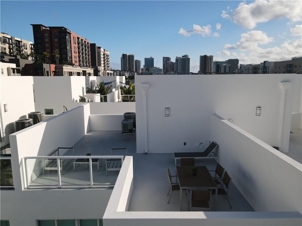 Meet this “meticulously designed” Bamboo Flats Townhome in the Heart of Flagler Village. This rarely available townhome features an oversized rooftop terrace and is ready for your new hot tub and or outdoor kitchen. Enjoy some amazing views of downtown while you sip your favorite wine or champagne. Custom 1 x 1 meter Italian porcelain floors in the main living area and espresso wood floors throughout the rest of the home. A very open and lofty feel with an abundance of natural light. 9, 10 & 11-foot ceilings, custom shades, & built-in closets throughout. The open concept kitchen with a quartz waterfall countertop is perfect for entertaining. The 2 car garage with plenty of storage space for your cars and your tools. Come see this unit, it will not last!