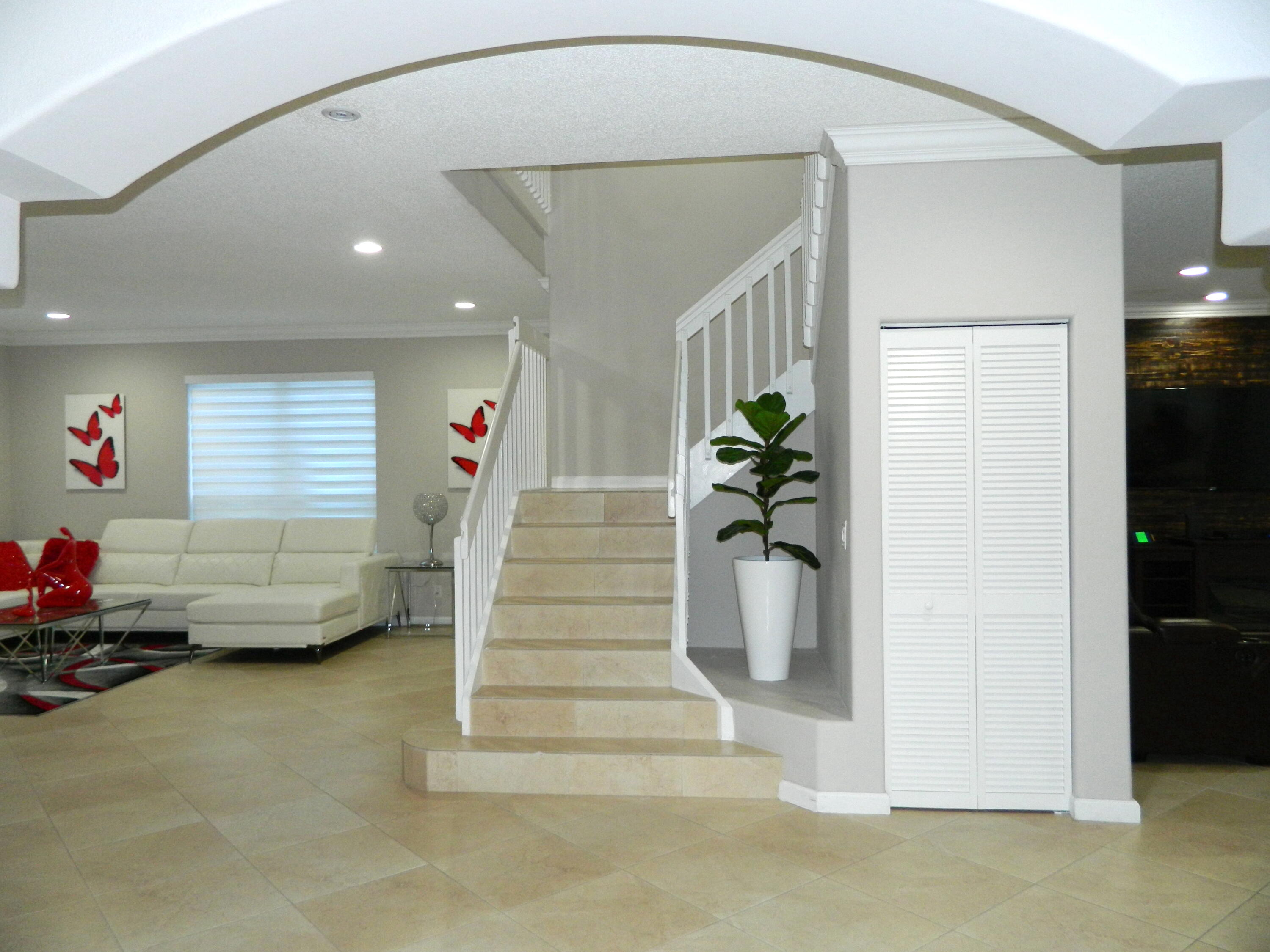 Large and spacious 4 bedroom pool home offers a new roof, fresh interior and exterior paint, oversized kitchen with a new range, micro hood and dishwasher. granite kitchen countertops. Kitchen has brand new appliances. Living room has upgraded modern Wood panels that replaced original shelving. Master bathroom has new modern shower glass door. upgraded shelving space in Master bedroom closets. New roof. . New AC. Back patio has new large awning Supported by Roman pillars. Outdoor pool has new kitchen and refrigerator. New washing machine and dryer. The home also includes a large master with a balcony and very large master bathroom, spacious rooms. large fenced yard with a water view, and good size patio. Gated community includes a pool, and is located in a central and desirable location.