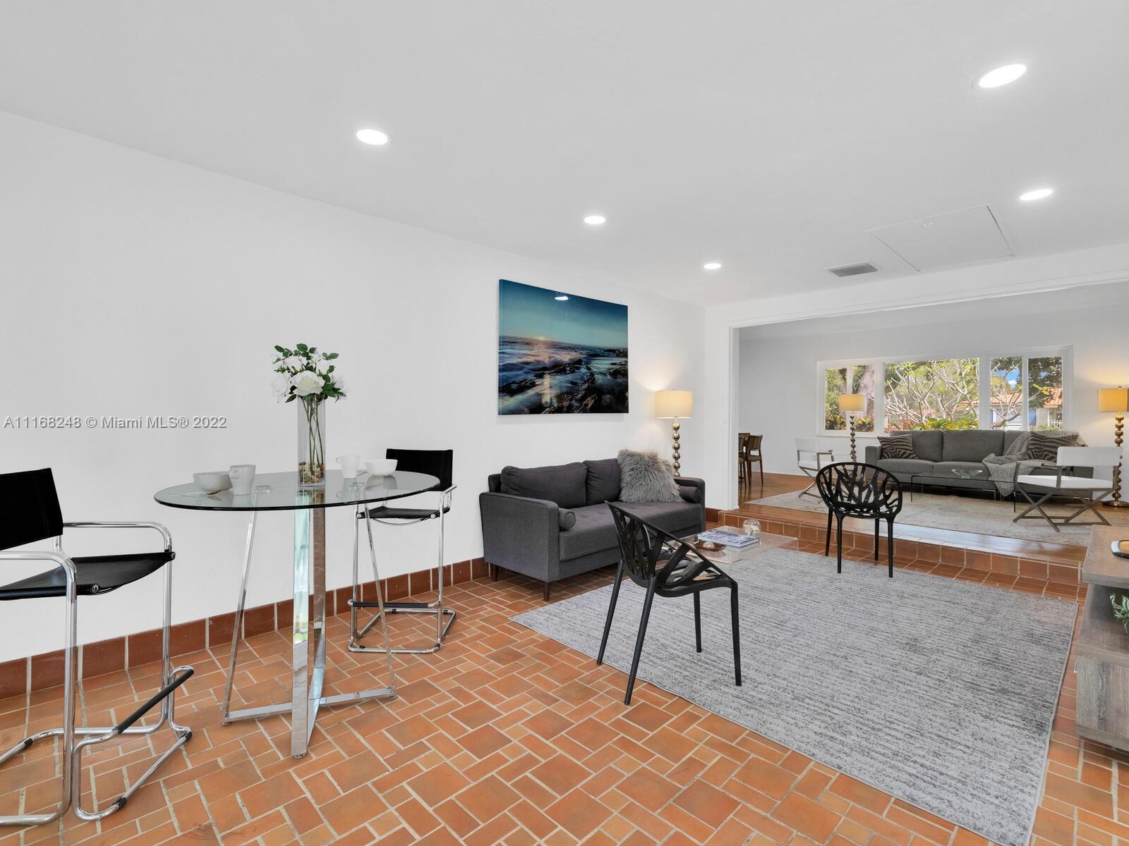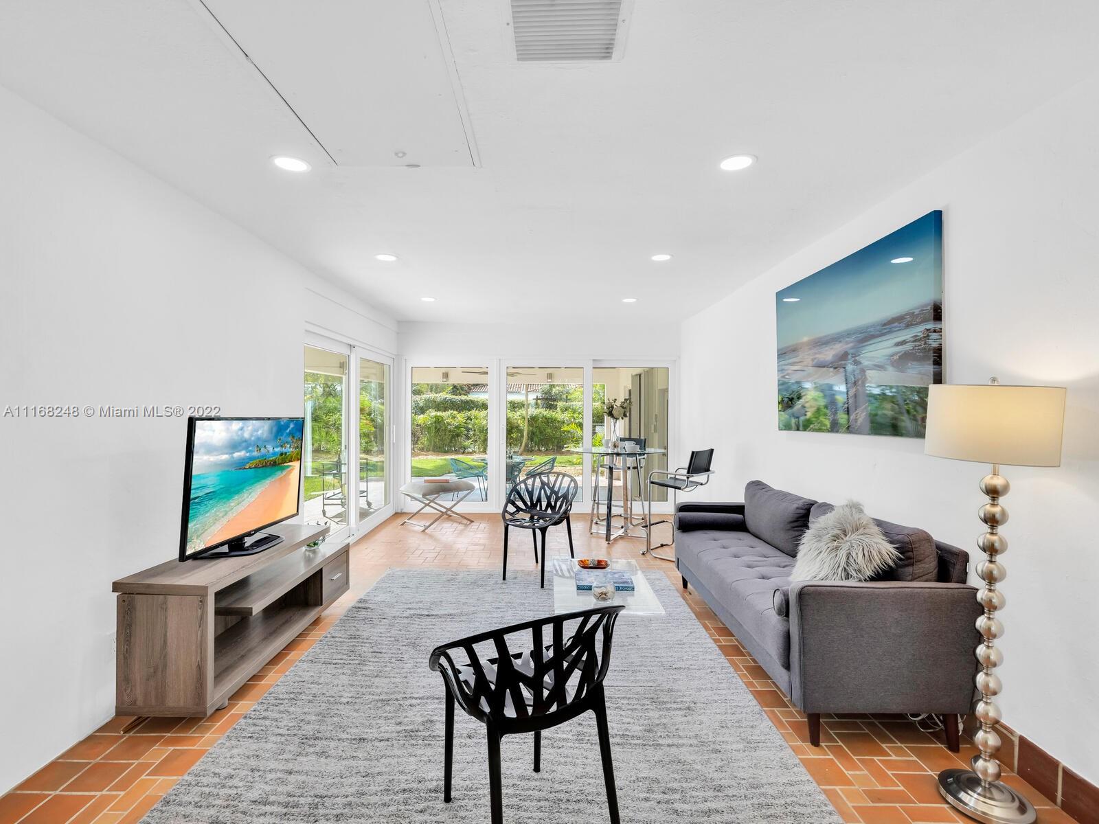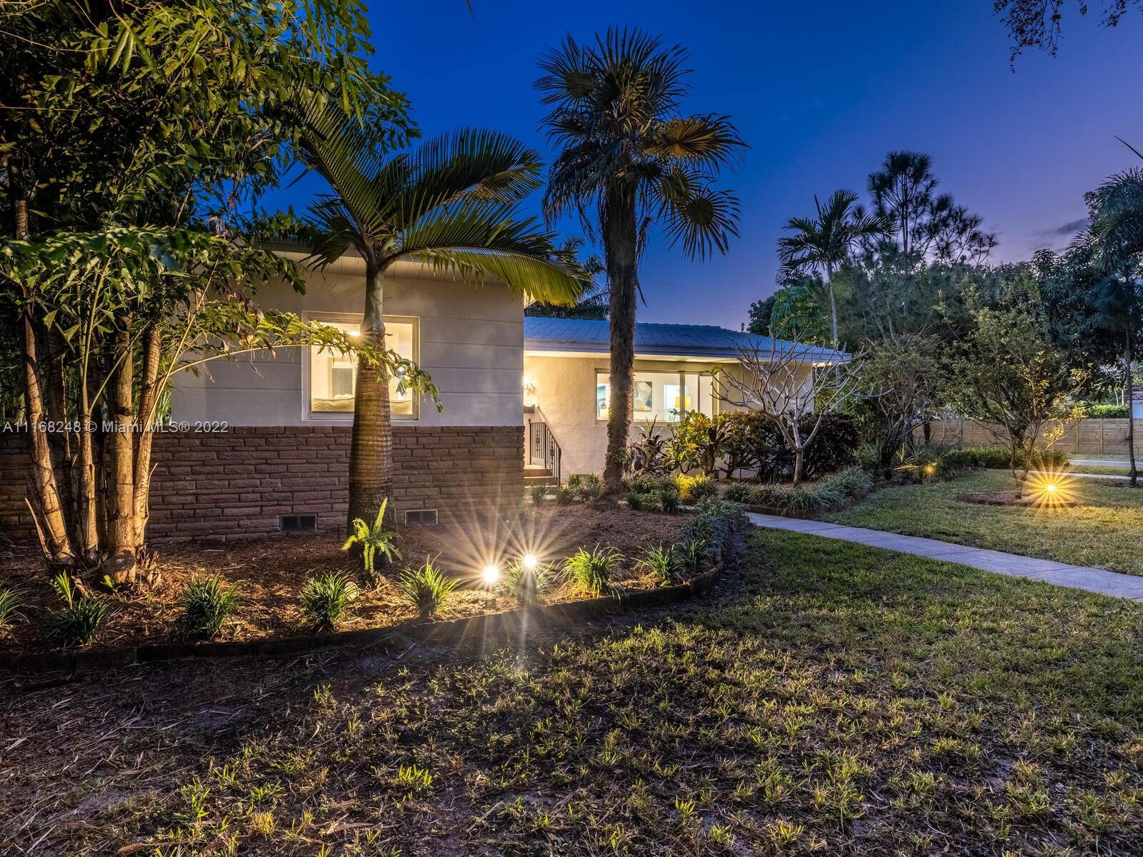 Welcome to Pineapple Point! Opportunity knocks in this classic Mid-Century Modern home on a lush, tree-filled signature corner lot with bespoke petite pineapple grove and separate guest suite. Enjoy as is, or renovate to your heart’s delight in the wide, spacious main house with open living and dining that flows to expansive glass window-walled media room overlooking the large, covered veranda and rear tropical gardens with room for a pool and so much space to entertain, relax and play! Bonus private entrance studio suite great as office, zen den or guest nest. Perks—impact windows, wood floors, newer roof and enclosed garage. All in a non-flood zone just blocks to downtown Miami Shores shops and restaurants. With your personal touches, you’ll agree— Pineapple Point won’t disappoint!