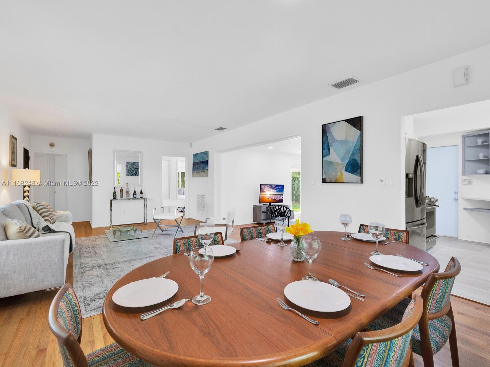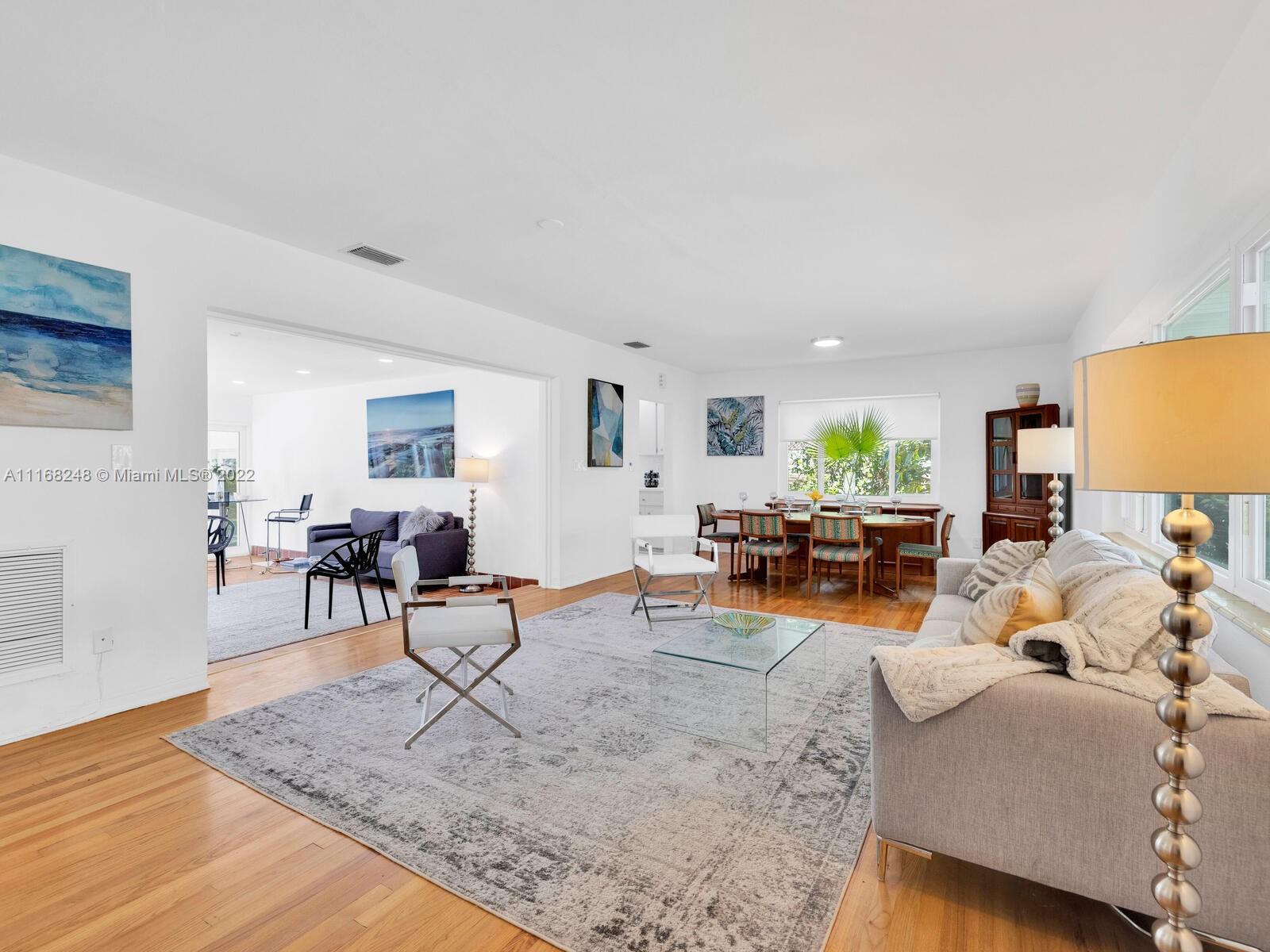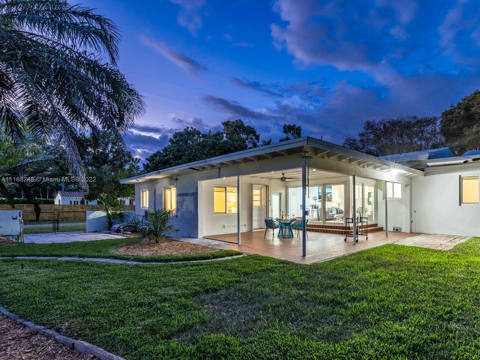 Welcome to Pineapple Point! Opportunity knocks in this classic Mid-Century Modern home on a lush, tree-filled signature corner lot with bespoke petite pineapple grove and separate guest suite. Enjoy as is, or renovate to your heart’s delight in the wide, spacious main house with open living and dining that flows to expansive glass window-walled media room overlooking the large, covered veranda and rear tropical gardens with room for a pool and so much space to entertain, relax and play! Bonus private entrance studio suite great as office, zen den or guest nest. Perks—impact windows, wood floors, newer roof and enclosed garage. All in a non-flood zone just blocks to downtown Miami Shores shops and restaurants. With your personal touches, you’ll agree— Pineapple Point won’t disappoint!