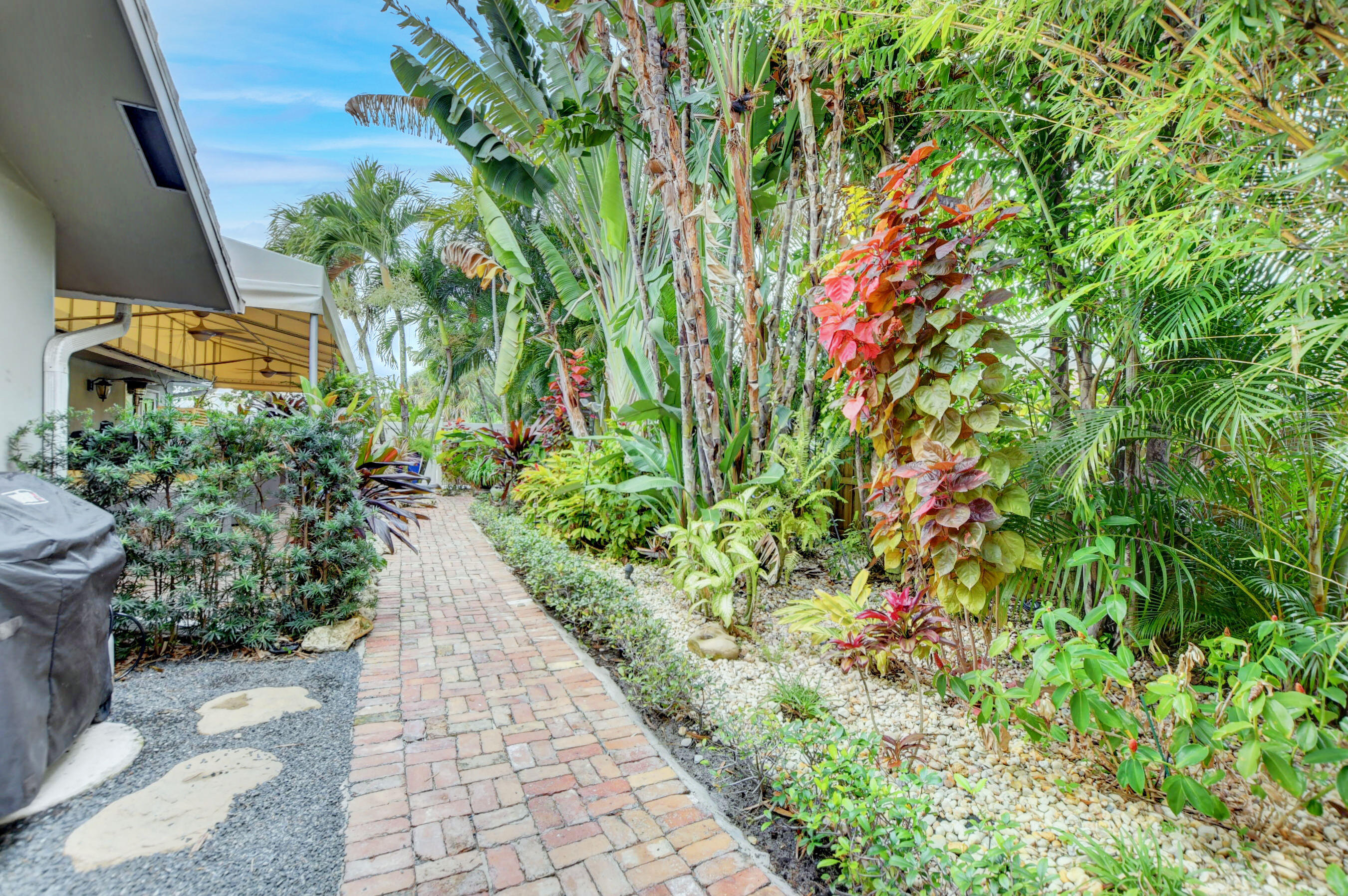 Price Drop!!!Welcome to Boca Raton Square-no HOA community with top rated schools! This home offers 3 bedrooms & 2 full baths, cedar walk-in closet in a 3rd bedroom, one car garage plus plenty of driveway parking that has entrance/egress to two different streets. Hurricane impact windows and doors on both sides of the home were installed. Home has solid wood kitchen cabinets with granite countertops, s/s GE profile appliances, double sink plus the bar sink. Master bedroom features a large bathroom suite with jetted tub and updated stall shower. Enjoy your evenings with family gatherings on the large covered patio with lush landscaped views. Bring your pets! The location is within 5 minutes to beautiful sandy beaches, grand shopping and amazing restaurants