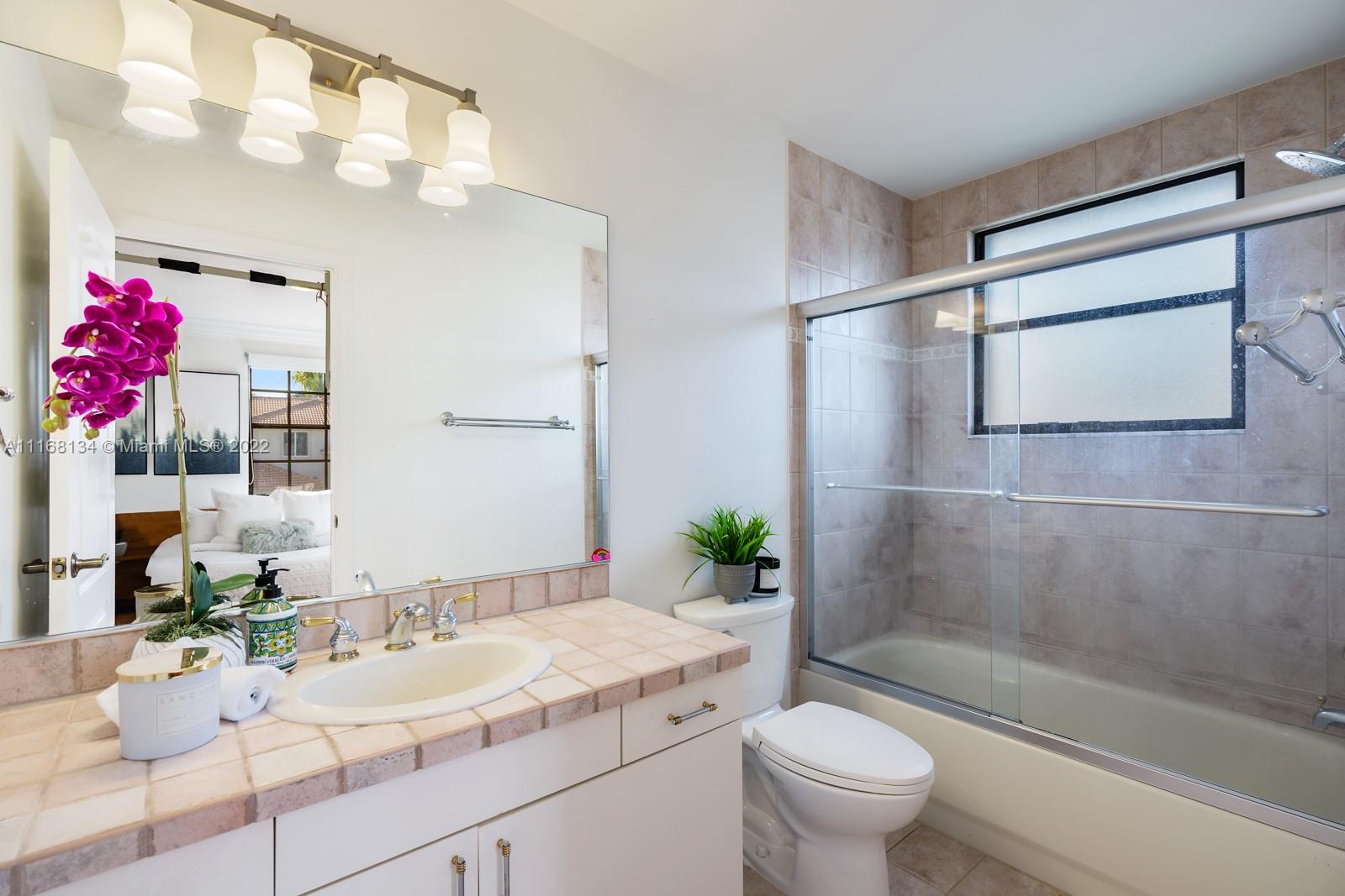 This gorgeous & spacious 6 bedrooms, 6 Bathrooms courtyard home located at the prestigious gated golf community of Weston Hills Country Club has it all: The most desirable floor plan with a separate 1BR/1BA guest house, an oversized lot with spectacular, just remodeled patio with modern travertine pavers floors, free-form pool, wood deck, and a separate backyard. Open and spacious split floor plan featuring marble & wood floors, vaulted ceilings, floor-to-ceiling windows, frameless glass railing stairs, a formal living and dining room, and a huge family room that interacts with the new gourmet kitchen with stainless steel appliances, and quartz countertops. All windows have accordian shutters. Ideal for those families who love to entertain with family and friends. 3 car garage. A+ Schools.