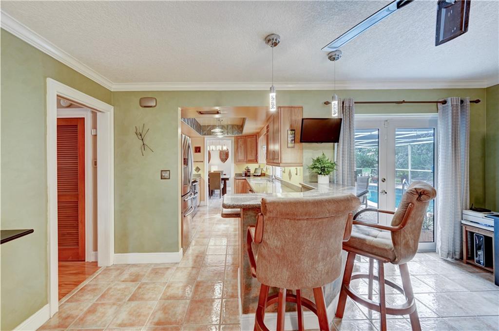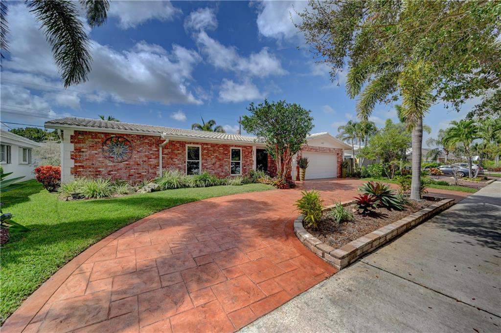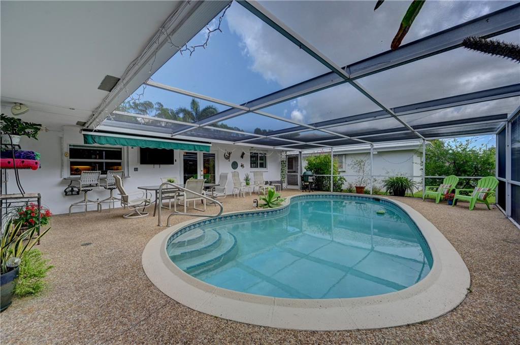 Beautiful spacious 4 bedroom, 2 bath Imperial Point Pool Home! Updated kitchen w/Kraftmaid wood cabinets & newer stainless steel appliances, plenty of storage. Breakfast bar & family room. Large master bedroom, updated bath, walk in closet & plantation shutters. New A/C 2019, hot water heater 2018. All french doors & living room windows are impact. Other windows & cabana bath have shutters. 2 car garage plus separate laundry room. Great outdoor entertaining. Solar heated pool, screened in to keep out bugs & leaves. Great for pets. The backyard is a tranquil setting that includes a hot tub, outdoor lighting for entertaining as well as a lovely garden with Florida friendly plantings, trees and bird baths. Great location!