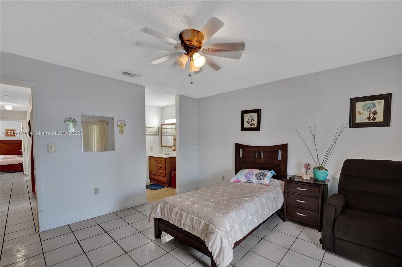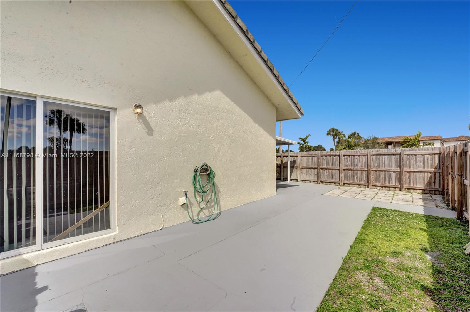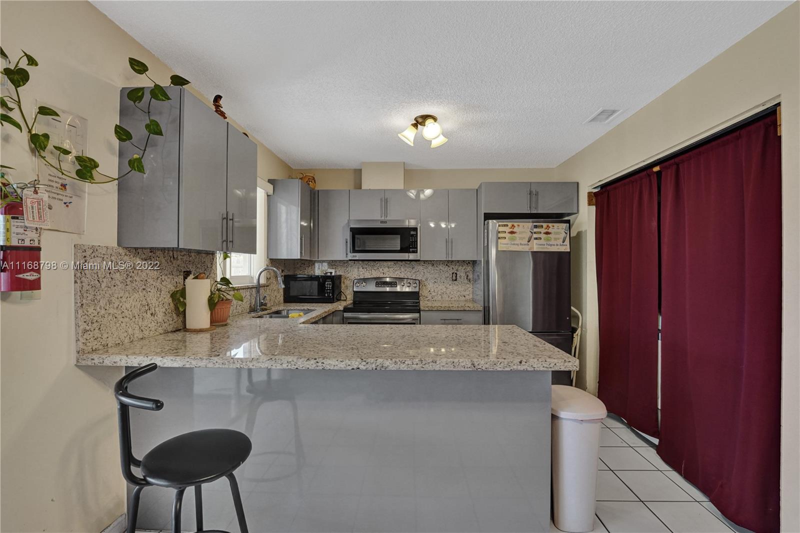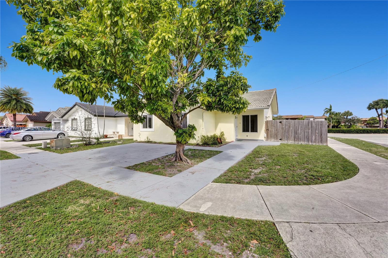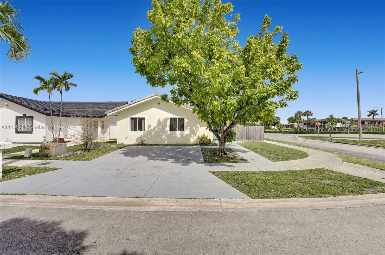 Wait until you see this lovely home, ready to be made your dream house! Brand new kitchen within the past year, granite countertops, stainless appliances and a full size washer/dryer. Cathedral ceiling and three sets of sliders, two leading to a giant patio most of which is covered making this home light and bright. Impact windows and doors all around. Open floor plan living space. Large primary suite with walk-in closet and walk-in shower and two larger guest bedrooms and second bath. Plenty of parking. House is being sold as is. Minutes to Palmetto Expressway, shopping, dining and schools. Patio area surrounded by newer, attractive wooden fence, ready for your outdoor entertaining. Don't wait, call today!