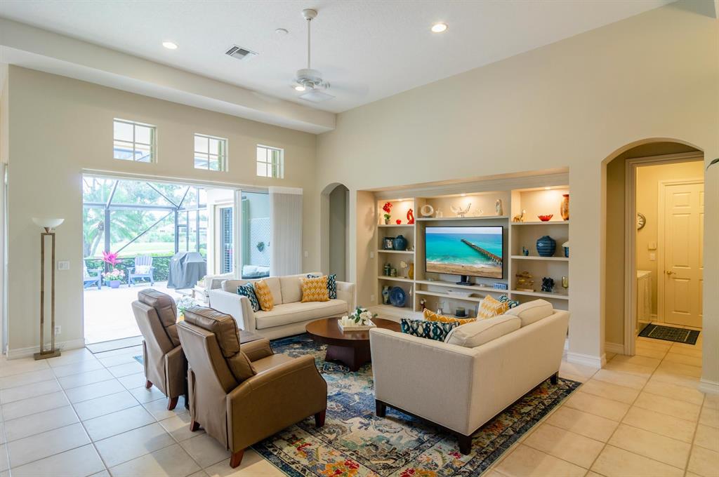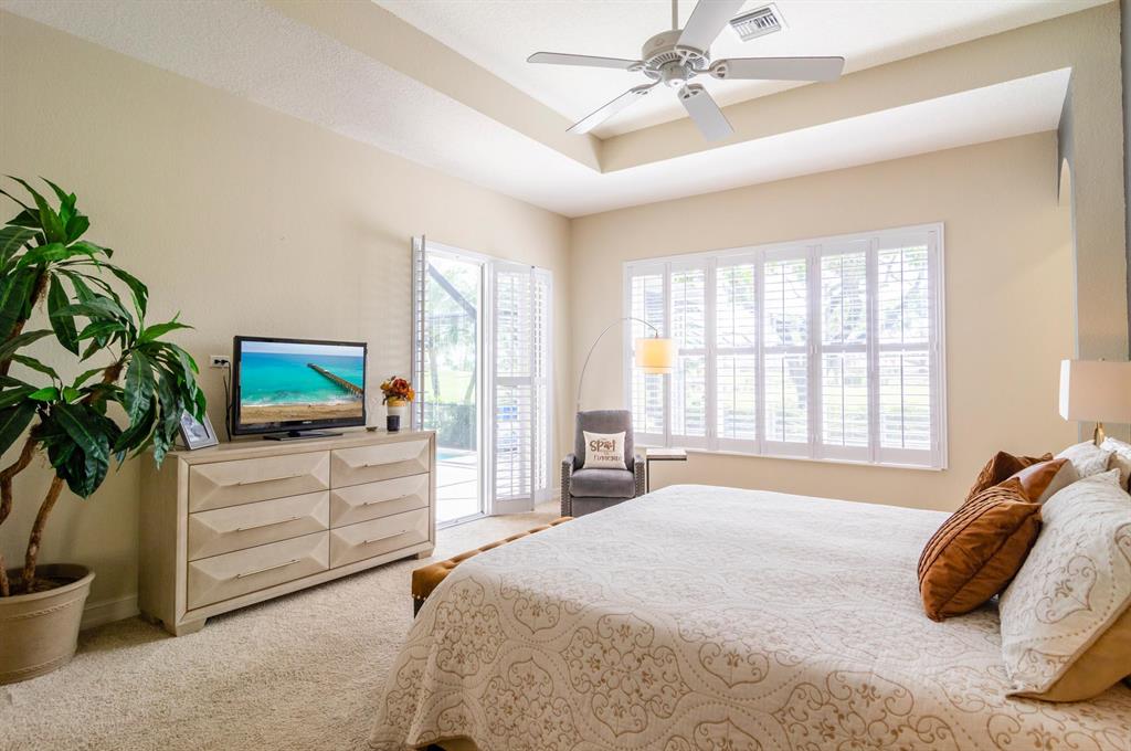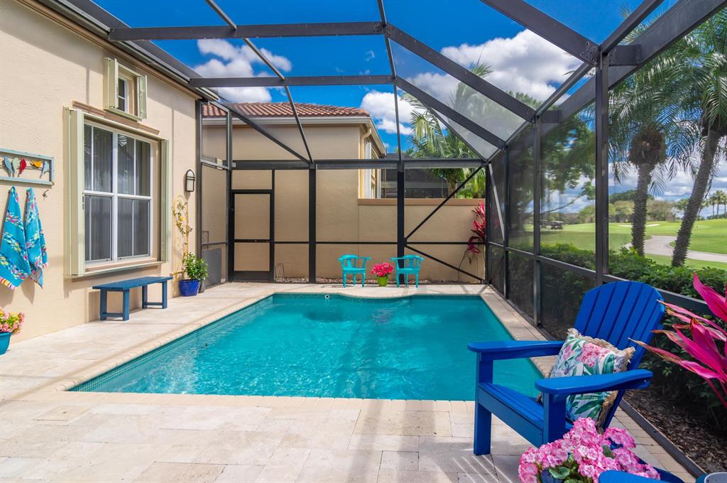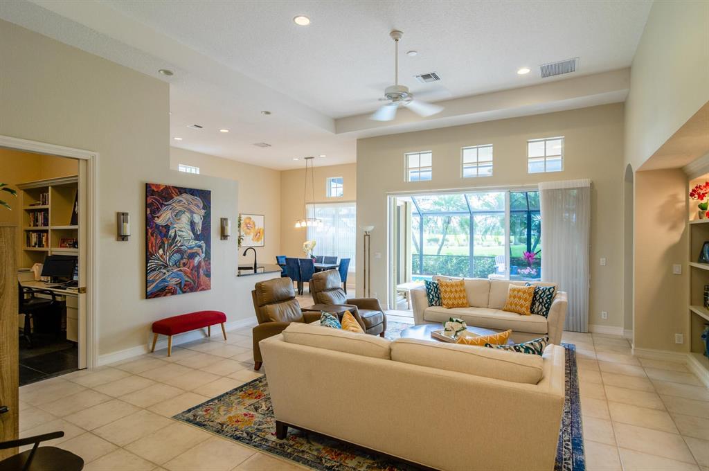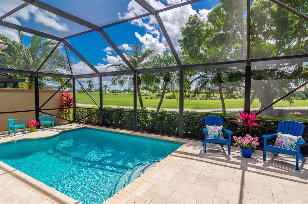Check, Check, Check features for the best in Florida living! Premium southern exposure, private heated pool, 3/3 + den, and sweeping views of the Legends Course at Ibis Golf & Country Club! You'll love the open Great Room plan with coffered ceiling, recessed lighting, custom built-in plus wide views of the Legends fairway and your lanai oasis. This open-concept plan has an adjacent white kitchen with sleek granite breakfast bar plus a dining extension with views to the fairway. A pocket door entry to the office reveals custom maple built-ins and slate flooring. The master suite on the west has soft, neutral tones and beautiful light plus large closets and bath. Guest rooms are on the east side with a full bath plus powder room. Soc. Membership Req., 2016 Roof, Immaculate!