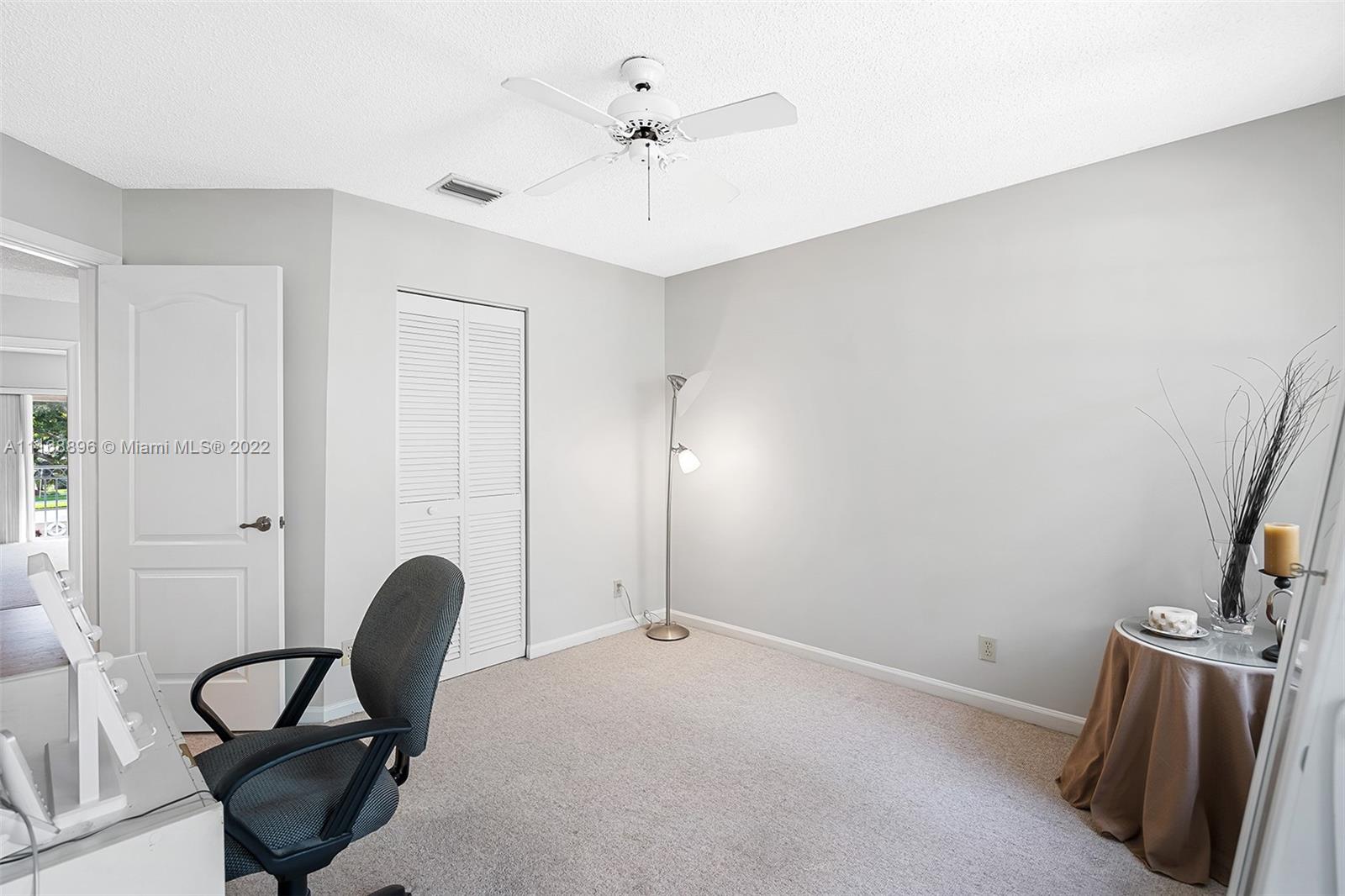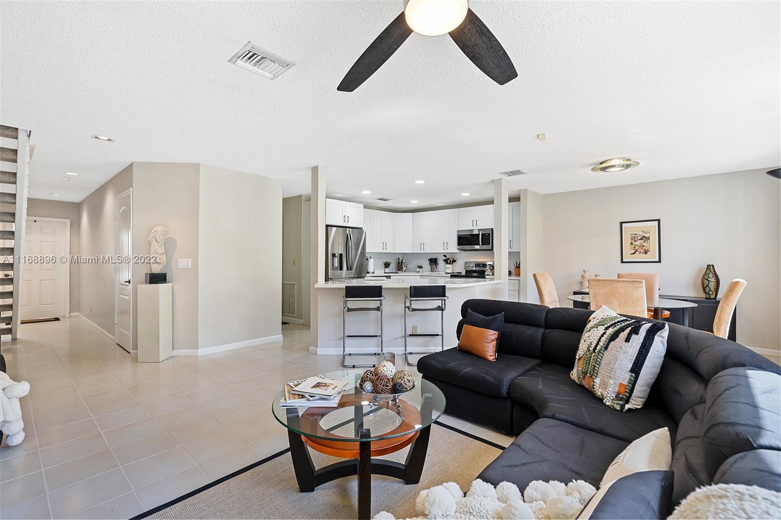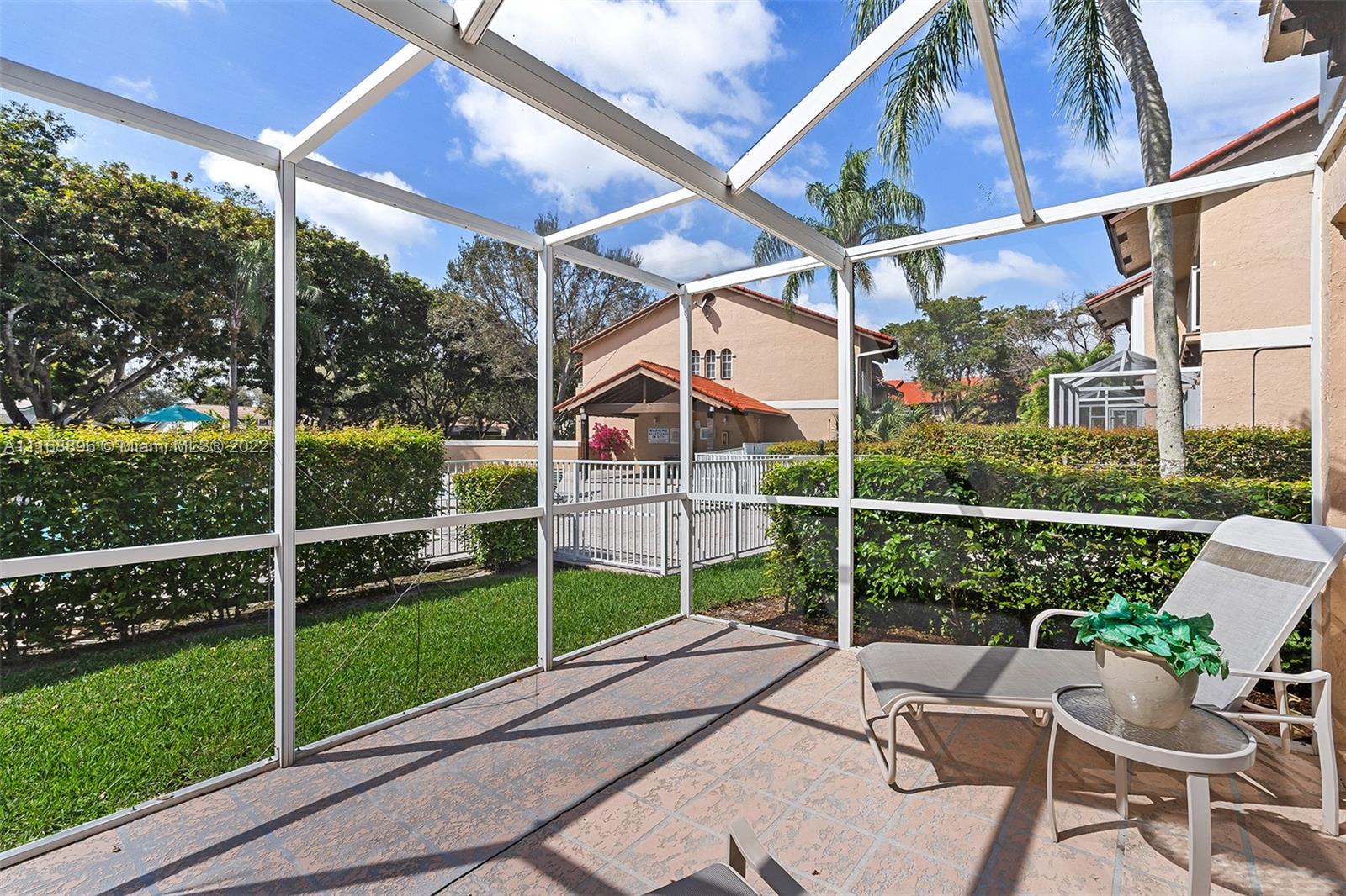 This is the one! Spacious corner 3-bedroom 2 and a half bath townhouse with 2 car garage in desirable Coral Sun, Coral Springs. 1st floor has a foyer entry, an open concept living area, powder room, beautifully renovated kitchen with stainless steel appliances and quartz countertops, huge island and custom cabinetry. Sliding doors open to a serene extended screened in patio. Second floor 2 front bedrooms share a balcony, and each have huge walk-in closets, owner's suite has sliding doors for an indoor/outdoor feel, vaulted ceilings and a renovated bathroom. Closet space galore! Centrally located close to highways and shopping. See this beautiful townhome before its gone!