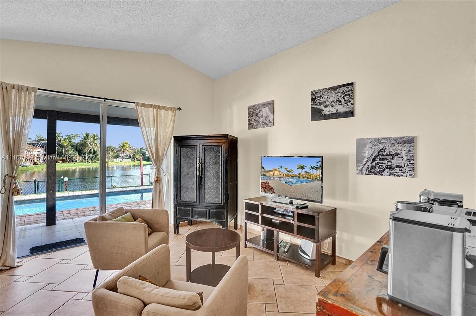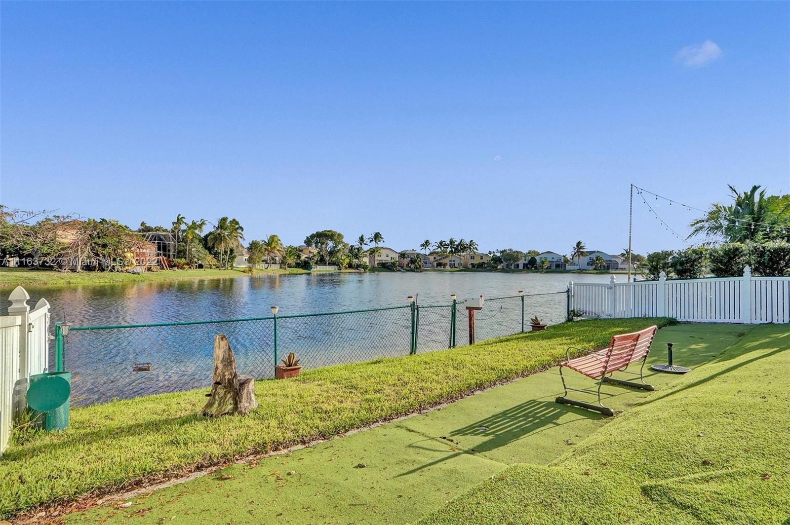 Rarely available updated 3/2 on the water w/pool. Home has many features that any Buyer would love including updated kitchen & bathrooms, 2 car garage, tile & wood floors, S.S. appliances, open kitchen concept, fenced back yard overlooking the water view & pool area (nicely done with brick pavers), and added put-put golf for practicing with amazing views. One of the few homes w/private backyard on water allowing you to come home & enjoy peaceful relaxation as well as perfect for entertaining friends & family. Cherry Bay is a private gated community in Towngate located in the heart of Pembroke Pines. Close to major highways, shopping, schools, restaurants, hospital, & more. Maintenance includes internet & basic cable tv, Gated community, pools, tennis courts & playgrounds, and more.