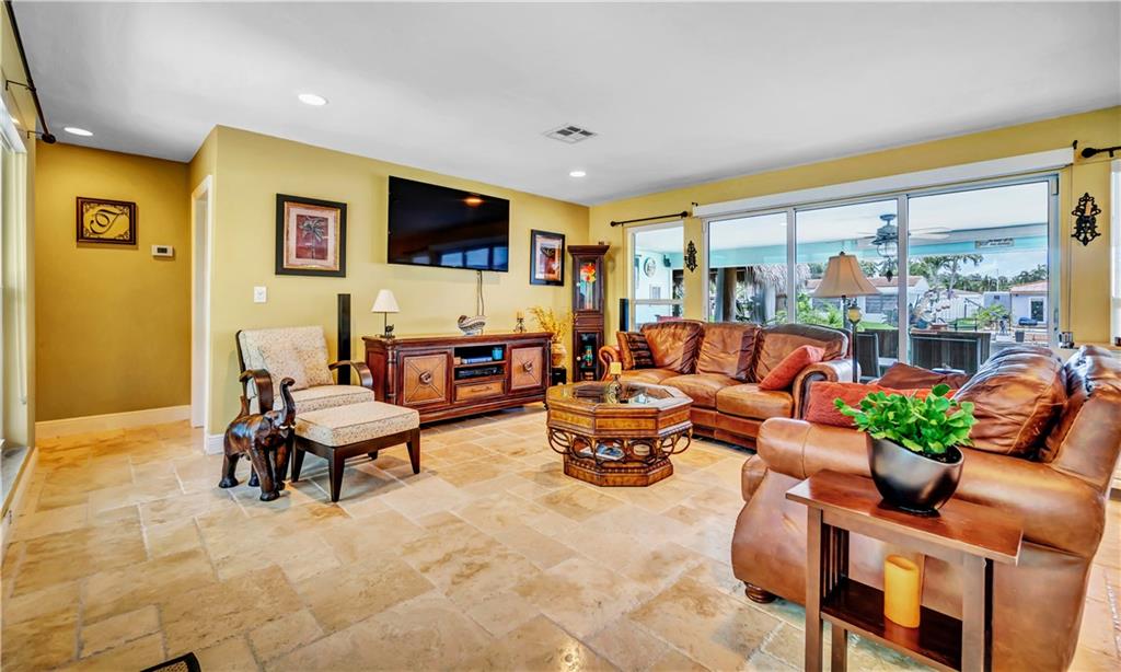 No Fixed Bridges! Unrestricted waterway to the ocean! Boating community! This recently updated home is situated on a deep-water canal, the widest canal in the Citrus Isles. The home has gorgeous travertine floors throughout with warm, naturally lit living spaces. The gourmet kitchen features Jenn-Air appliances, granite countertops, custom cabinetry with a built-in refrigerator, and a large 6-burner gas stove. Through the sliding glass doors are an enclosed porch and seating area for large dinner parties and get-togethers. The expansive outdoor entraining area features a comfortable Zen feel with two tiki huts and a full outdoor kitchen that includes a high-end grill and a Green Egg smoker. Water frontage on the canal is 65' with a new 55' dock. The property can accommodate a 55' vessel.