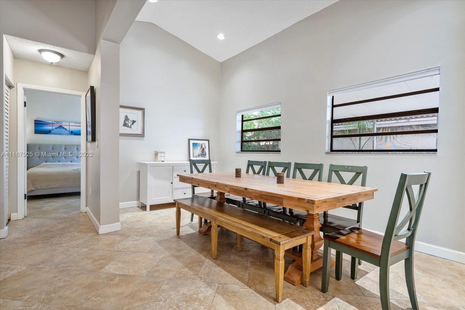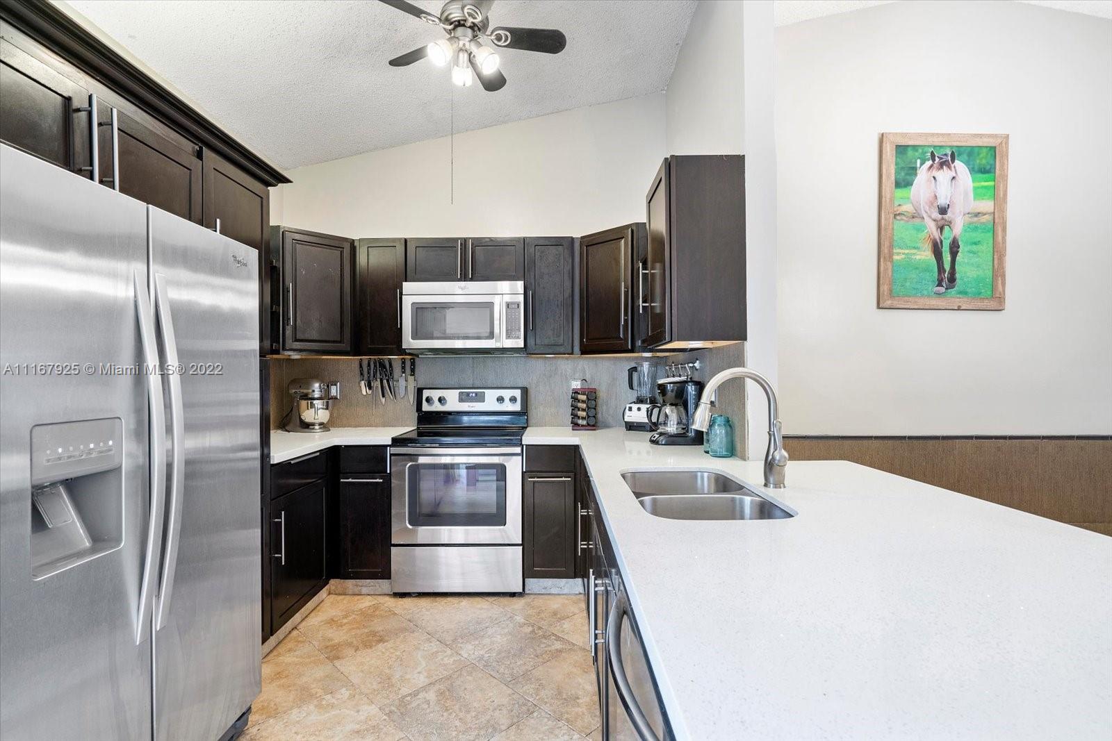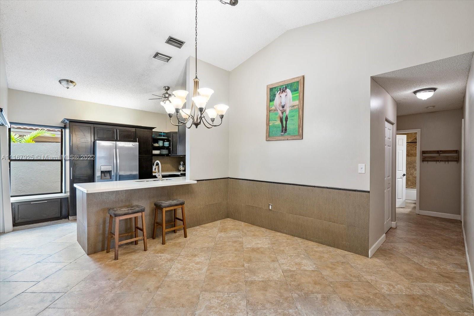 BEAUTIFUL MOVE-IN READY 3 Bedroom 2 bathroom home in the HIGHLY SOUGHT-AFTER Waterford community of Davie. This home features a Split Floor plan, Vaulted Ceilings & a LARGE Formal Dining Area. You’ll love the many things this home has to offer such as Stainless-Steel Appliances, Quartz Counters, Open Floor Plan, and an Expansive Living Room. The Spacious Primary Suite offers you a Large Walk-in closet and TWO Separate Vanity Areas. Outside you’ll enjoy the LARGE SCREENED PORCH, Lush yard with Mango Tree that’s FENCED and 2 car garage. The Community offers Low HOA Fees, pool, courts for basketball/tennis/racketball/and more. Located near Top Rated Schools, shopping and easy access to expressways. **Actual Living Space Larger than records** - square footage added by the original builder.