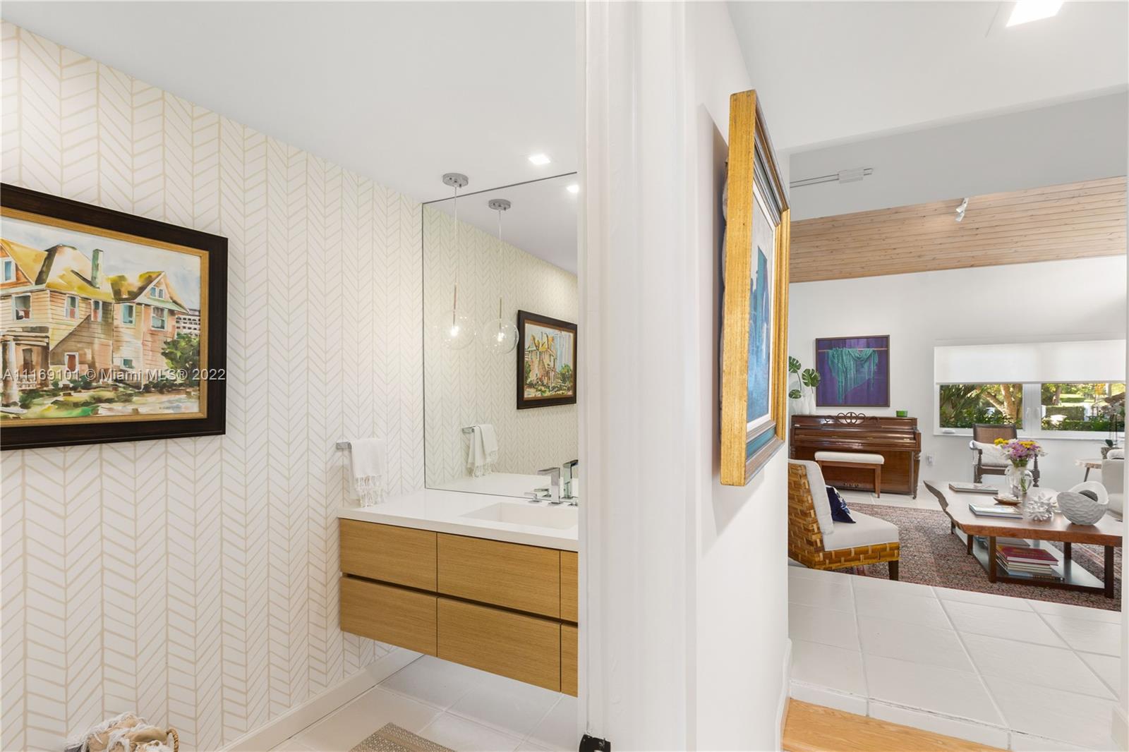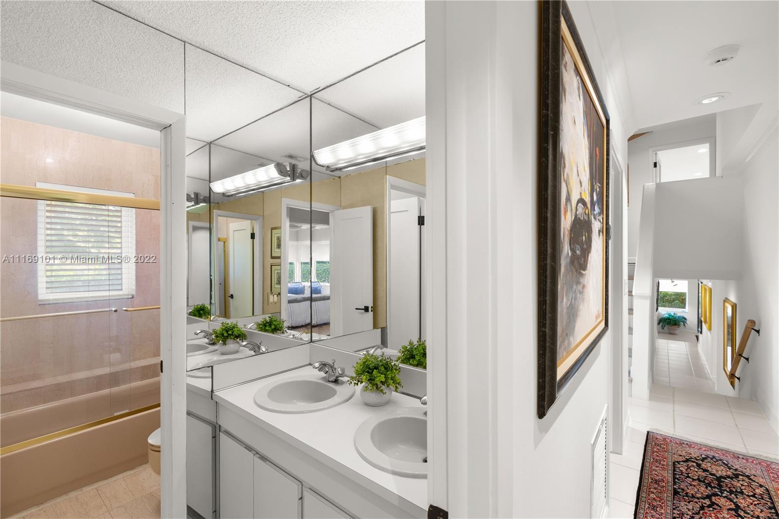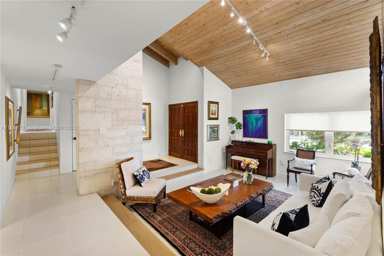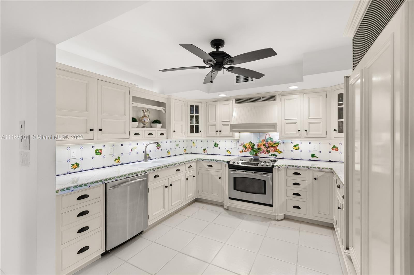 Spectacular 5-bed, 4-bath waterfront home in Gables By the Sea. This is an oasis of comfort with amazing pool, patio & summer kitchen. While there is no access to the bay, the serenity & beauty of the waterway are amazing especially while engorging the evening on the dock. This home is full of surprises, elevated to over 12-ft, it has a finished basement w/ a large traditional Spanish bar & dining room, that are perfect to catch a game or simply gather w/ friends while enjoying a glass from its temperature and humidity controlled 600-bottle wine cellar. 17k + sq ft lot, circular driveway, 2 car garage & Gym. This is a fabulous place to work at home or to come home to, after work. Priced to sell, the current owners enjoyed this home for 32 years and are ready to pass it on to a new family.