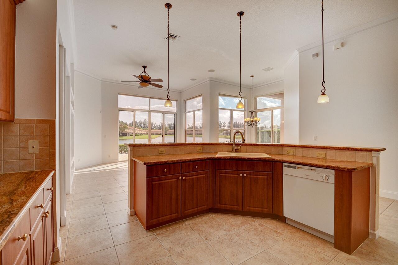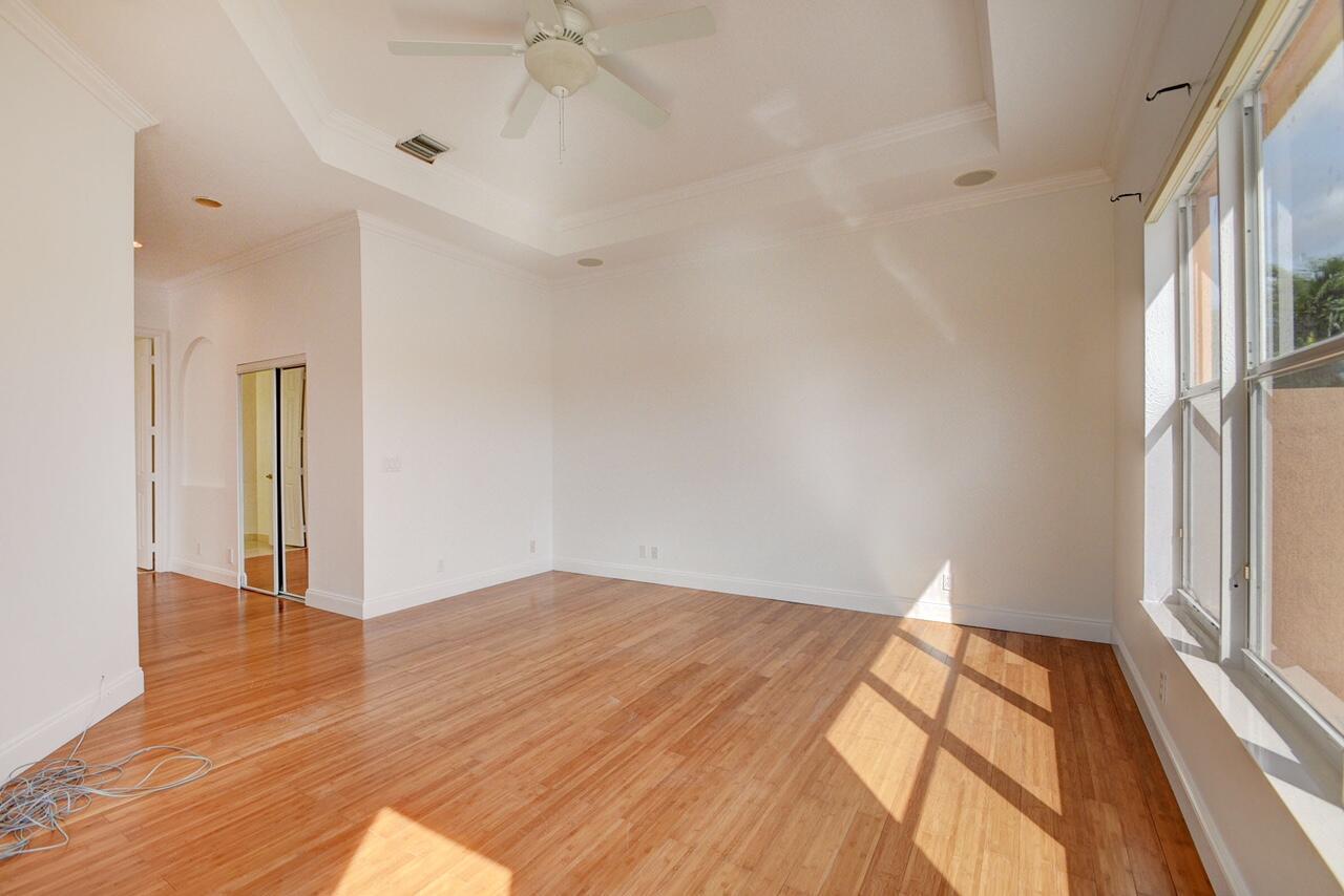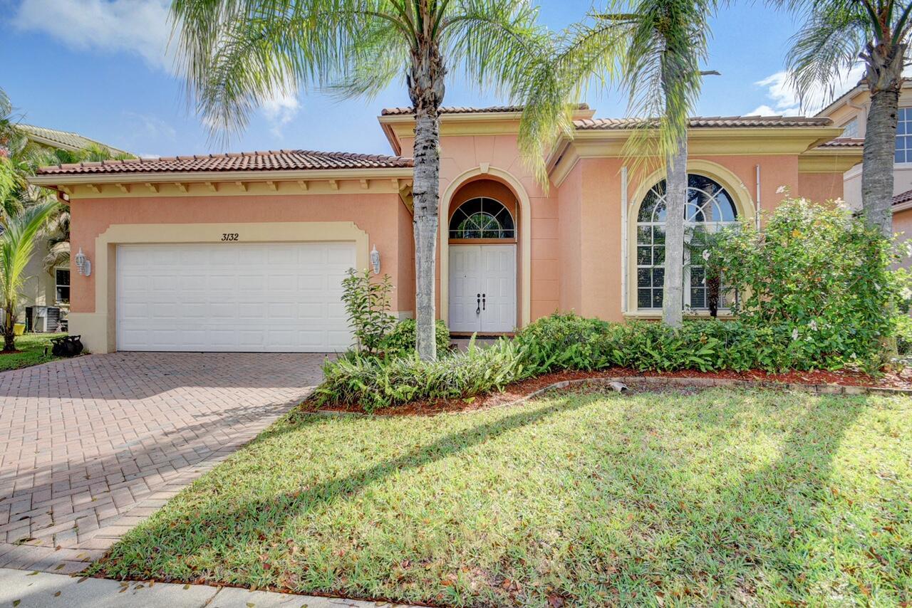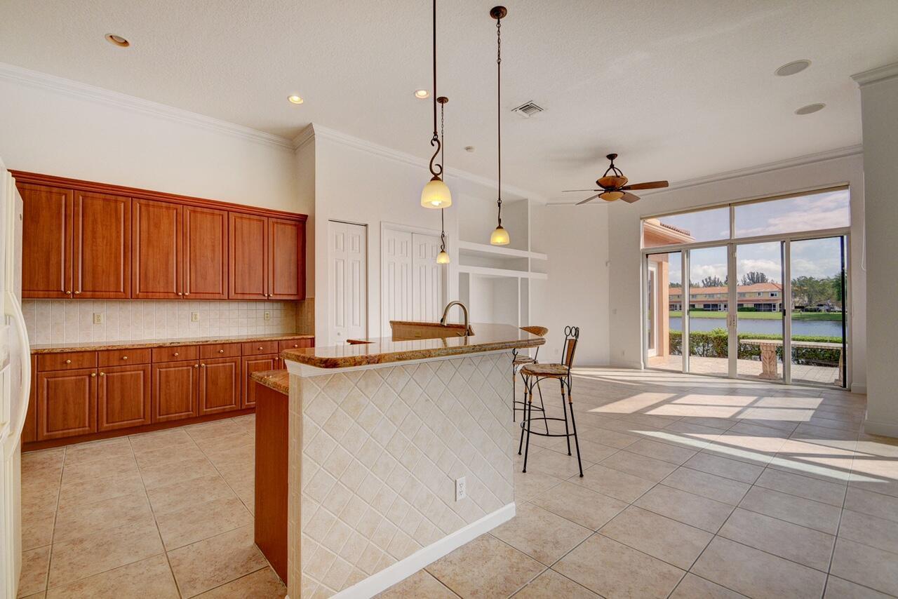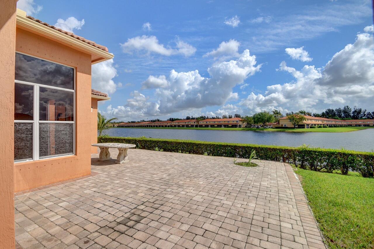GORGEOUS WATER VIEWS!! WOW, Best describes this Freshly Painted 4Bd/3Bath. Grand Entrance leads to a Spacious Bright Split Bedrm, One Level Floor Plan. High Ceilings throughout. Enormous Master Suite and Master Bath w/Jacuzzi Tub. Open Kitchen w/Counter Seating and Breakfast Nook. Family Room w/Sliders open to Patio overlooking Water and Fountain. Formal Dining and Living Rooms. Large Windows throughout. Tile in Living Areas. Real Wood Floors in Bedrms. 2Car Garage. New A/C. Large Patio and Big Back and Side yards. Room for Pool. Gated Community. Clubhse. Community Pool. Fitness Center. Tennis Courts. Low HOA $255/mth. Easy access to Turnpike, I95. 20 minutes to Palm Beach Island and Beach. Minutes to Restaurants, Shops. 12 minutes to Downtown WPB, Rosemary Sq, Kravis Center. Pets Welcome!