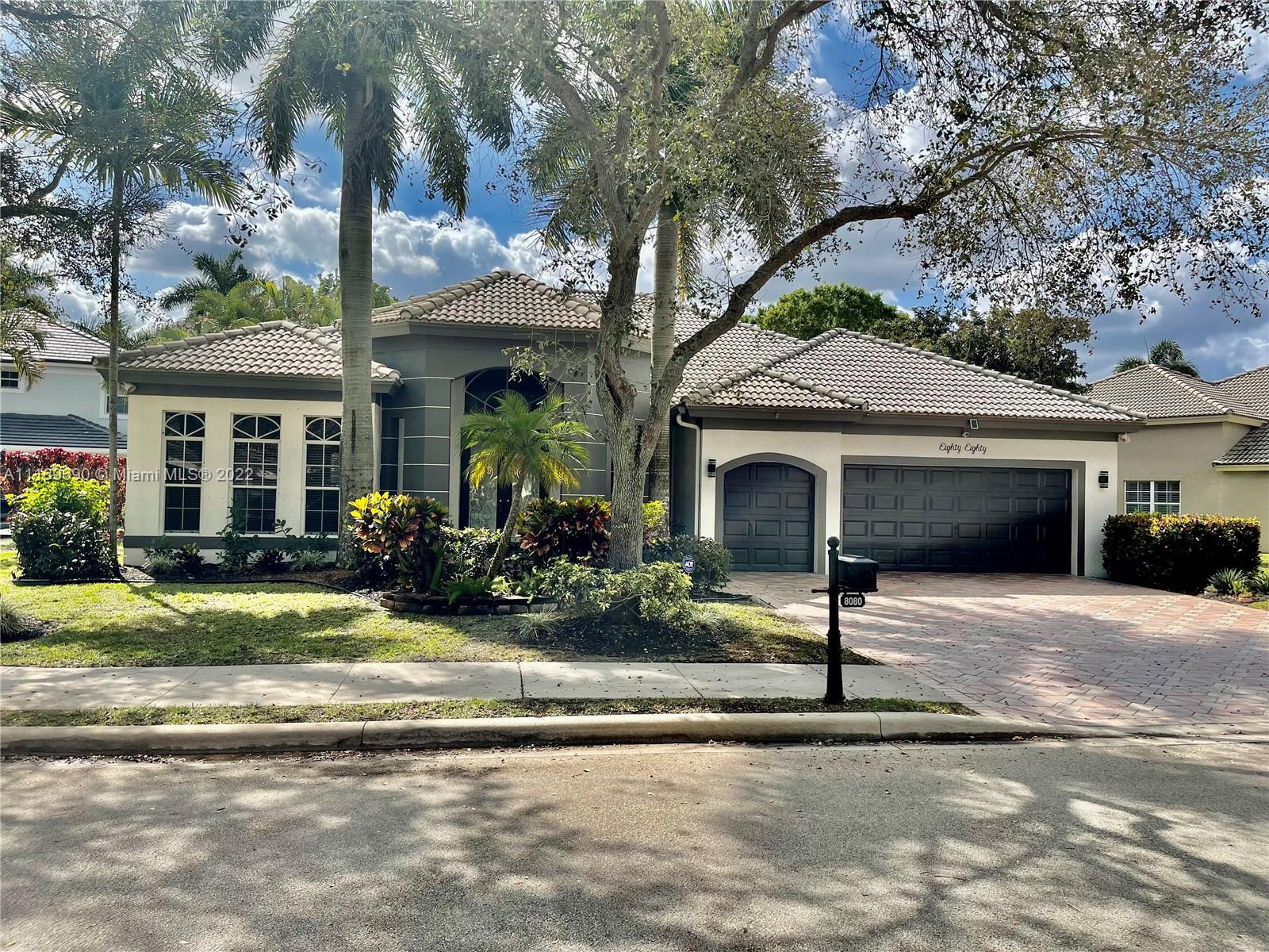 In a quiet cul-de-sac, this beautiful 4 bdrm, 4 bath, pool home boasts endless lake and golf course views of Grande Oaks executive golf course. Fabulous gated-guarded 'Lake Estate at Rolling Hills' is close to NSU and Academic Village in the heart of Davie, and ALL conveniences. A 4-way split bedroom floor plan, 13' ceilings, huge picture windows. Backyard is a tropical paradise, perfect for entertaining with huge patio and pool/spa set away from the house, fenced and with mature landscaping. Elegance at every turn. Inviting kitchen offers wood cabinetry, granite tops, wet bar, center island, newer SS appliances and large pantry. Large neutral tile in social areas and wood laminate flooring in bdrms. 2 full car-garage with hobby zone. HOA-$900/Qtr. incl: Cable, WIFI, Alarm,​​‌​​​​‌​‌​​​​‌‌​‌​​​​‌‌​​‌‌​​‌‌ Gate-guarded