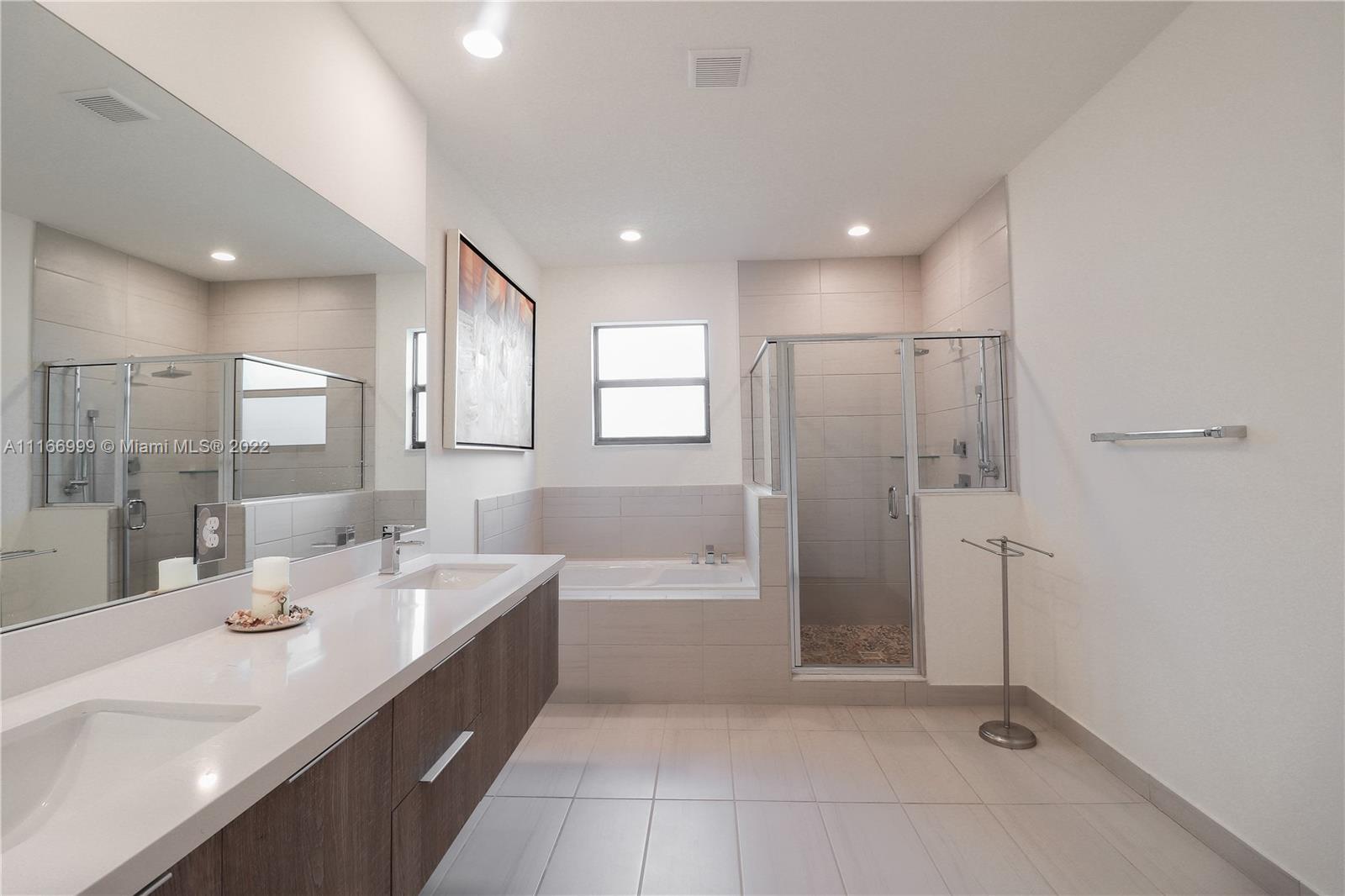 NEW 3 Beds 2.5 Baths Corner Home with 2 car garage available FOR SALE! Furniture may be included in the sale if buyer wants. Currently Rented Fully Furnished with exquisite taste everything that a home needs, you do not need to bring anything else but your toothbrush and clothes. Costume cabinets in all three bedrooms & garage for extra storage. Everything is in LIKE NEW condition, Ideal for an executive or family being relocated needing a home with everything included. Quartz countertops in kitchen and baths with beautiful light brown cabinets with soft closing mechanism. With access to the biggest & best Clubhouse in all of Doral at the Park Central Clubhouse with pool, water park, tennis, basketball, soccer, gym, ballroom, business center & much more! SHOWINGS STARTING AFTER 3/16/2021