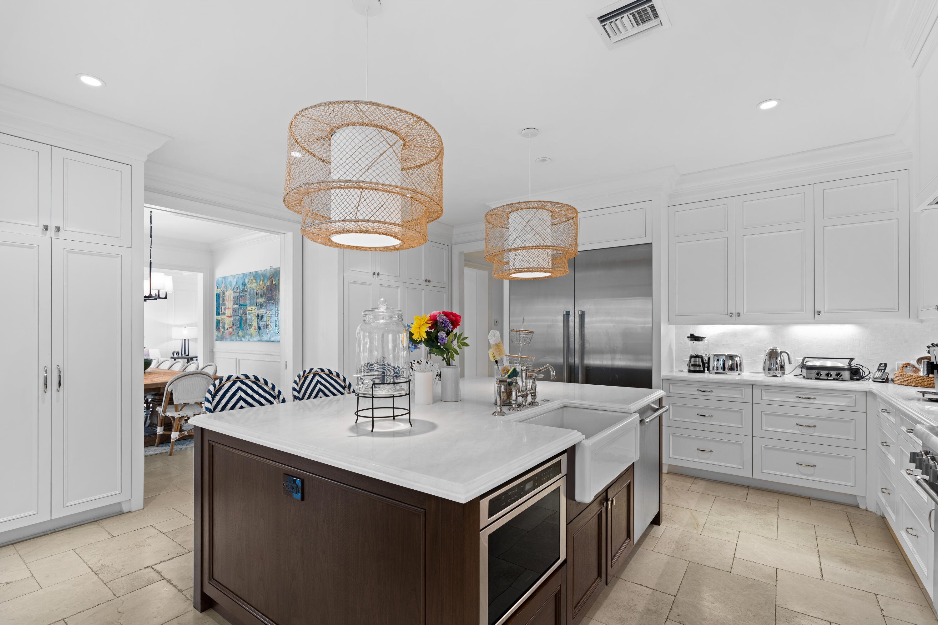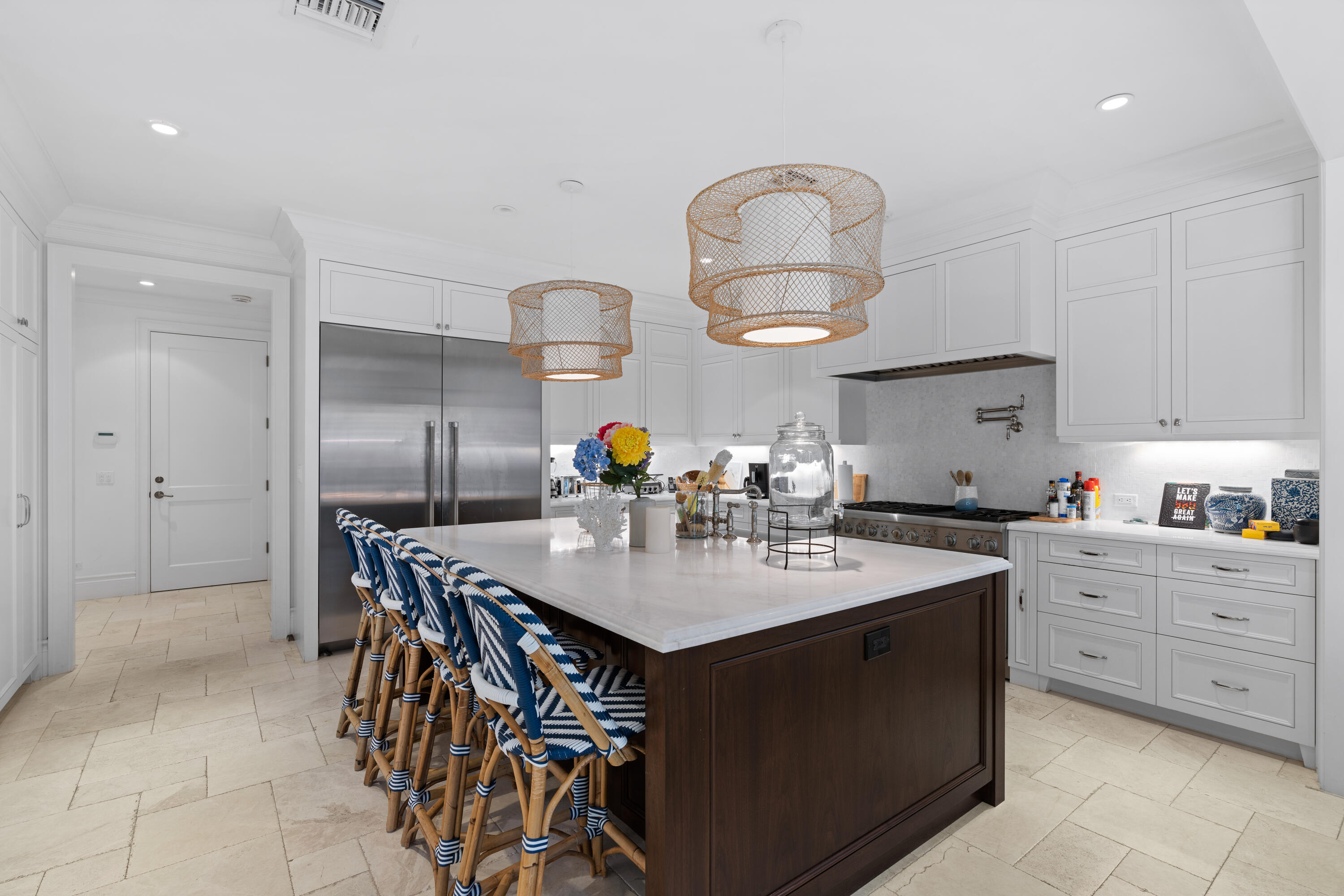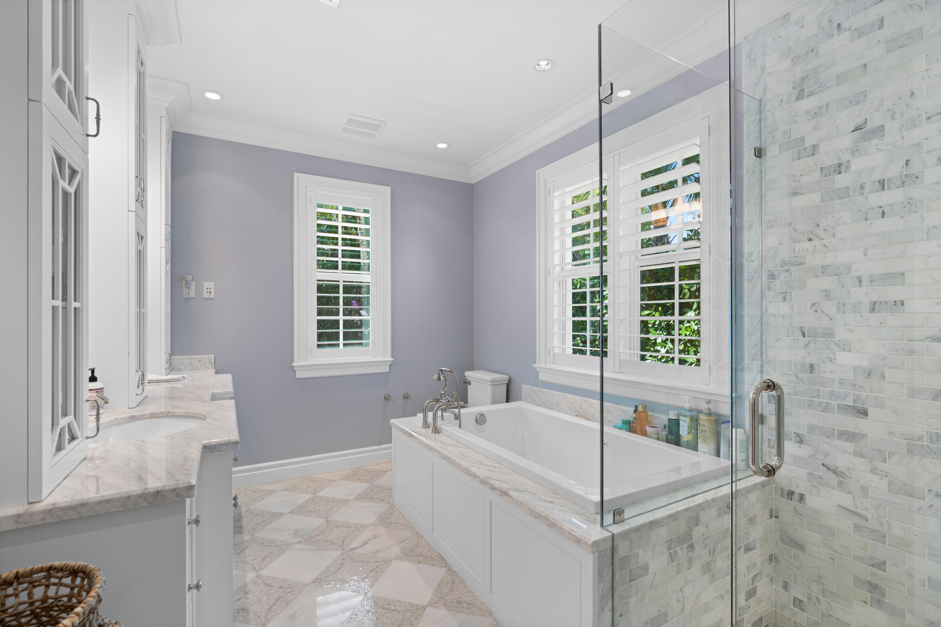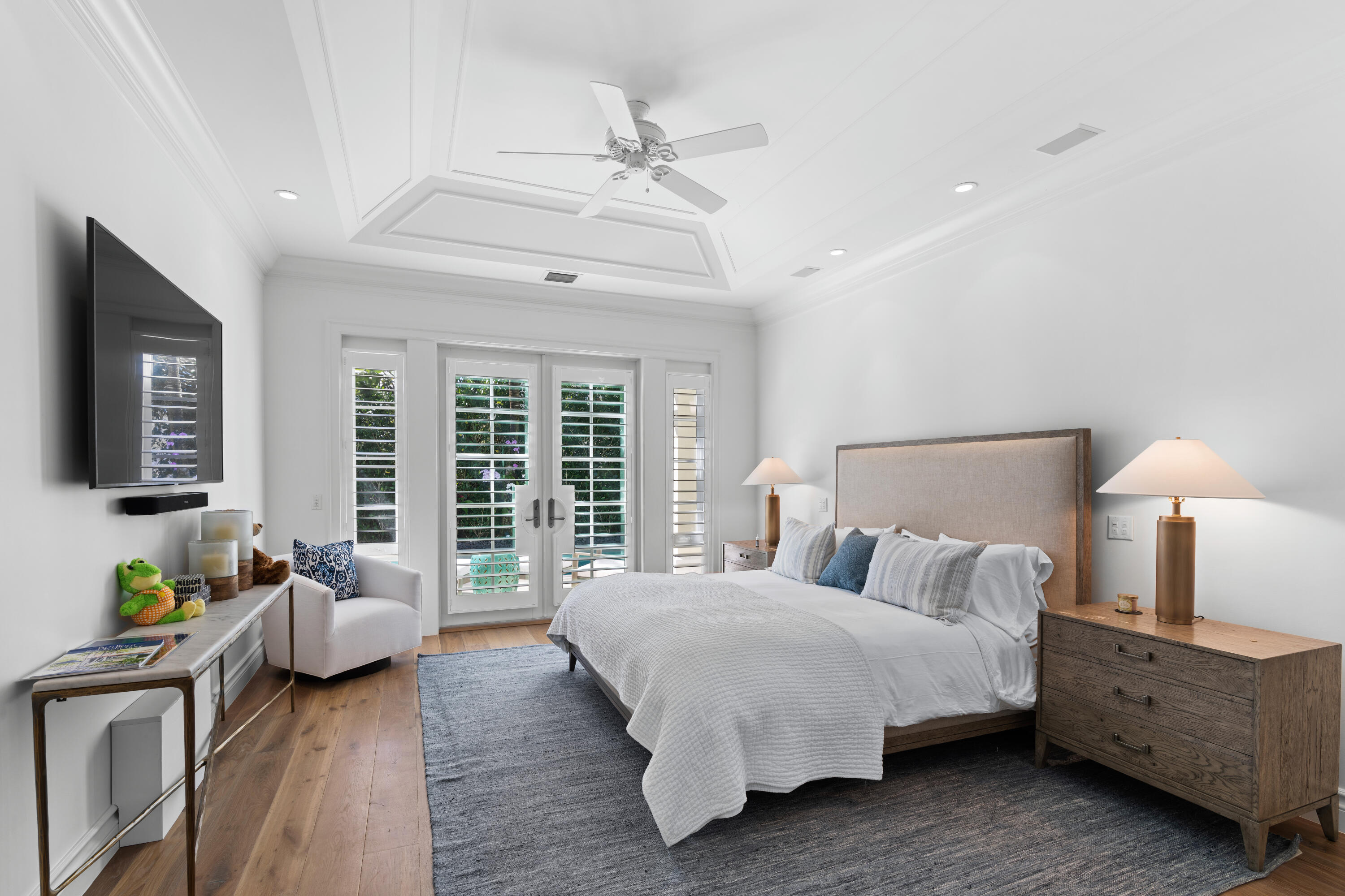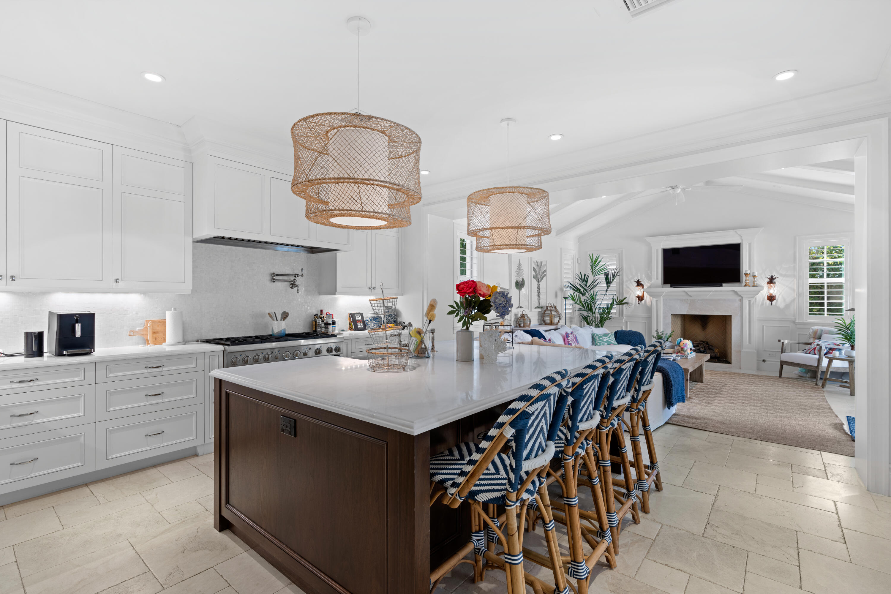 Welcome to 268 Jamaica Lane, a completely turn-key residence offered designer-furnished on the highly desirable North End of Palm Beach. Featuring full interior design by Restoration Hardware and Hive, this exquisite residence boasts 4 beds, an office, an upstairs bonus room, and 5.5 baths spread out over 5,358 total square feet of living space. The home has a gorgeous covered outdoor loggia by the pool that is perfect for entertaining and al fresco dining. Inside the home, you'll find a beautiful downstairs master suite with his and her closets and baths which opens graciously to the heated pool and also connects to a full home office. The downstairs boasts a formal living room, dining room, chef's kitchen, and inviting family room off the kitchen.
