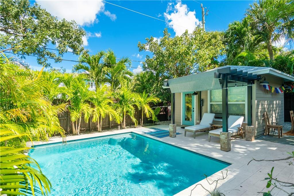 This charming property is located in the heart of the Grandview Heights historical district. Between 2018 and 2020 it was completely renovated to a condition that is equivalent to new construction. Main house is 1,121sf 2-Bedroom, 2-Bath with back deck overlooking in-ground pool area. The Pool House is a 224sf studio apartment with full bath & laundry. 100% new build. Grand Total Structure is 1,345sf. Private driveway with room to easily accommodate 5 cars. Within walking distance to parks, Palm Beach, downtown shopping & dining including Grandview Public Market, The Square Downtown West Palm. Short bike ride to the intracoastal and the beach. Minutes to the Palm Beach International Airport, A rated schools, Norton Museum of Art, and the Kravis Center for the Performing Arts.