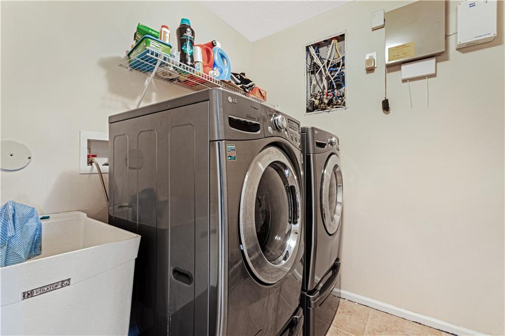 Enormous lakefront Bentley model located in the prestigious and gated Silver Falls. Downstairs features eat in kitchen with island, newer stainless steel appliances. First floor bedroom with private entrance could easily become an efficiency or a private wing including full handicapped accessible bathroom with step in shower/tub. Downstairs also features formal dining and large screened porch. Up the wooden staircase with iron rod banister, leads to 4 more bedrooms AND upstairs laundry room. Primary bedroom is massive, with entire sitting area or office. Two spacious closets. Split master bathroom with adjoining shower. Also features French doors leading out to balcony overlooking the lake. Accordion shutters on all windows for hurricane protection. Two car garage with paver driveway.