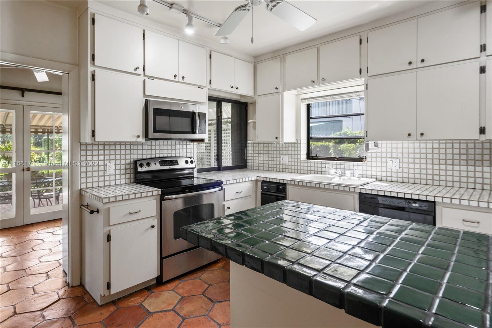 Classic, elegant Bermuda colonial on the Riviera golf course, custom built for original owner in 1981. Large foyer entry, 2 light filled courtyards & direct view through to the golf course. Formal living rm with fireplace & fam rm with built in bar cabinetry open with wall of French doors to a covered outdoor terrace, spacious formal din rm opens to courtyard, allowing integration with living areas al fresco and easy flow for entertaining. Magnificent principal suite up w/balcony offers extensive vistas, sep office, huge closet area & large bath. Another BR suite up and one guest BR suite down. Roof new in 2016. Live in as-is or update as desired. Two attached 1-car garages. May be possible to easily reconfigure home to a 4/4.