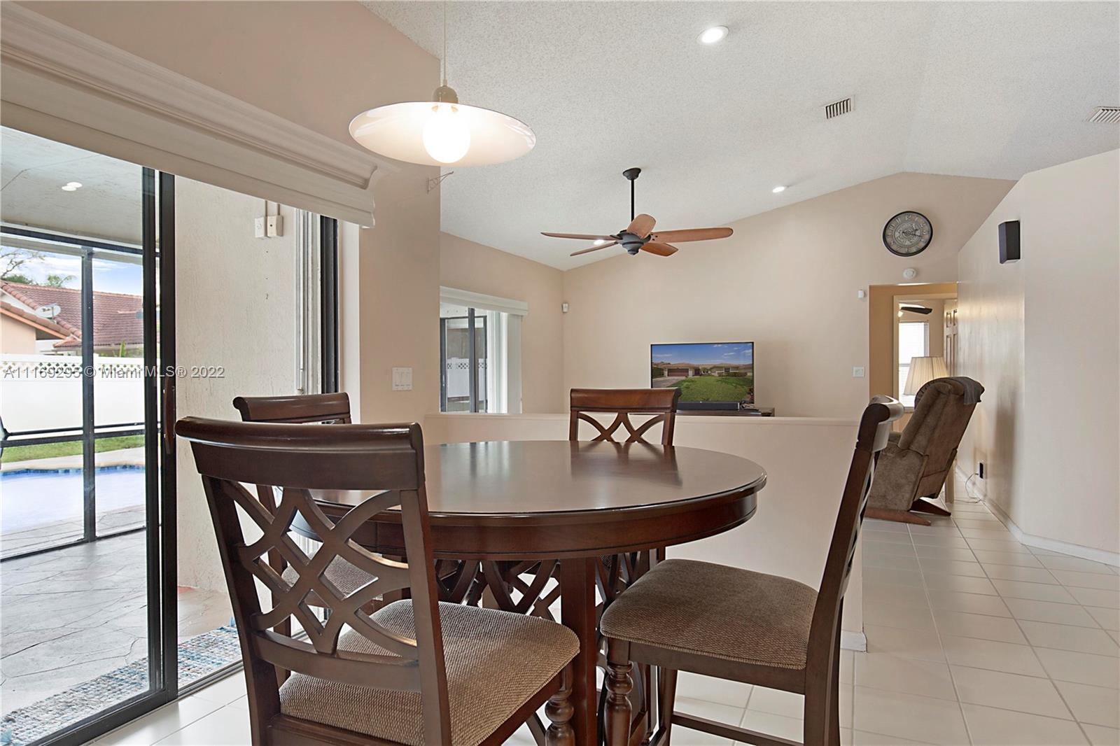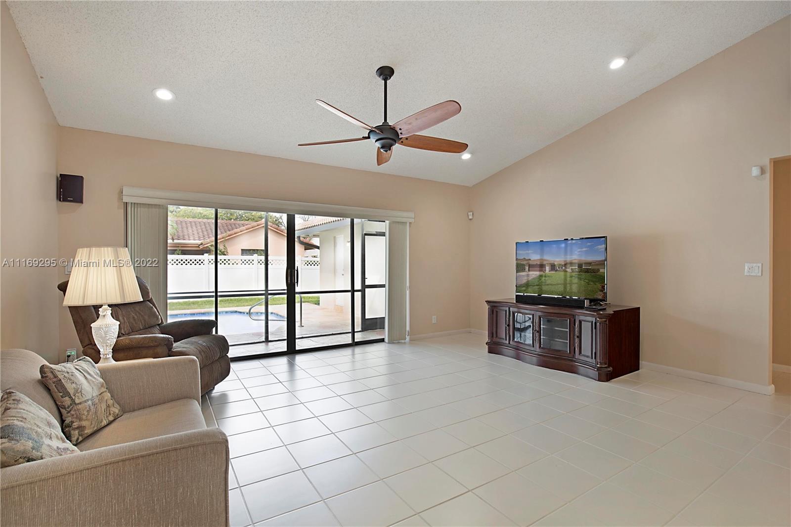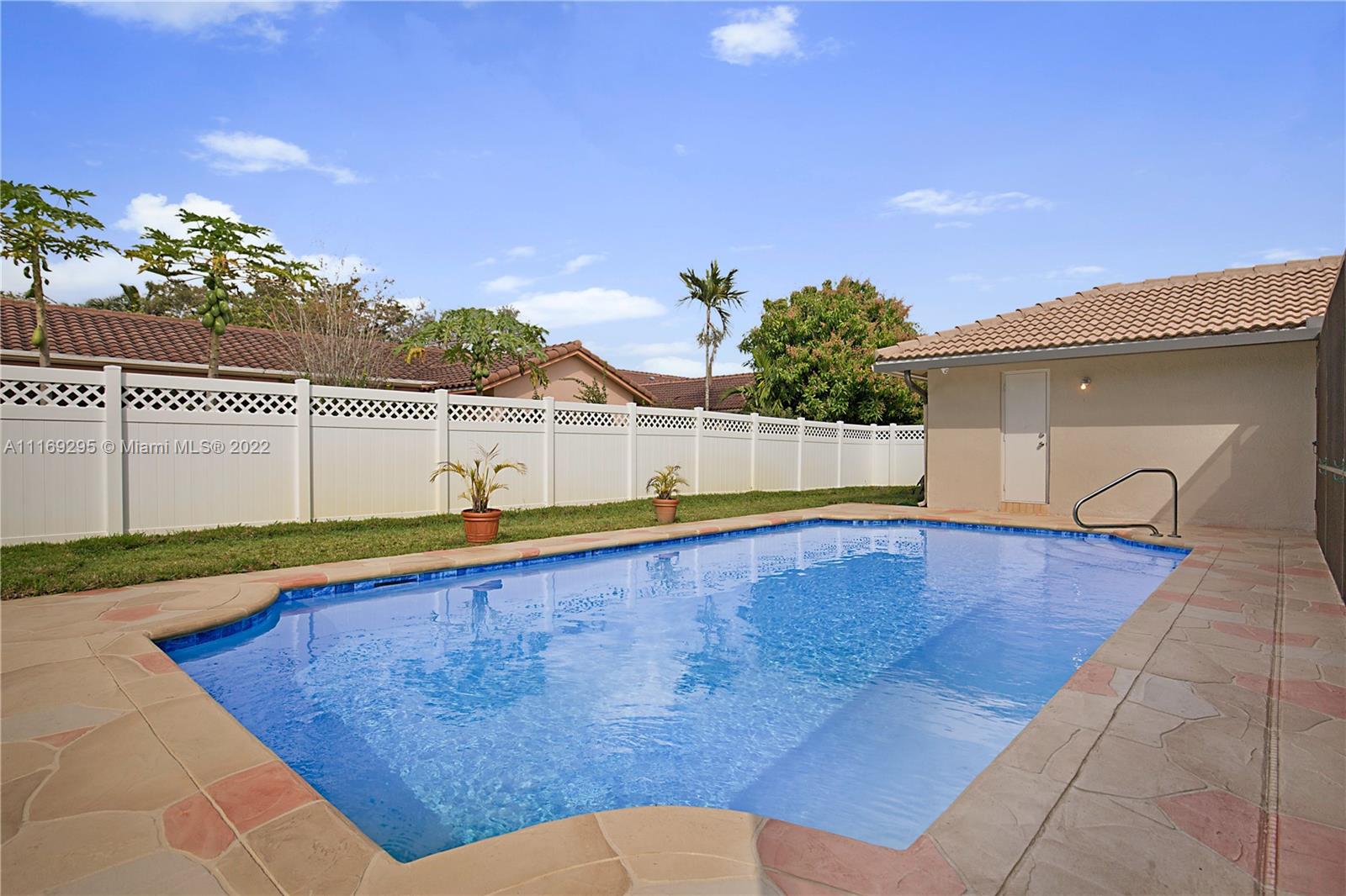 Impeccable 4 bedrooms 2 bathroom pool home situated on a large lot w/ privacy fence. Long paver driveway leads you to the entryway that is nicely landscaped. Once you enter through the front doors your greeted by the pool views, vaulted ceiling, and natural lighting. Formal Living & dining rooms. Large kitchen w/ newer appliances overlooks the breakfast nook & family room. The back of the home is lined w/ sliders overlooking the private pool deck. Large bedrooms w/ wood-like flooring. Owner's suite features dual walk-in closets and cabana bath that leads to the pool. Newer roof. Impact Glass & Accordion Shutters. Newer AC. Screened lanai. Wired for a generator. Recently painted interior & exterior. Recessed lighting. Great location. Walkable to downtown Coral Springs & much more!
