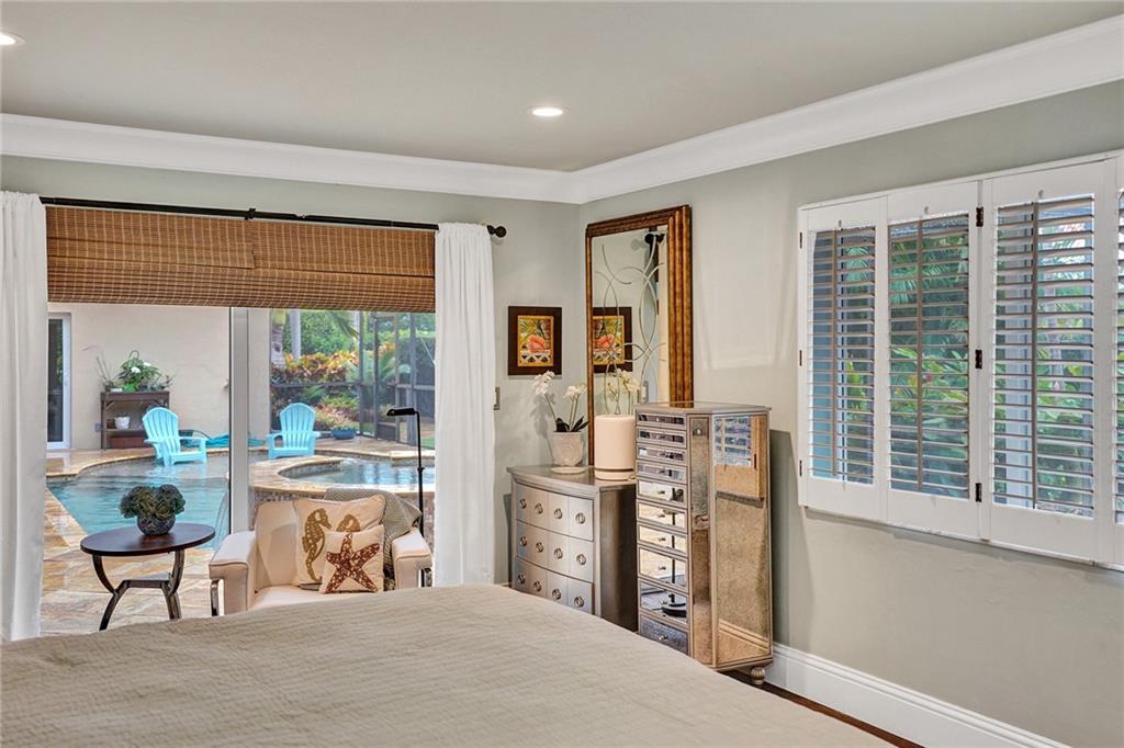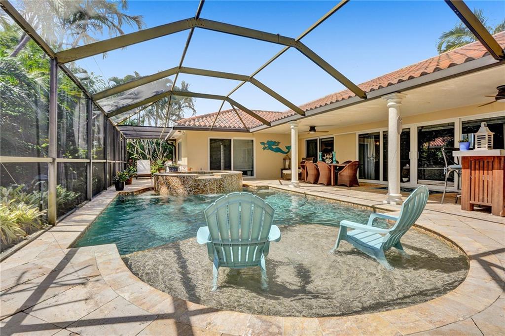 Spectacular 4 bedroom plus office 3 bath home nestled on a corner lot in Coral Ridge Country Club. Stunning backyard oasis with saltwater pool and spa surrounded by lush landscaping. Impact windows and doors. Spacious living and family rooms. Kitchen features wood cabinetry, stainless steel appliances and ample cabinetry. First floor primary suite with walk-in closet & pool views. Beautiful wood staircase with wrought iron detail leads upstairs to 2 bedrooms & bath. Interior laundry room and storage.