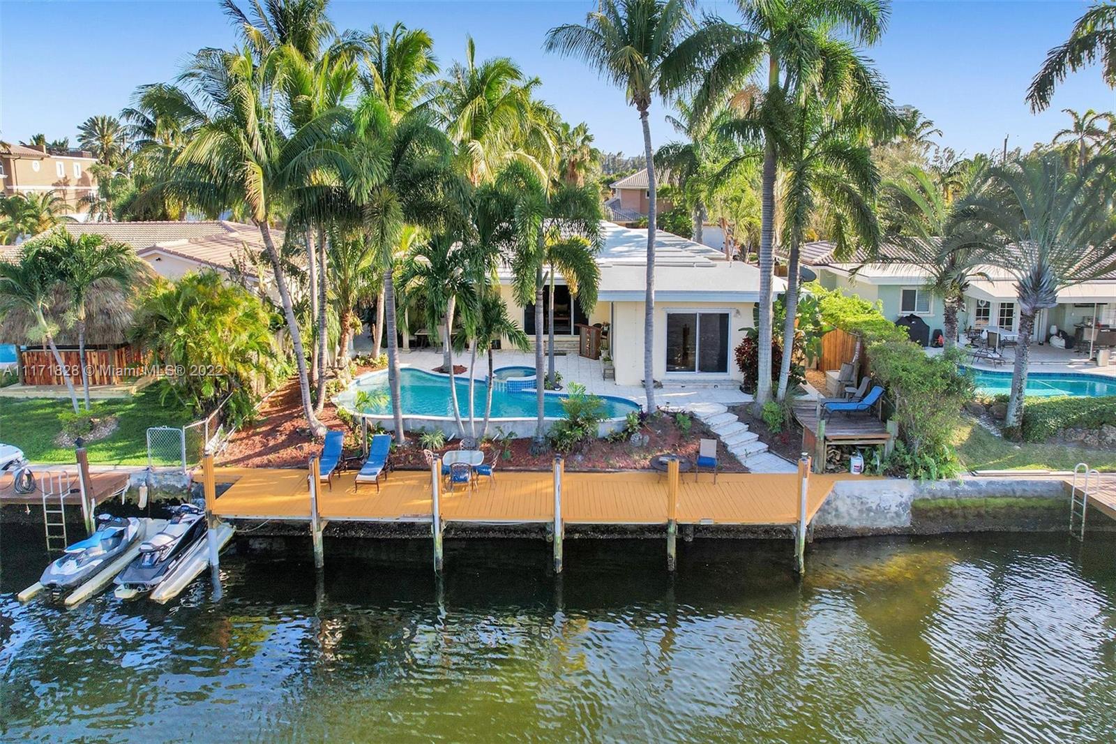 DEEPWATER BOATER'S DREAM! Ideally located just 6 homes from Intracoastal Waterway in Pompano Shores. 55ft dock on wider canal with 70ft of waterfrontage. Newly surfaced salt system pool/spa surrounded by beautiful landscaping and palm trees, a true TROPICAL PARADISE! Very bright and spacious home. Split floor plan with ample master bedroom offering 2 sliders overlooking pool and water, cedar closets and plantation shutters. Open kitchen with stainless steel appliances. Separate laundry area and 2 car garage. Lots of closet space. 2 A/C units. Impact windows and hurricane rated garage door. Walking distance to shopping, restaurants, schools, places of worship and more! Must be seen.
