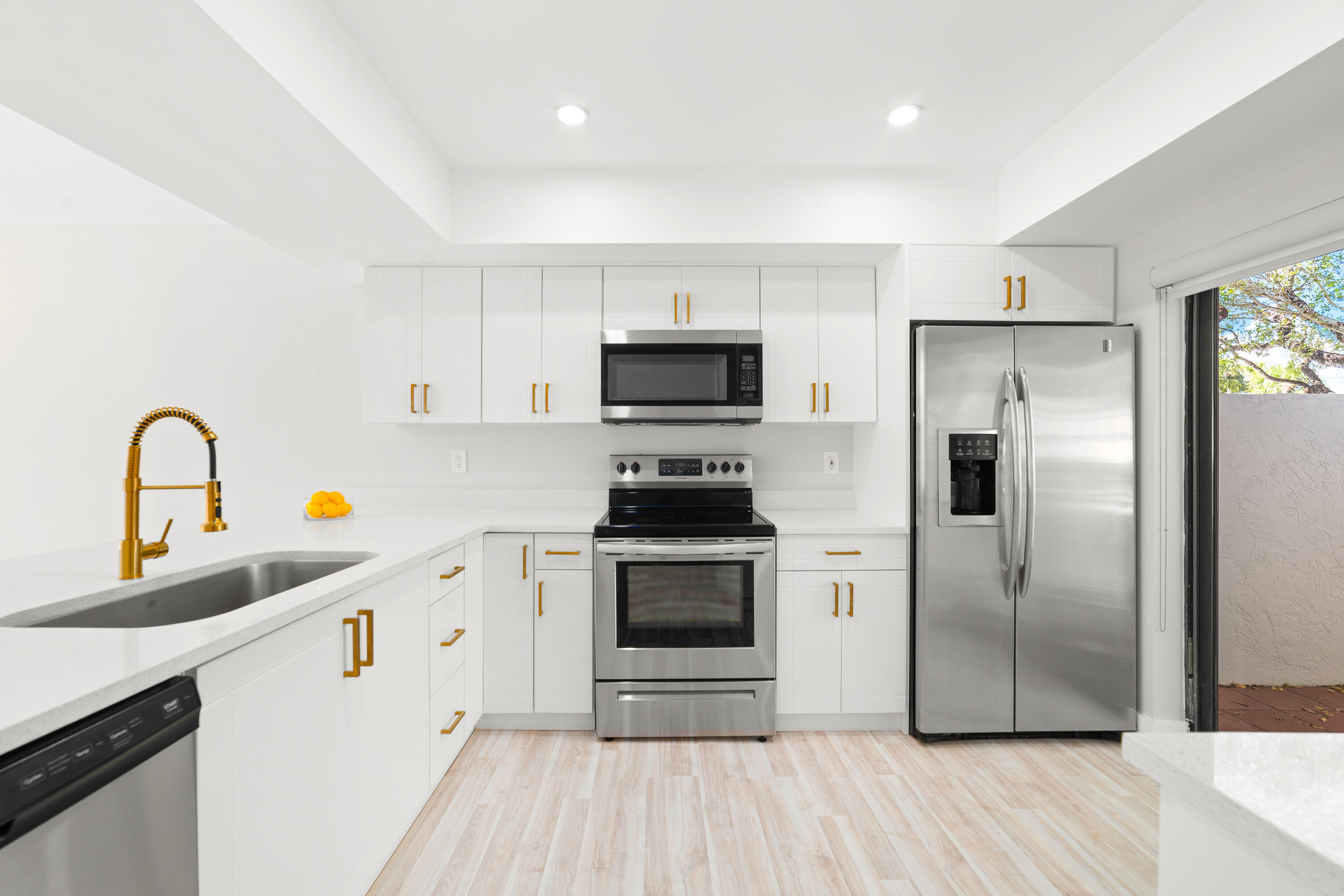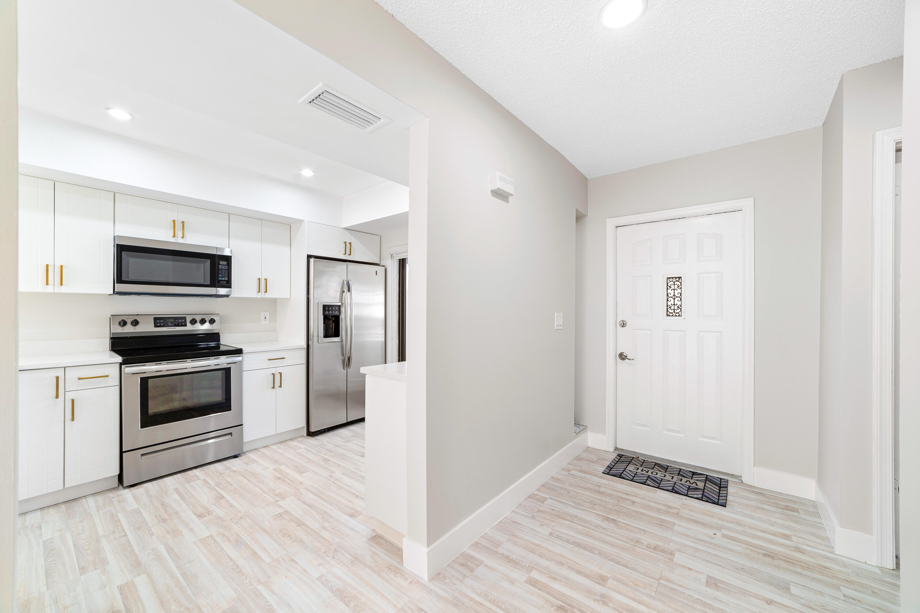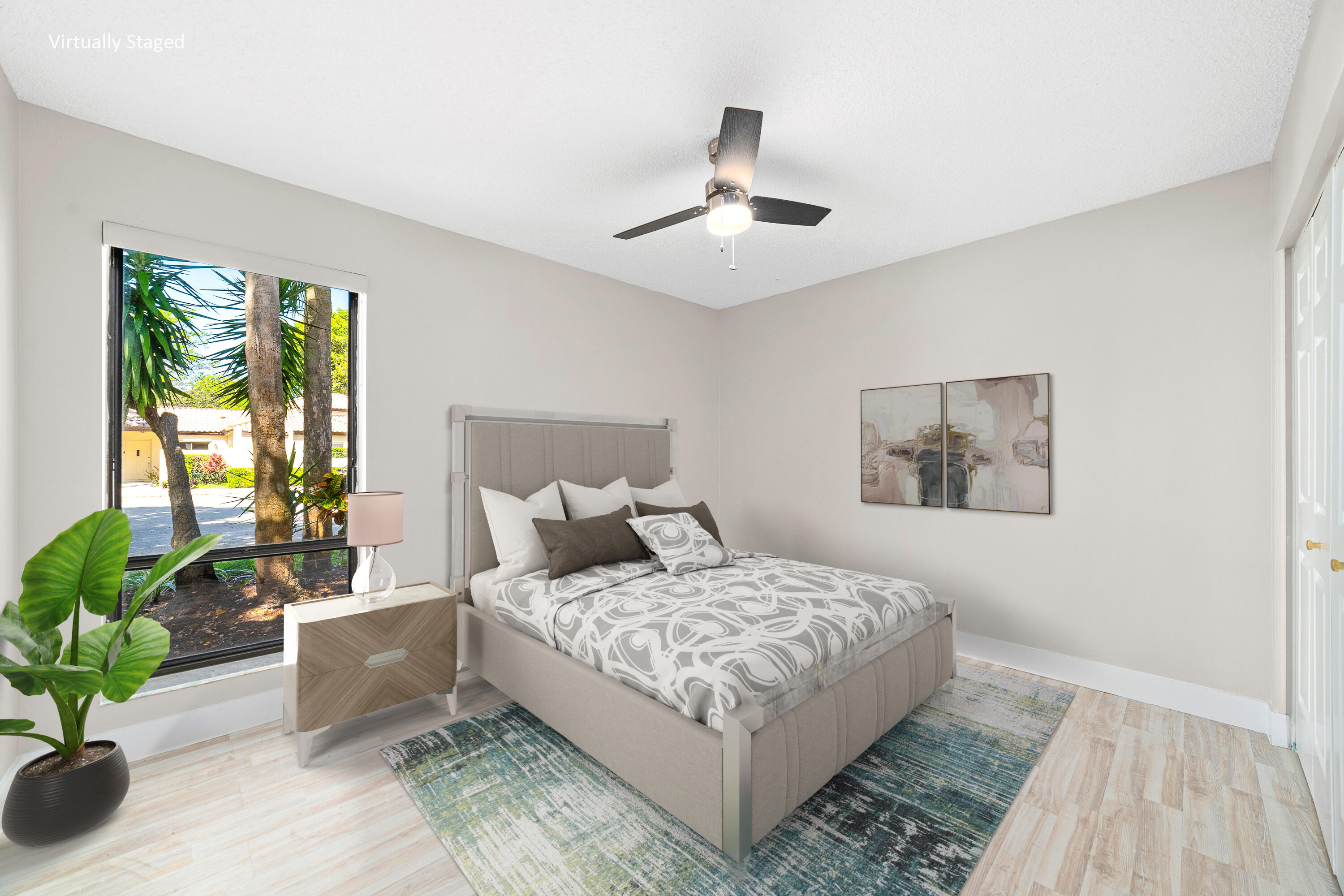 Gorgeous Villa in Windwood! Professionally designed from top to bottom w/ high-end materials & finishes. Open kitchen concept features white cabinetry, quartz countertops & new stainless-steel appliances. New Vinyl flooring with 5-inch baseboards throughout. Master Suite is designed w/ a frosted-glass barn door, gold hardware, custom lighting, and a beautiful shower. Upgraded electrical includes ''High-Hat'' lighting w/ ''night-time'' capability. Concrete back patio great for entertaining. Front patio can also be used for lounge seating. Close proximity to Beach, restaurants, and FAU. A gated community w/ 24/7 security, two heated pools, 20-acre lake for fishing/boating, a Zen forest for trailing, etc. Small pets only.