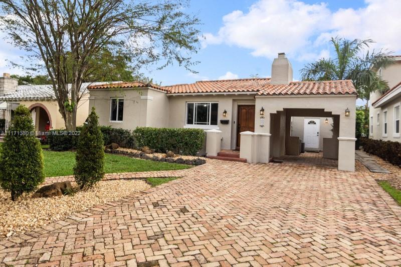 Warm & wonderful light-filled 4/3 pool home is the perfect union of charming Art Deco character & thoughtful contemporary spaces to enhance today’s ideal lifestyle. Hardwood flrs, open beamed ceilings & fireplace accent formal liv rm entry. Inviting formal din rm w/ pass-thru bar & wine refrig flow seamlessly to a cozy open fam rm & bright, beautiful, updated eat-in kitchen w/ volume ceilings, & counter island. Private oasis alfresco will allure you to the sunny pool, relaxing entertaining areas & covered summer kitchen. Split BR plan presents principal BR suite + sumptuous bath, 1/1 office/“casita". Uniquely large & practical indoor laundry/utility/pantry off kitchen. Partial impact glass, windstorm protection, updated plumbing, electrical. Attached carport and 4 add'l parking spaces.
