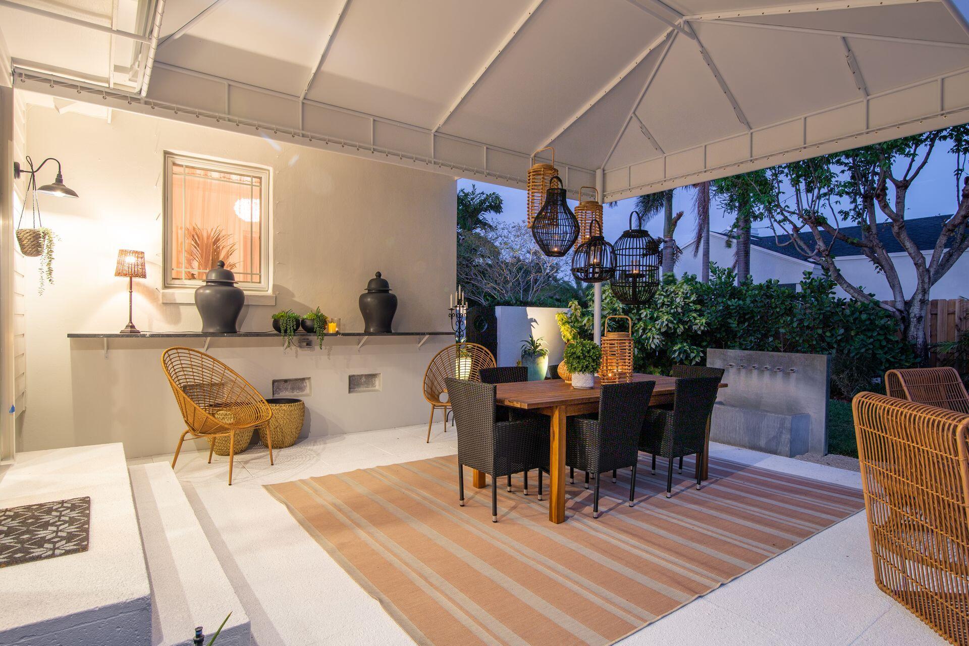 New price reduction, great value! Don't miss out on this gorgeous property. Beautiful renovation and decorator's showcase. Central ''SoSo'' location. Large elevated corner lot, newly installed irrigation system with rain gauge, professional landscaping, dramatic new exterior lighting and remodeled oversized pool. New roof and floors throughout, new grand loggia, new designer kitchen with black steel appliances, additional wine fridge, dramatic quartz counters, dining island, plenty of cabinetry, pantry and storage. New luxurious bathrooms, new dimmable light fixtures throughout, new electrical panel, security system and WiFi. All new exterior and interior paint. Restored cypress beamed ceiling and high-volume throughout. All original art as well as most of furniture available separately.