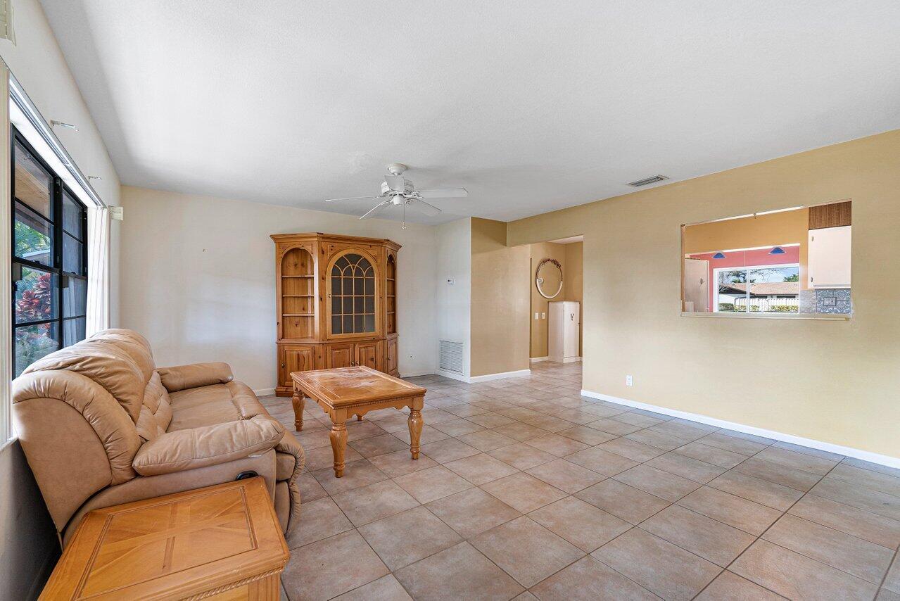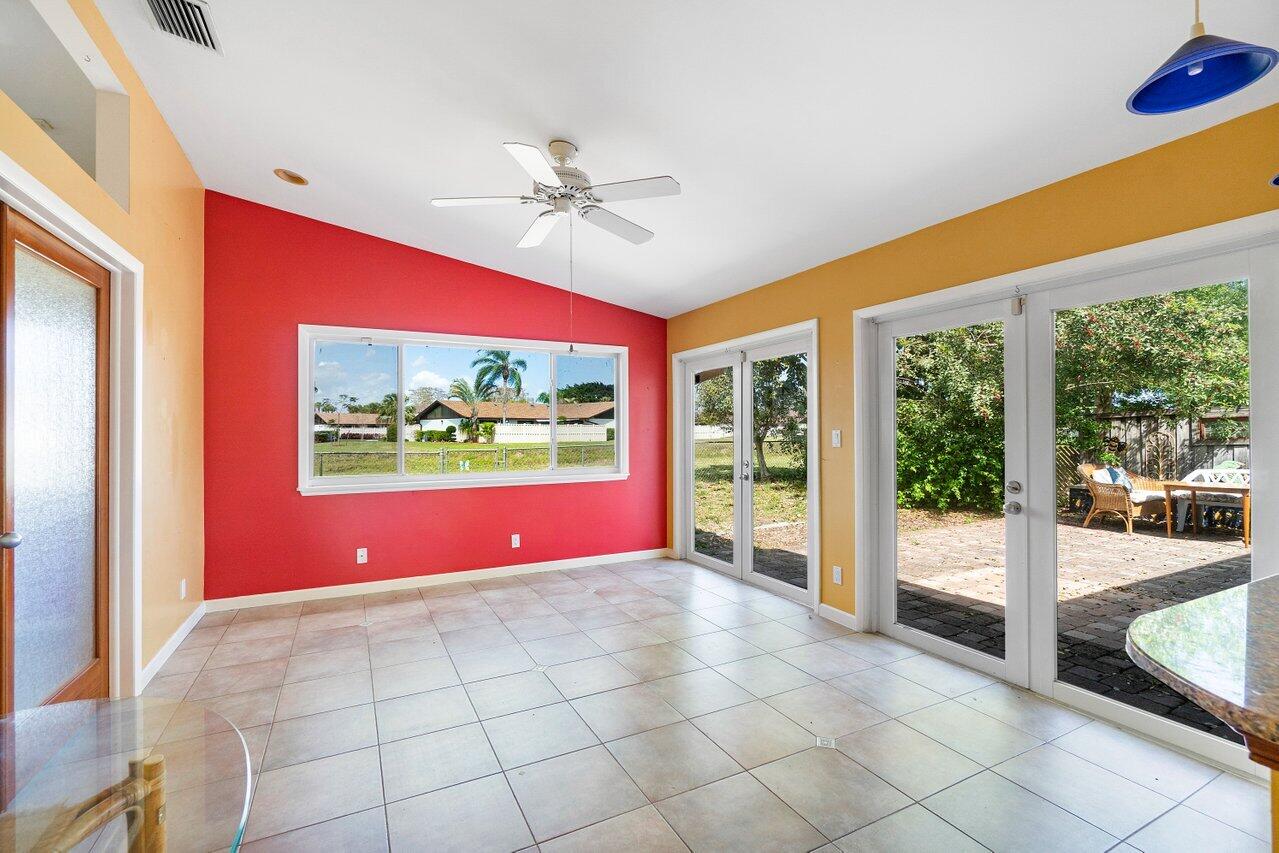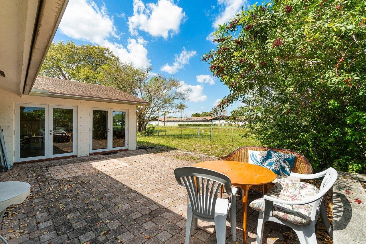 Located in Central Boca. Bright, open concept layout two large living rooms. double french doors leading out to large brick paver patio and fenced-in backyard. Great for entertaining. Split Floor plan. ALL TILE except 3rd bedroom. Wheelchair accessible doorways. Complete hurricane panels, roof and new garage door windstorm approved. The garage has been converted however there is still about 8' of useable garage space. New A/C in 2013. New Roof in 2006. HOA fees only $40 per month. Top-rated schools! Walking distance to Whispering Pines Elementary. Don't miss this one! Investor + Pet Friendly + Room for Pool.