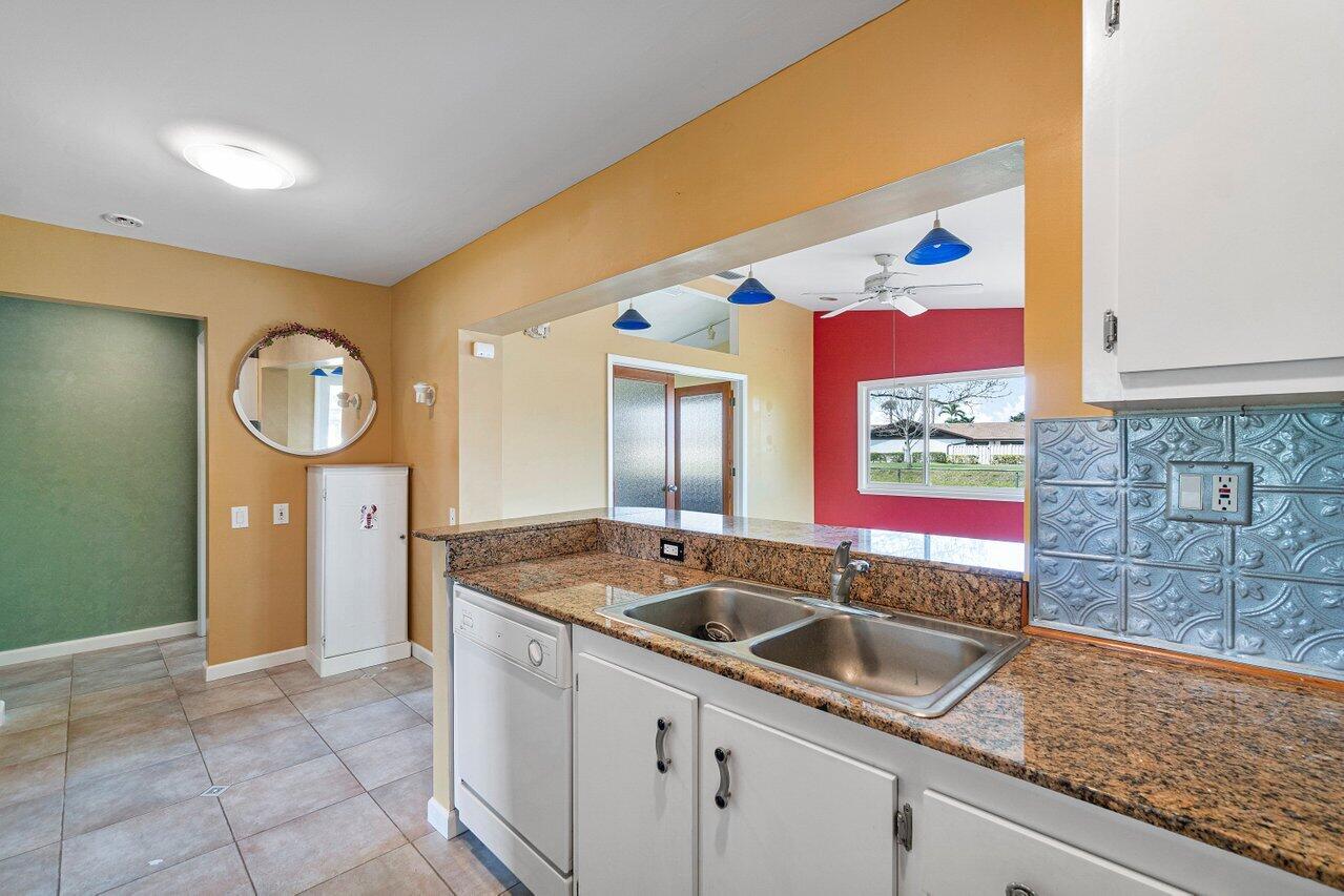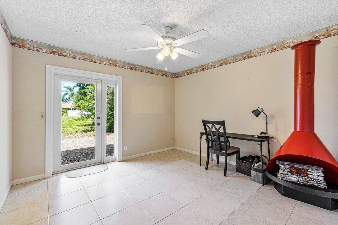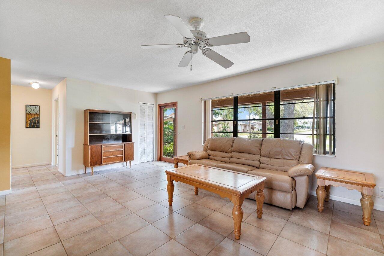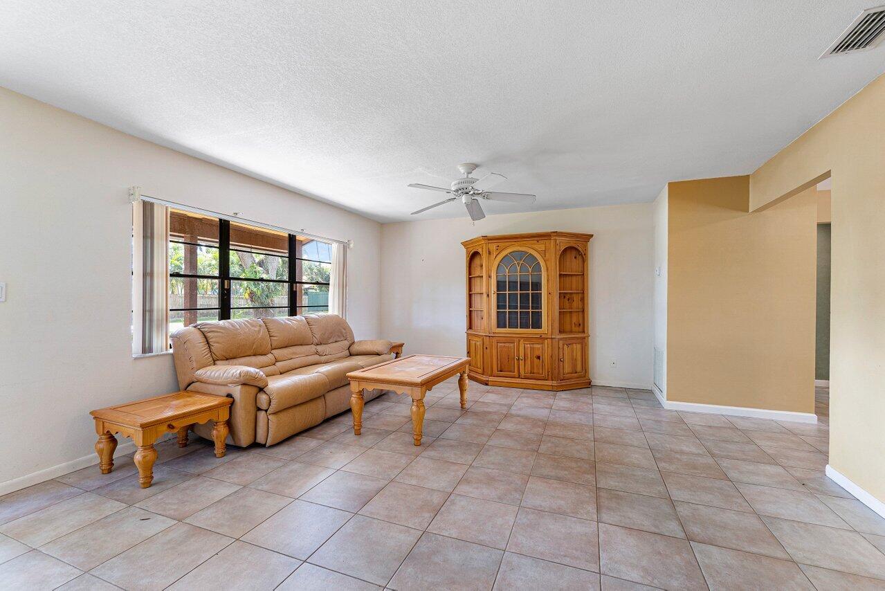 Located in Central Boca. Bright, open concept layout two large living rooms. double french doors leading out to large brick paver patio and fenced-in backyard. Great for entertaining. Split Floor plan. ALL TILE except 3rd bedroom. Wheelchair accessible doorways. Complete hurricane panels, roof and new garage door windstorm approved. The garage has been converted however there is still about 8' of useable garage space. New A/C in 2013. New Roof in 2006. HOA fees only $40 per month. Top-rated schools! Walking distance to Whispering Pines Elementary. Don't miss this one! Investor + Pet Friendly + Room for Pool.