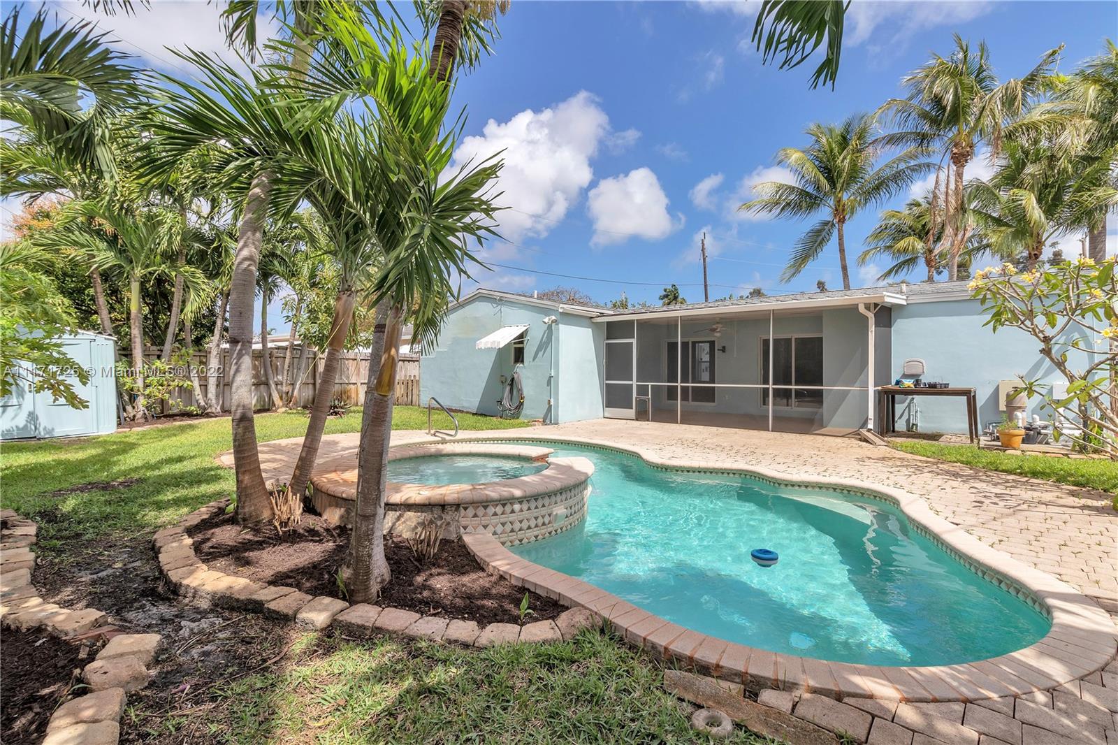 Enjoy Florida living in Paradise! 3 bedroom and 2 bath pool & spa singe family home. Huge backyard! This home has freshly painted ceilings and walls. Move in ready! Huge walk-in closets. Newer roof 2019. Updated electrical panel 2018, Impact windows and sliding glass doors throughout. Remodeled master bathroom, and blinds on every window! Laundry room with lots of shelves and storage. Screened in large patio with a fully fenced yard and beautiful pool with a spa surrounded by different kinds of fruit trees and palm trees. Home is alarm ready. There is also a shed in the backyard that is perfect for bikes, tools, & other storage. Spacious front porch as well as a circular driveway. Minutes away from TY park, YMCA, shopping, banks, schools, and nearby major cities. No HOA! MUST SEE!