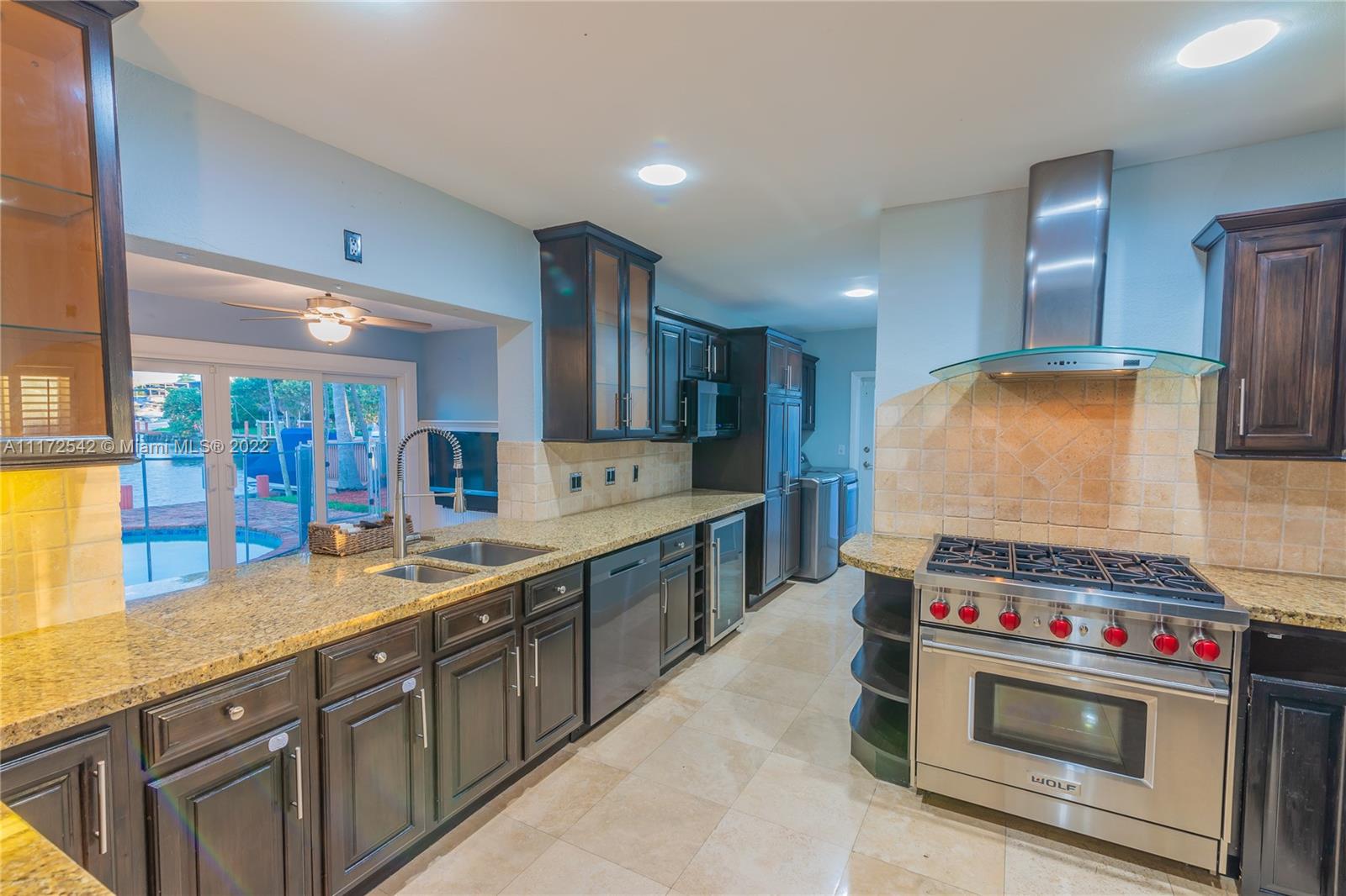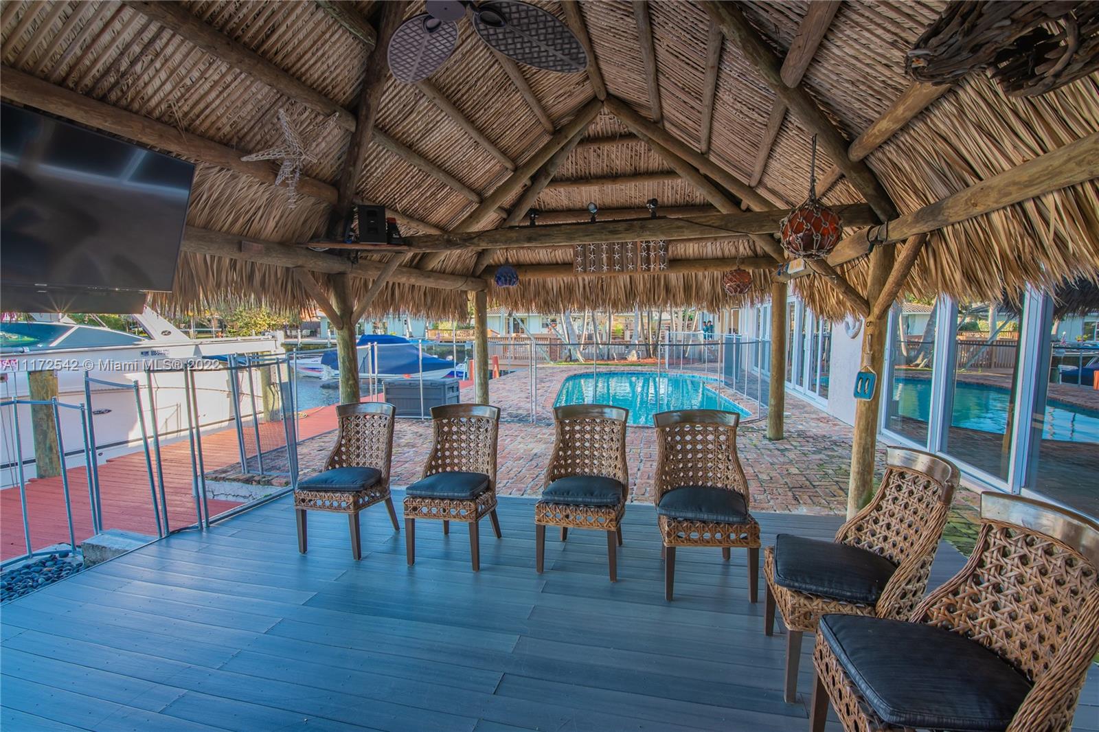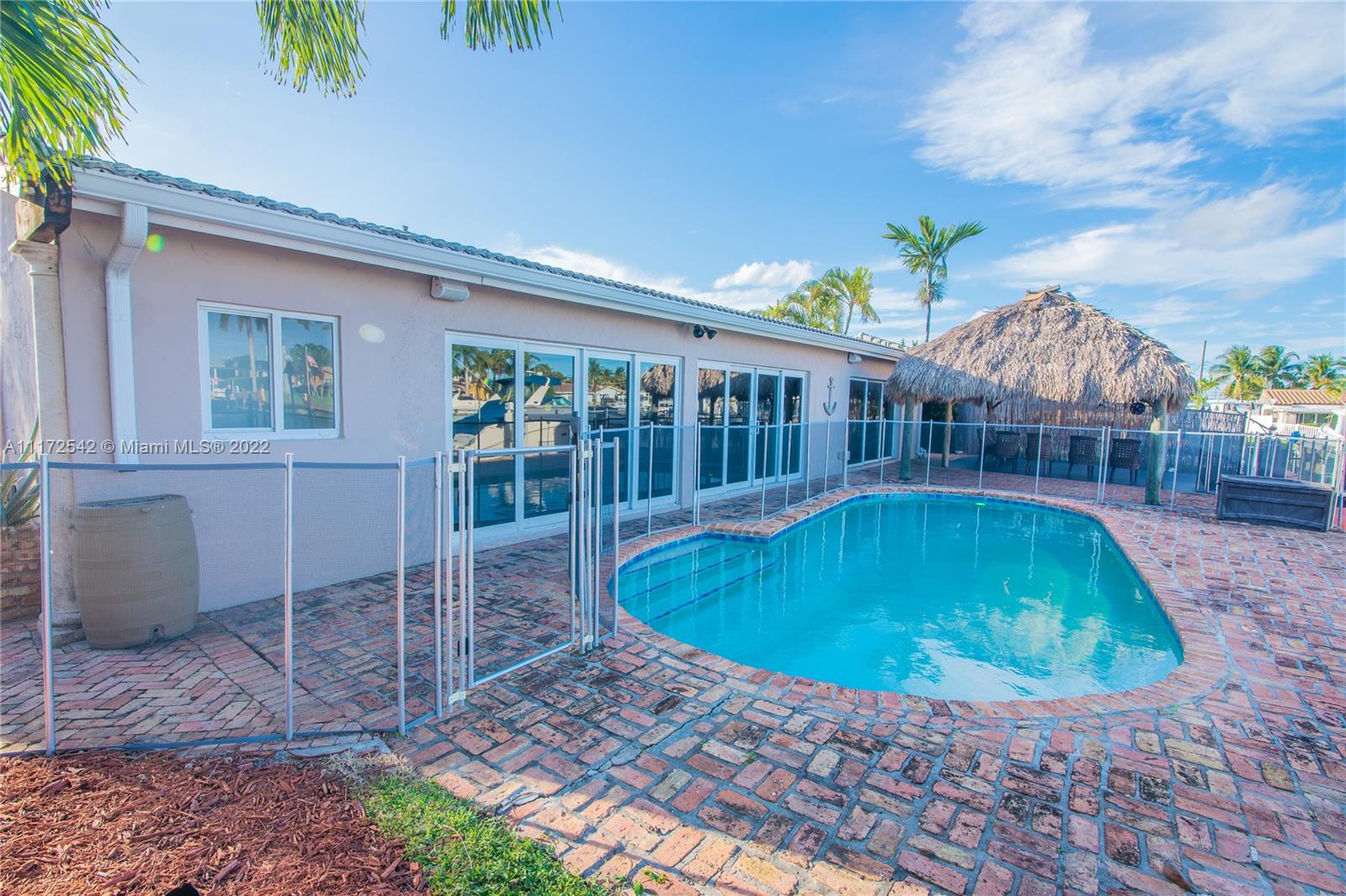 MUST SEE! 3 bedroom 3 bath home, 75 feet of waterfront with ocean access. Only one fixed bridge. Impact windows. Updated kitchen with top of the line appliances. Owner Suite bathroom is like no other! Over sized shower with Spa shower heads. Walk in closet in Owner Suite and 2nd bedroom. Air conditioned 1 1/2 car garage. Great outdoor living with water view and over sized Tiki Hut in the pool area.