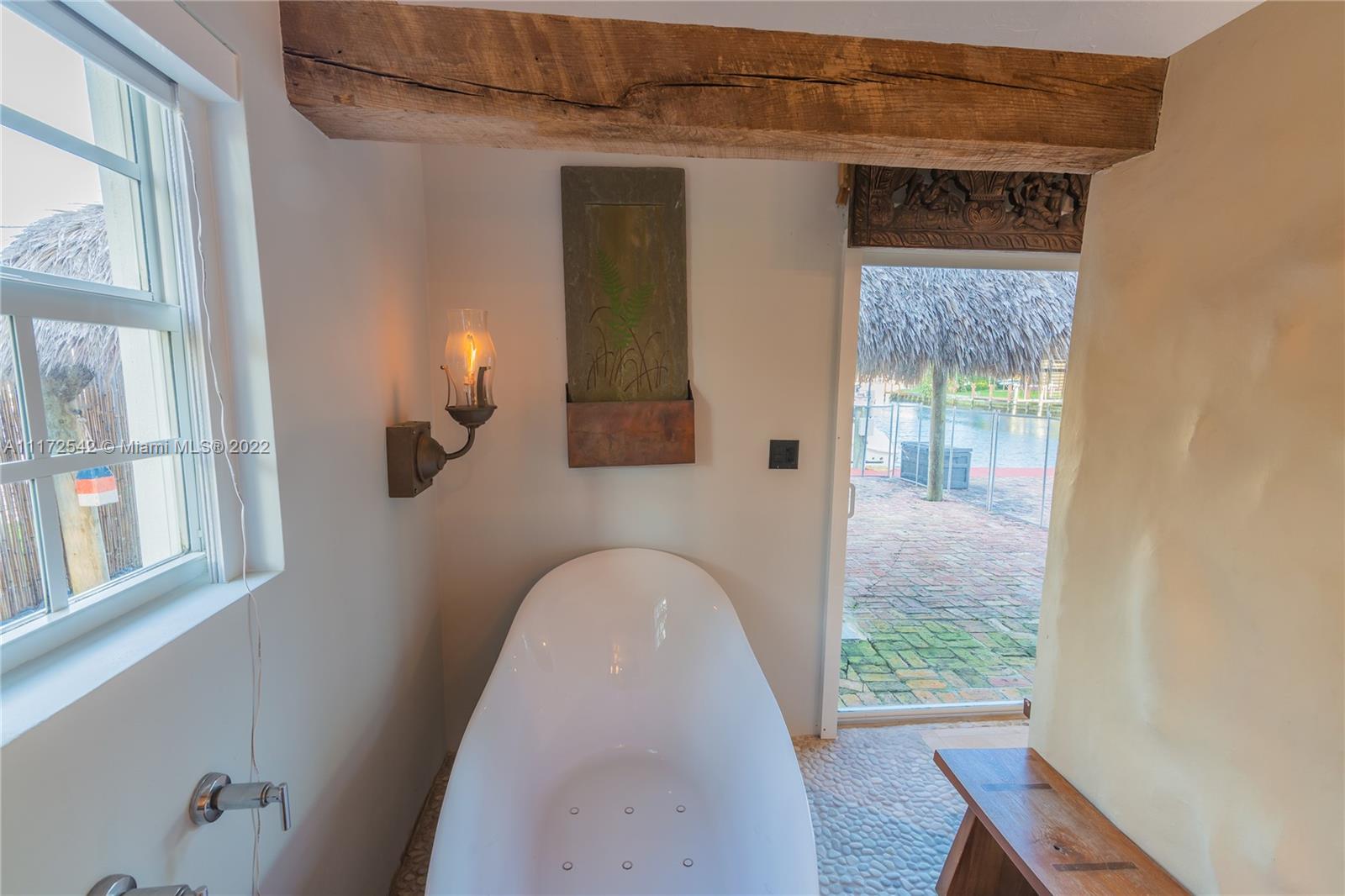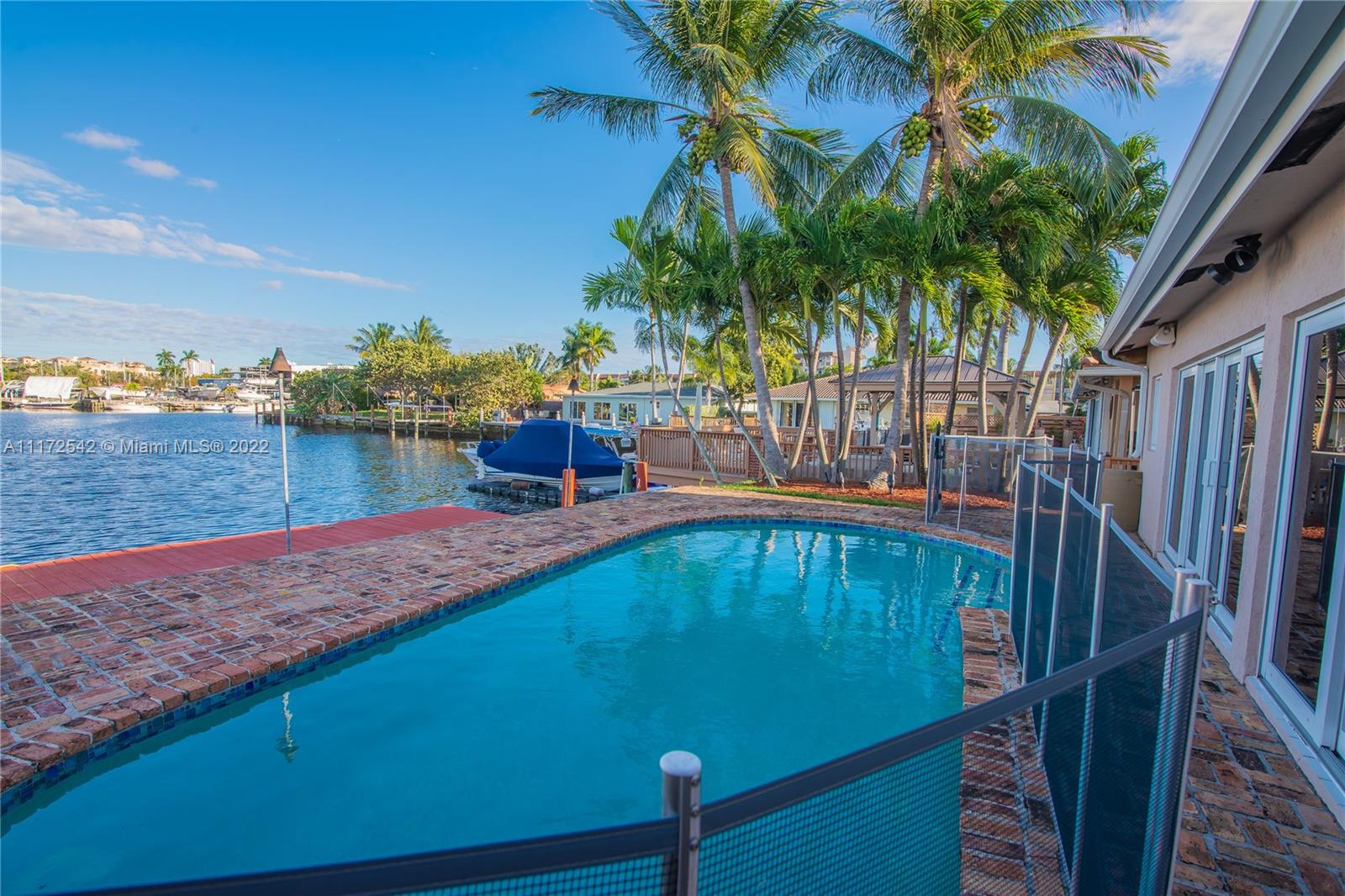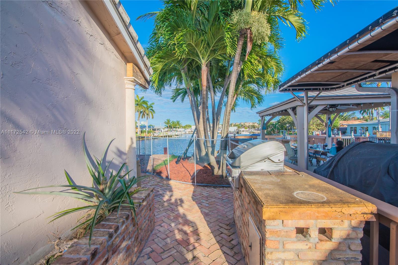 MUST SEE! 3 bedroom 3 bath home, 75 feet of waterfront with ocean access. Only one fixed bridge. Impact windows. Updated kitchen with top of the line appliances. Owner Suite bathroom is like no other! Over sized shower with Spa shower heads. Walk in closet in Owner Suite and 2nd bedroom. Air conditioned 1 1/2 car garage. Great outdoor living with water view and over sized Tiki Hut in the pool area.