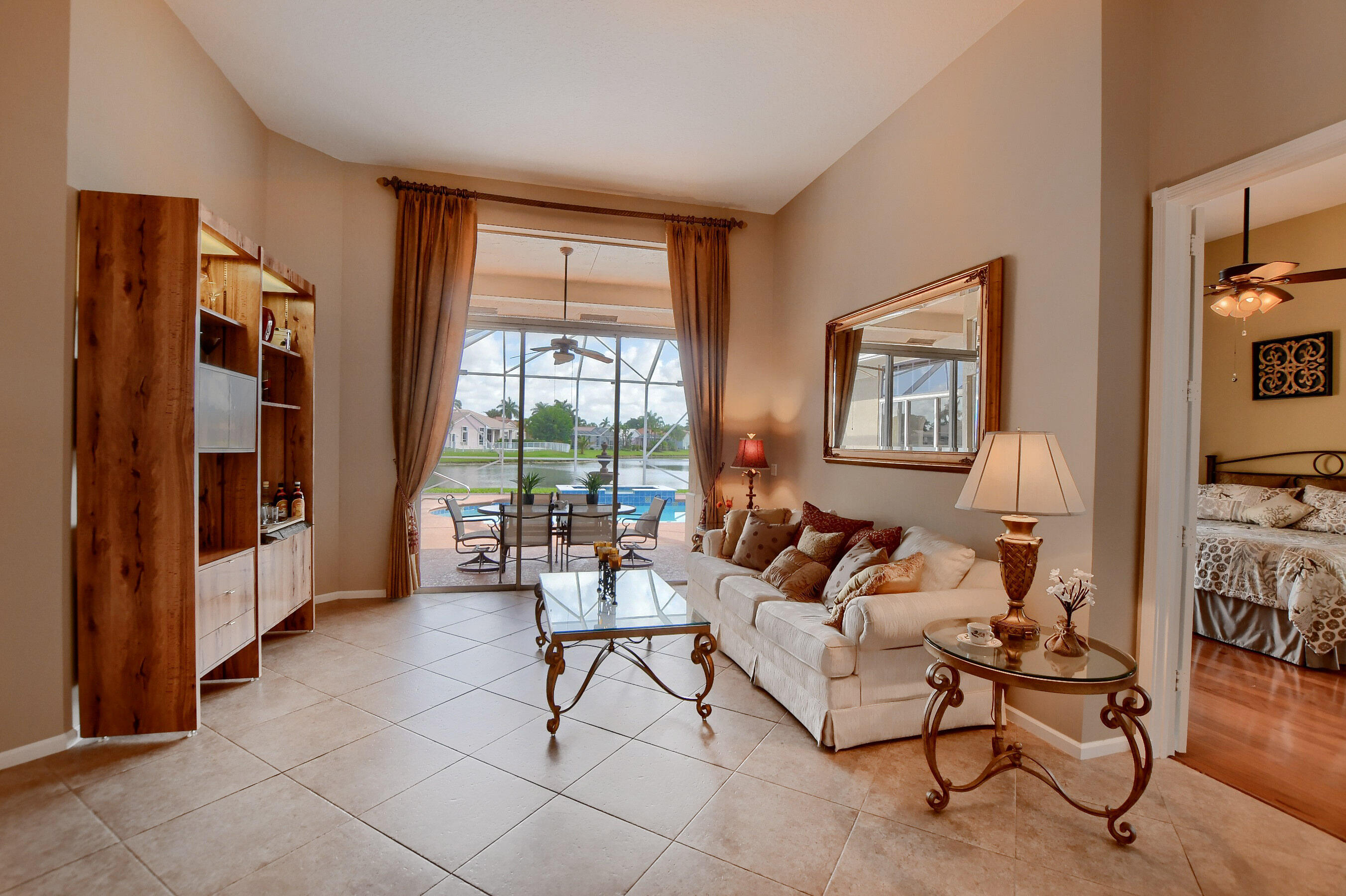 As you enter this desirable 5 bedroom Grand Cayman model, enjoy the wide open feel and beautiful views of the pool and lake with water views from the living room, kitchen, master bedroom and family room . The large screened lanai is situated on one of the best lake lots in Boca Isles with a long lake view, Recently painted inside and out * Newer roof and A/C's. Many upgrades throughout.