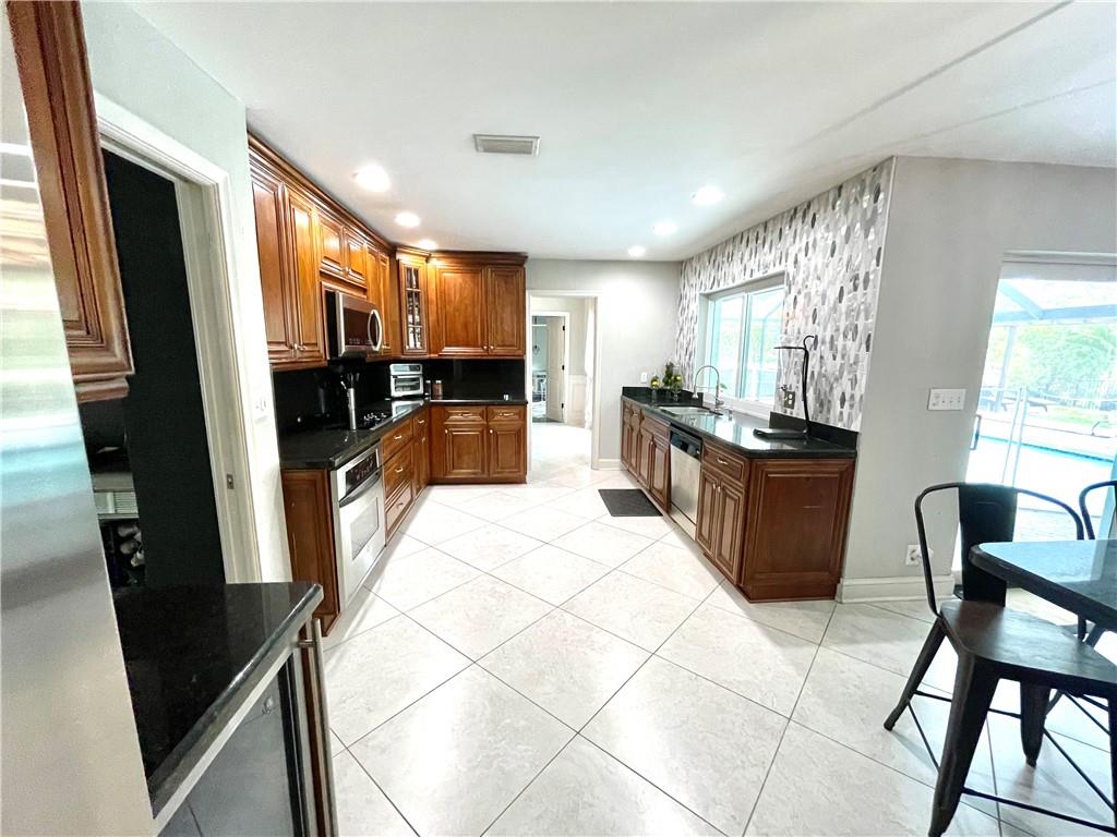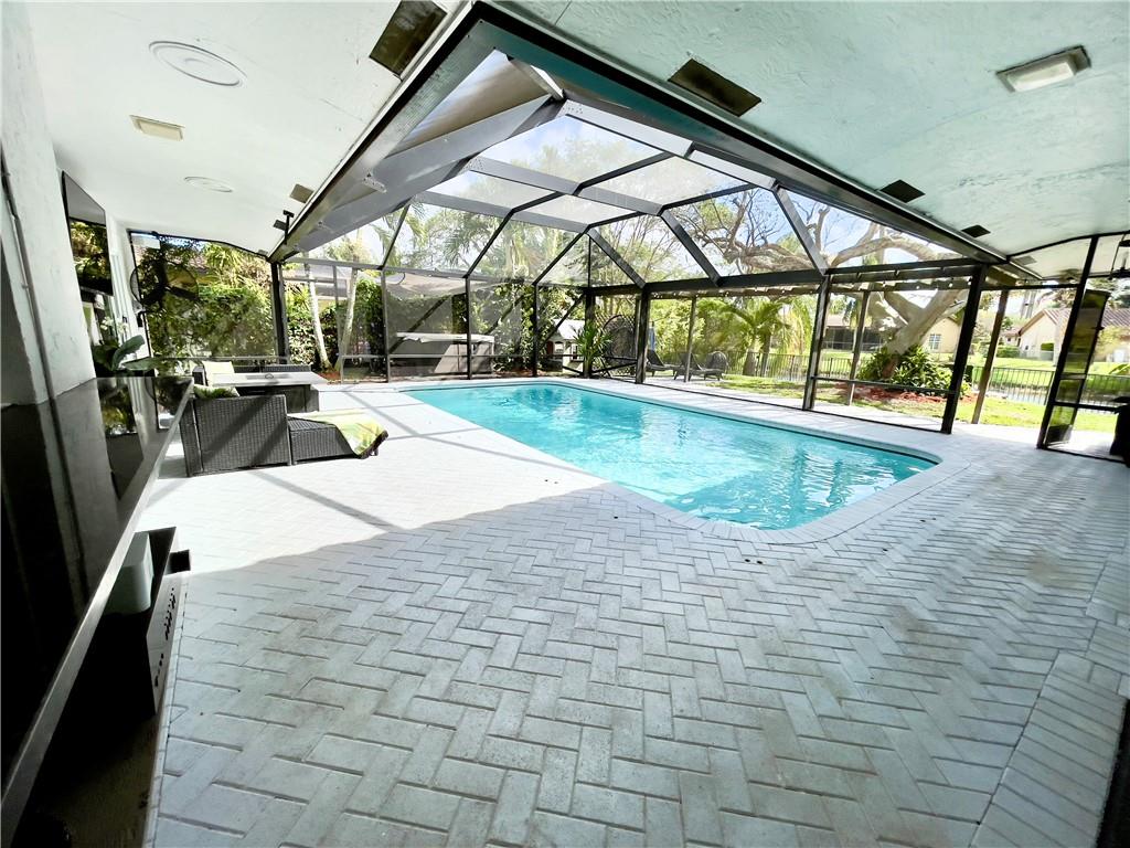 Updated 4/2.5 with split floor plan. Spacious backyard setup for entertaining. Don't miss out! 2018 NEW ROOF, 2019 NEW IMPACT GLASS WINDOWS AND SLIDING DOOR, 2022 NEW A/C 5 TON, 2022 Sprinkler Pump. UPDATED kitchen, bathrooms, as well as 2017 tile and laminate floors installed! Screened in salt pool, hot tub, outdoor kitchen. Fenced in backyard with wide canal views (great for fishing). Located within 5 minutes of Publix, dining and more. Family friendly neighborhood with multiple parks to walk to. NO HOA.