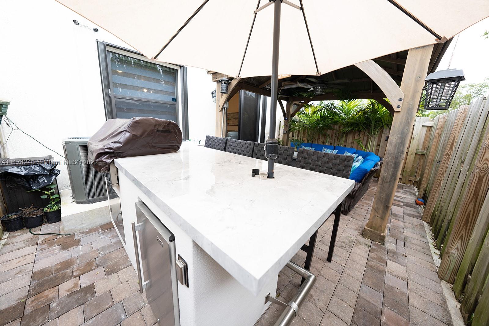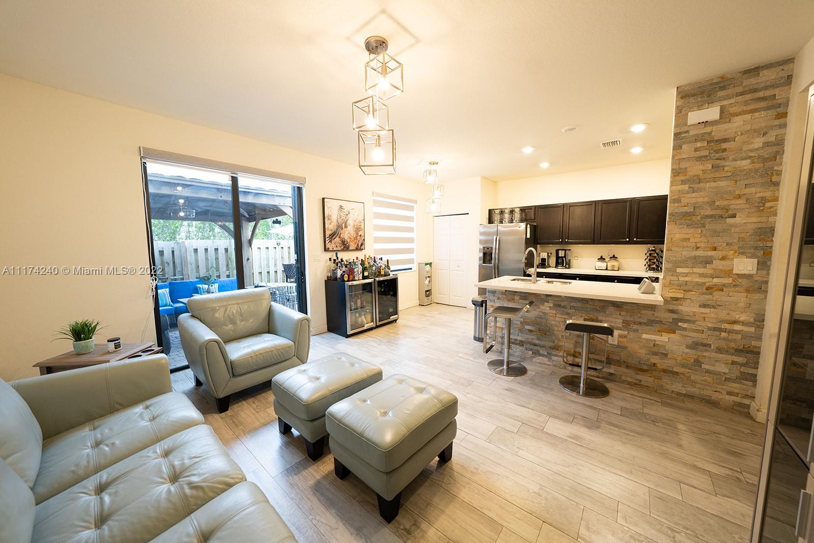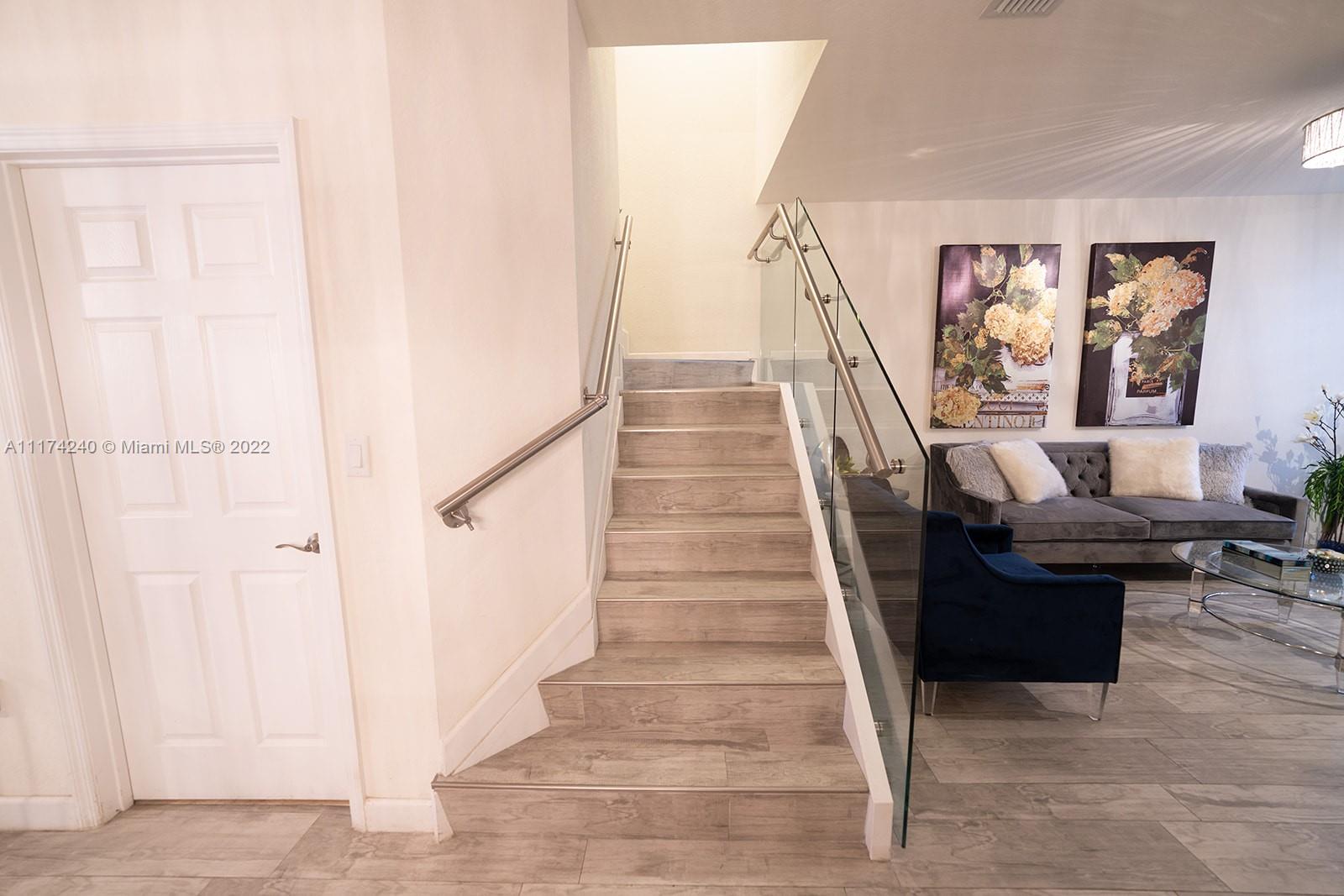 OPEN HOUSE WED 3/16 6-8PM THIS IS WHAT YOU HAVE BEEN WAITING FOR,SELLER HAS DONE IT ALL Porcelain floors in all common areas Waterproof acrylic laminate in all rooms, Master bedroom has expanded connected walk in grand closet with included closet furniture, Upgraded, kitchen, Premium ZEBRA shades through out. all downstairs shades are electric ,Backyard completely paved, Custom gazebo with electricity. Connected TV on powered tilt stand and fan with light included., Upgraded downstairs bathroom with stone wall, Custom glass staircase with porcelain steps, AC unit with UV light and auto shut off to prevent overspill, All lighting fixtures included,New Accordian shutters, Garage has ceiling storage shelving throughout, Alarm and camera systems,Custom BBQ Island is optional.CALL LISTING AGENT