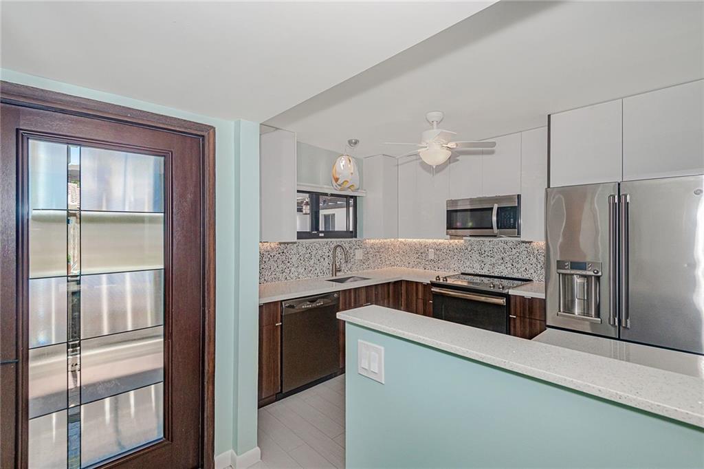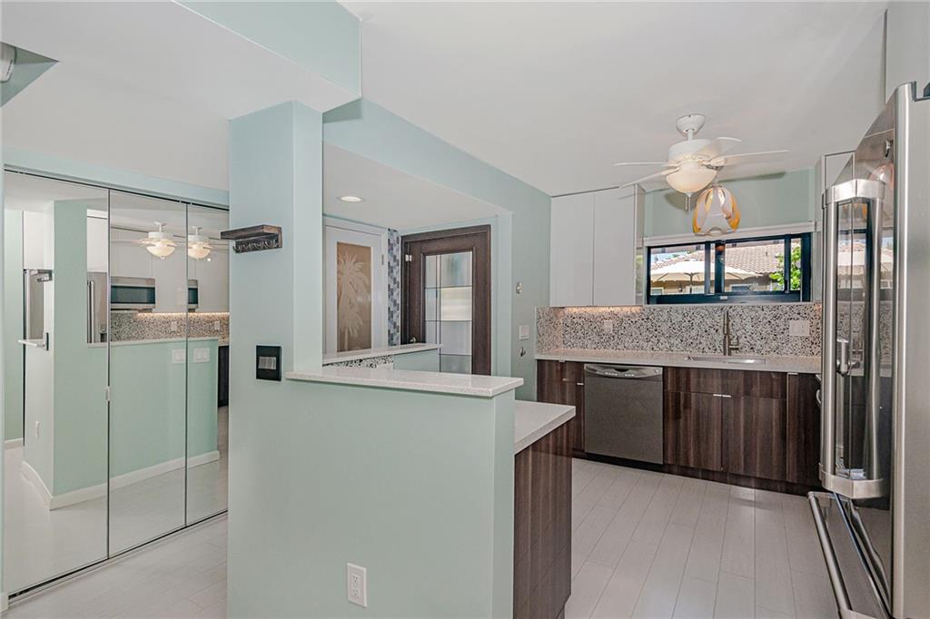 This 2 bedroom 2.5 bath beauty with impact windows/doors is near the beach. Bedrooms are upstairs. 7 units in charming complex. Pet policy, is 1 dog 20lbs max, or 2 cats permitted. Monthly $625. Condo fee includes Pool, Landscaping, water, sewer, trash, common areas, insurance. 2019 kitchen. Quartz countertops, newer appliances. Washer/ dryer 2019, French door Refridge, glass cooktop range, microwave and a dishwasher. Custom wet bar. 1st floor includes updated 1/2 bathroom, luxury vinyl plank floor. Upstairs updated baths include Perego extreme flooring, 2 bedrooms have Mohawk Revwood flooring. Private patio gate to driveway. Flat roof 2020. Call on this beauty today!
