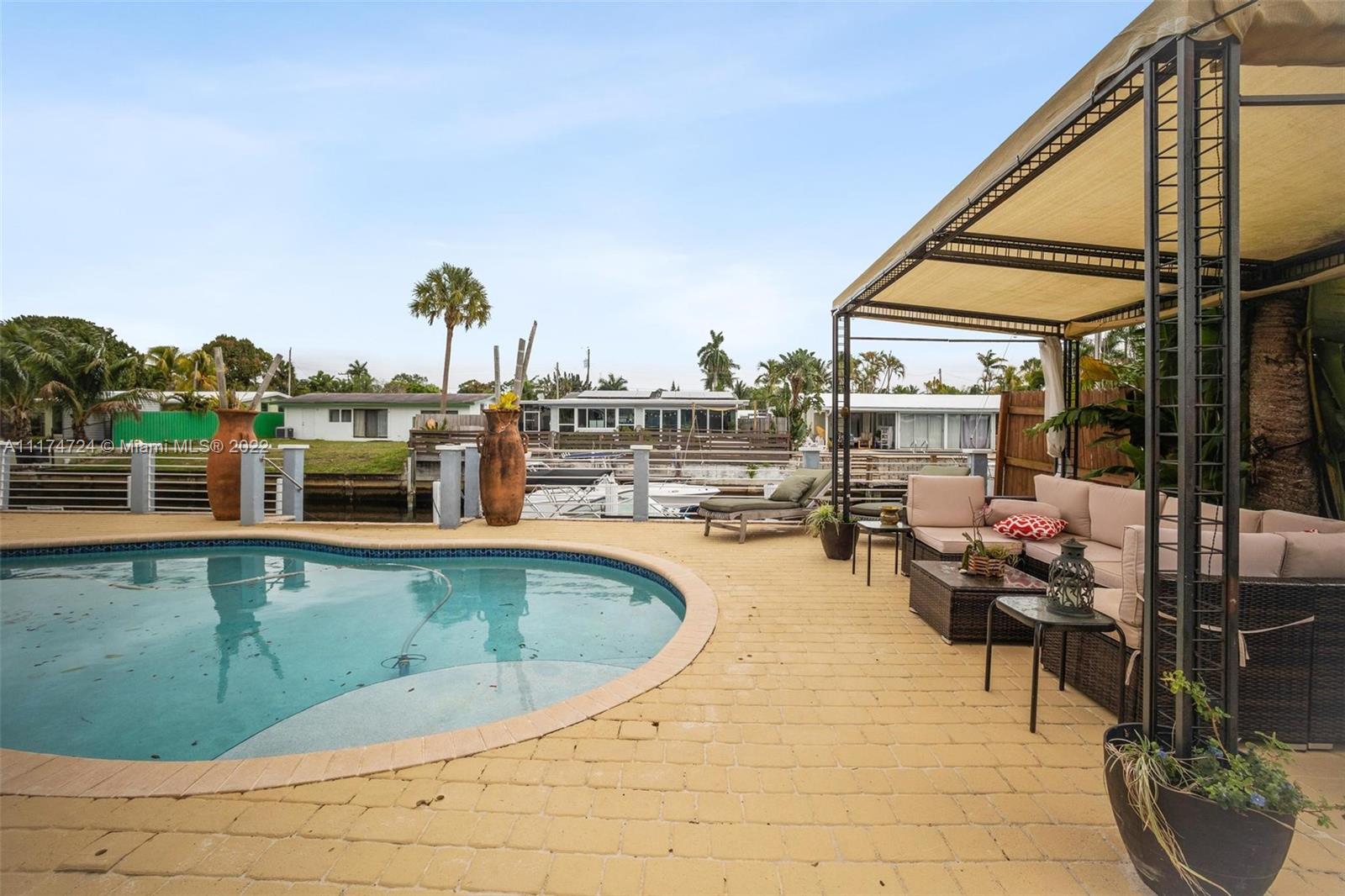 OCEAN ACCESS WITH NO FIXED BRIDGES, 65 FULL FEET OF WATERFRONT WITH WELL MAINTAINED SEAWALL AND DOCK WITH ELECTRICITY. ROOF IS WELL MAINTAINED AND NEWER. NEWER KITCHEN,CENTER ISLAND AND APPLIANCES, TILED FLOORS AND PLANTATION SHUTTERS. HOME RECENTLY TENTED WITH WARRANTY. FREE STANDING STORAGE/ WASHER DRYER FACILITY AND OFFICE/MAN CAVE WITH ELECTRICITY ARE EXTRA BLDGS FOR ENJOYMENT. TIKI OUTDOOR BAR/BARBEQUE AREA, COVERED SITTING AREA AROUND WELL MAINTAINED OPENED POOL AND PARTY AREA. MAJOR HIGHWAYS/SHOPPING/BEACHES AND GREAT RESTAURANTS CLOSE. (IN EXCELLANT CONDITION SEA RAY AMBERJACK 30 FT BOAT IS AVAILABLE FOR SALE AT A REASONABLE PRICE) FURNISHING ALSO AVAILABLE.
