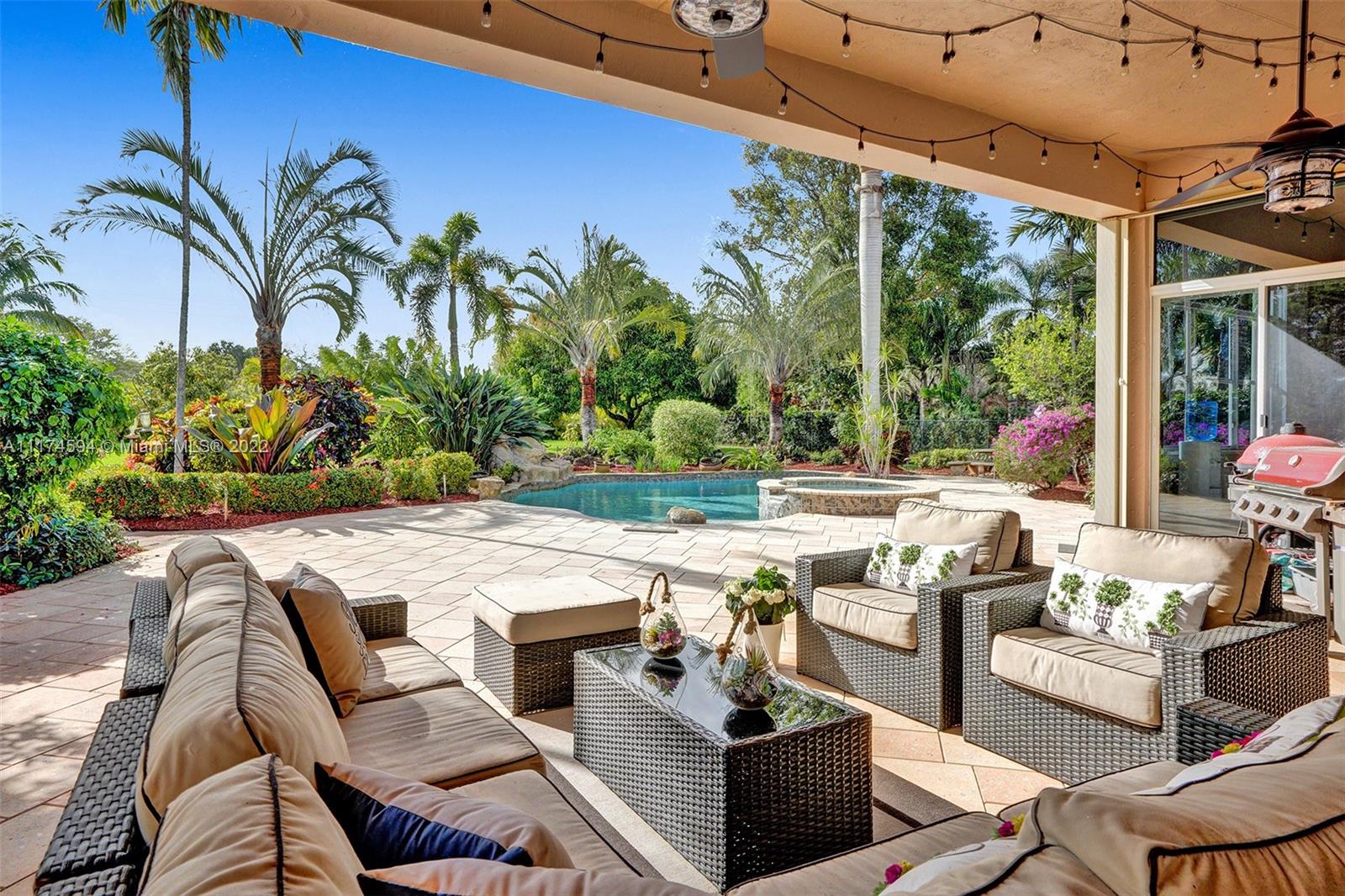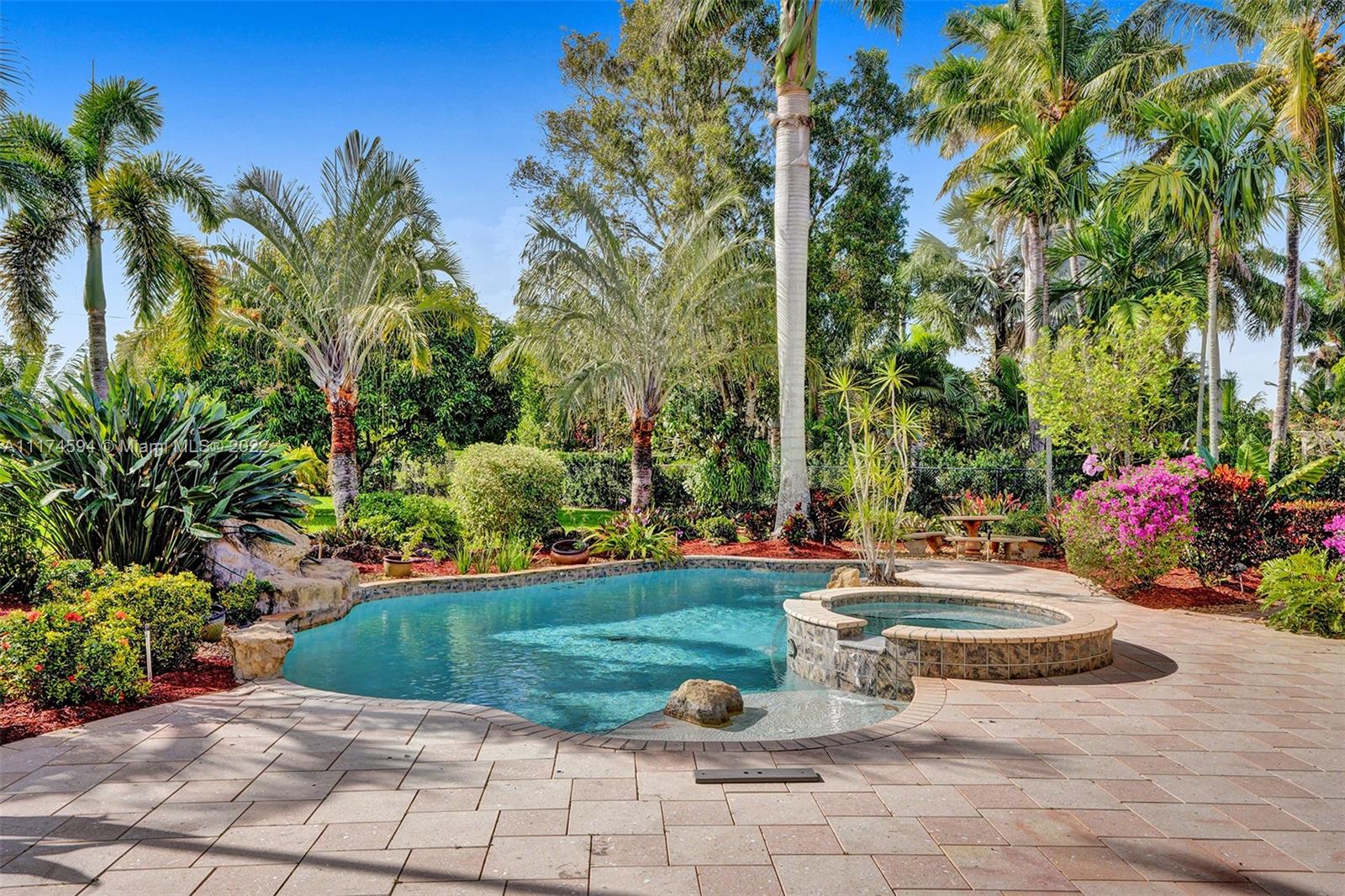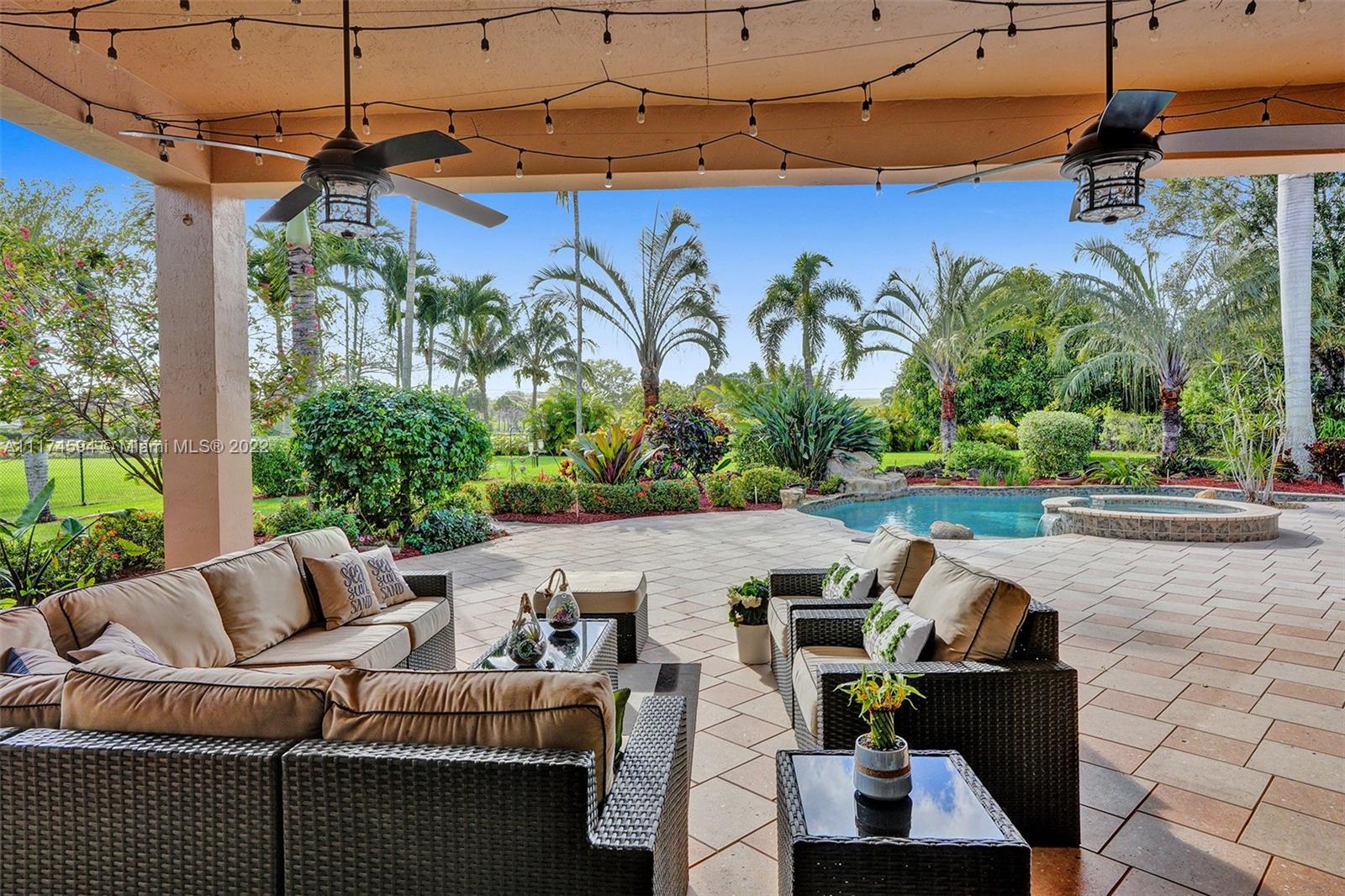 This upgraded 5/4 pool home sits on a 42,850 sq ft waterfront lot. Located in exclusive Imagination Farms, this spacious home boasts a tropical, freeform heated pool & spa with cascading waterfall. The huge covered patio overlooks the pool and enormous backyard. Patio furniture stays with the home. The beautifully updated open gourmet kitchen welcomes entertaining. The master features his and hers walk-in closets, sitting area, large master bath, and his and hers vanities. The large family room is perfect for a large get-together for movie night. The stunning decorator finishes can be found throughout the home. The community is secured with a manned guardhouse. A-Rated schools. Low HOA See the video link below