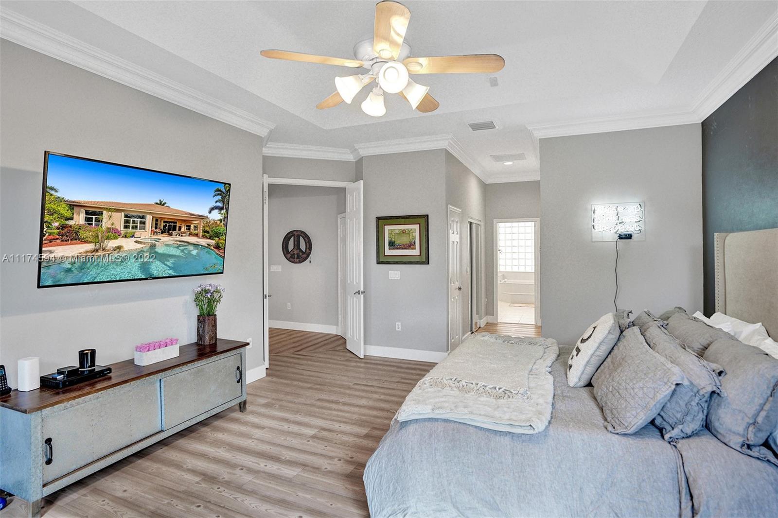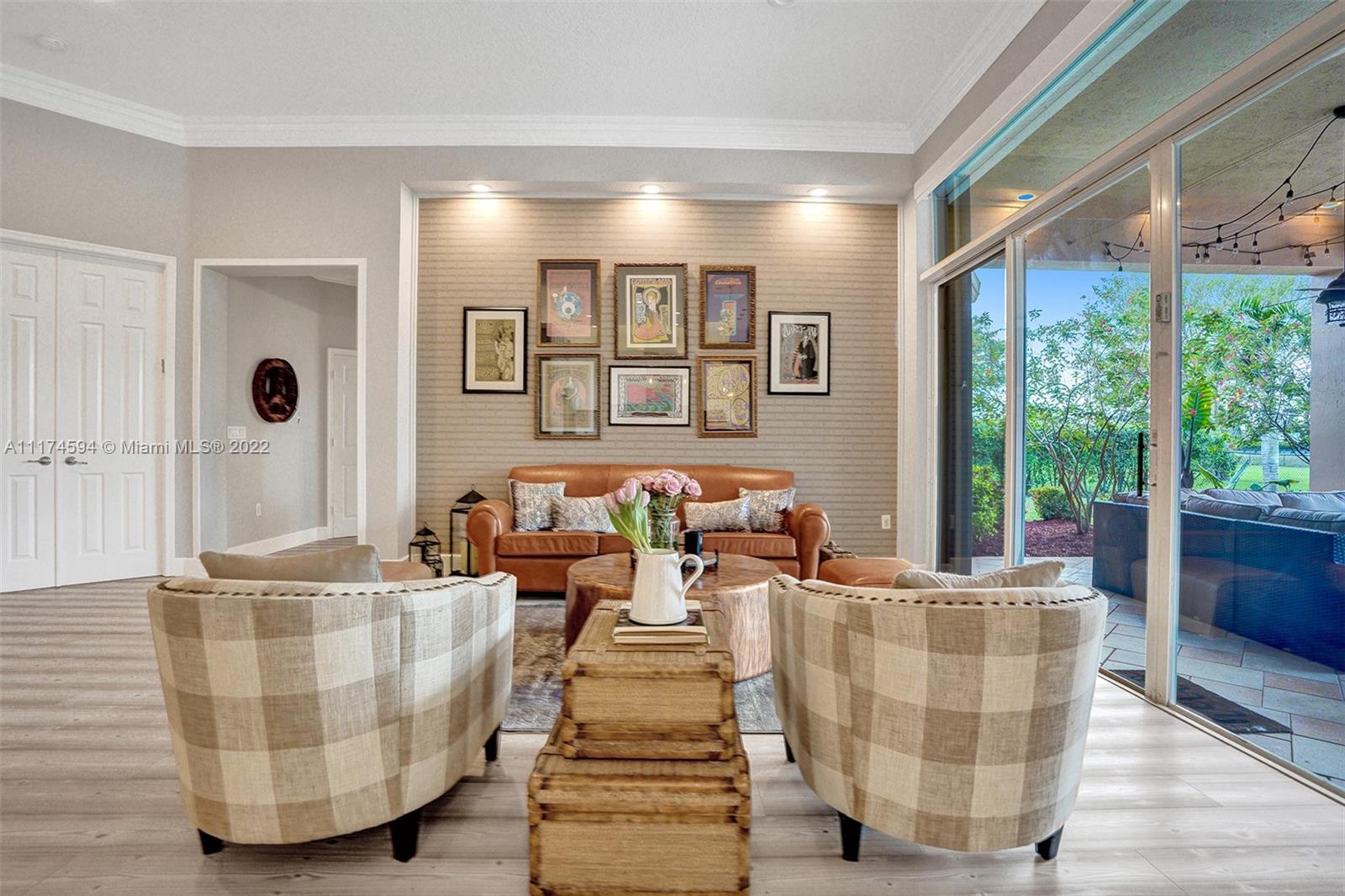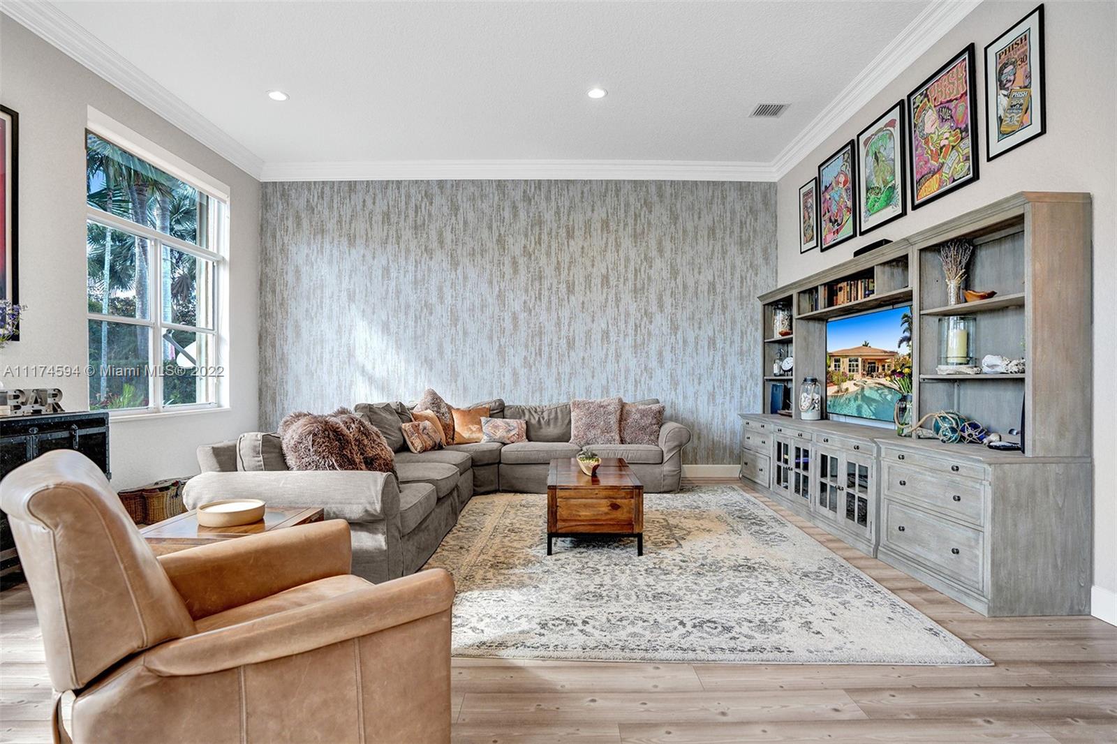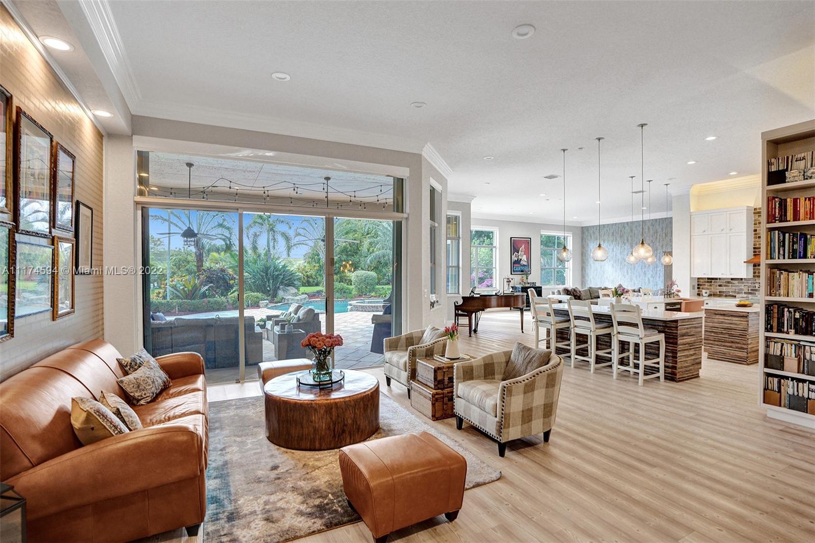 This upgraded 5/4 pool home sits on a 42,850 sq ft waterfront lot. Located in exclusive Imagination Farms, this spacious home boasts a tropical, freeform heated pool & spa with cascading waterfall. The huge covered patio overlooks the pool and enormous backyard. Patio furniture stays with the home. The beautifully updated open gourmet kitchen welcomes entertaining. The master features his and hers walk-in closets, sitting area, large master bath, and his and hers vanities. The large family room is perfect for a large get-together for movie night. The stunning decorator finishes can be found throughout the home. The community is secured with a manned guardhouse. A-Rated schools. Low HOA See the video link below